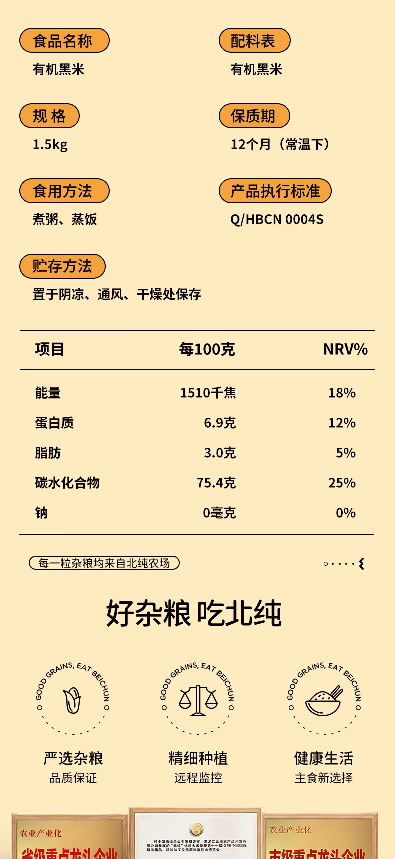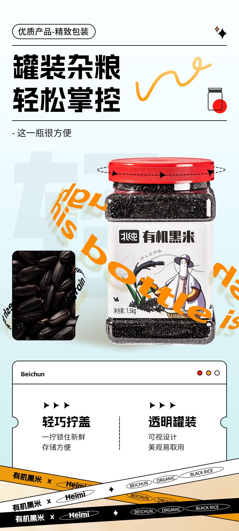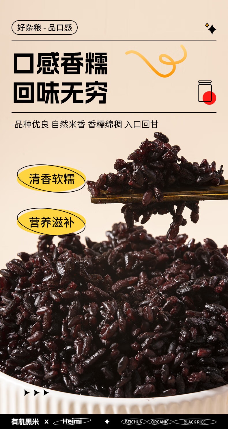 【北纯】有机黑米1.5kg(东北黑米 黑香米 粗粮杂粮 粥米伴侣 罐装 可溯源)