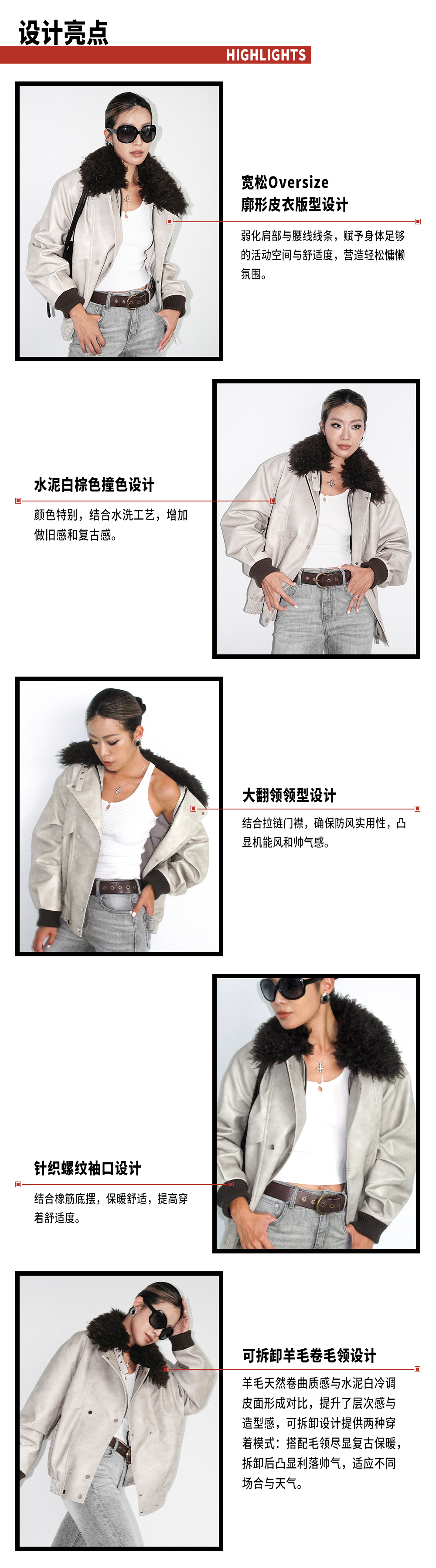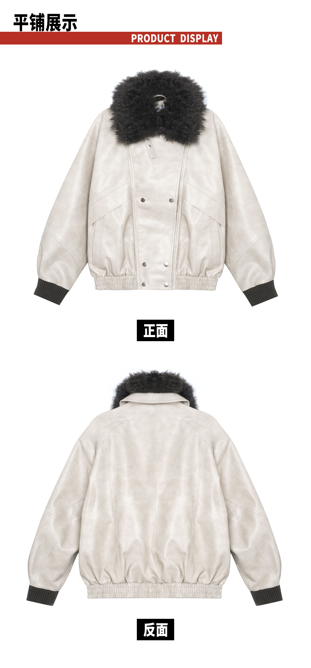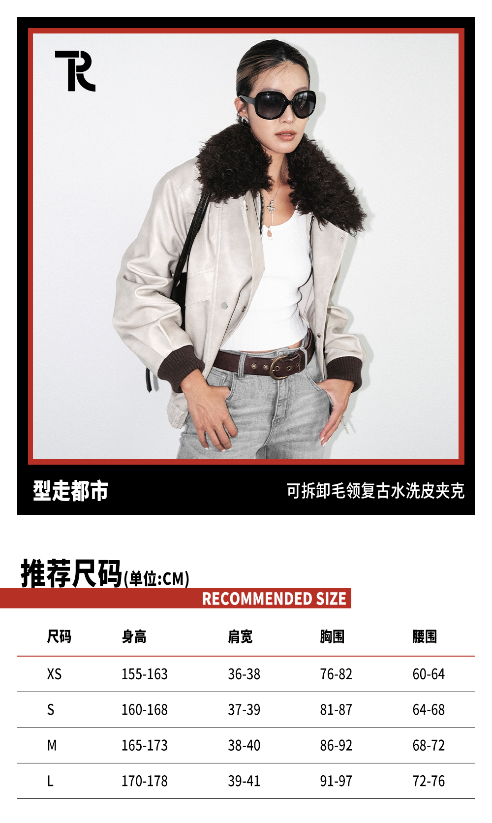 TR她热 型走都市 水泥白PU皮可拆卸毛领复古水洗皮夹克外套