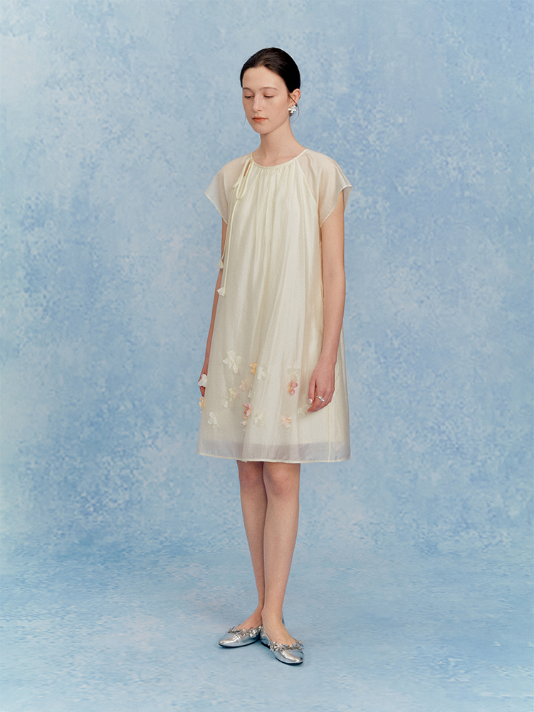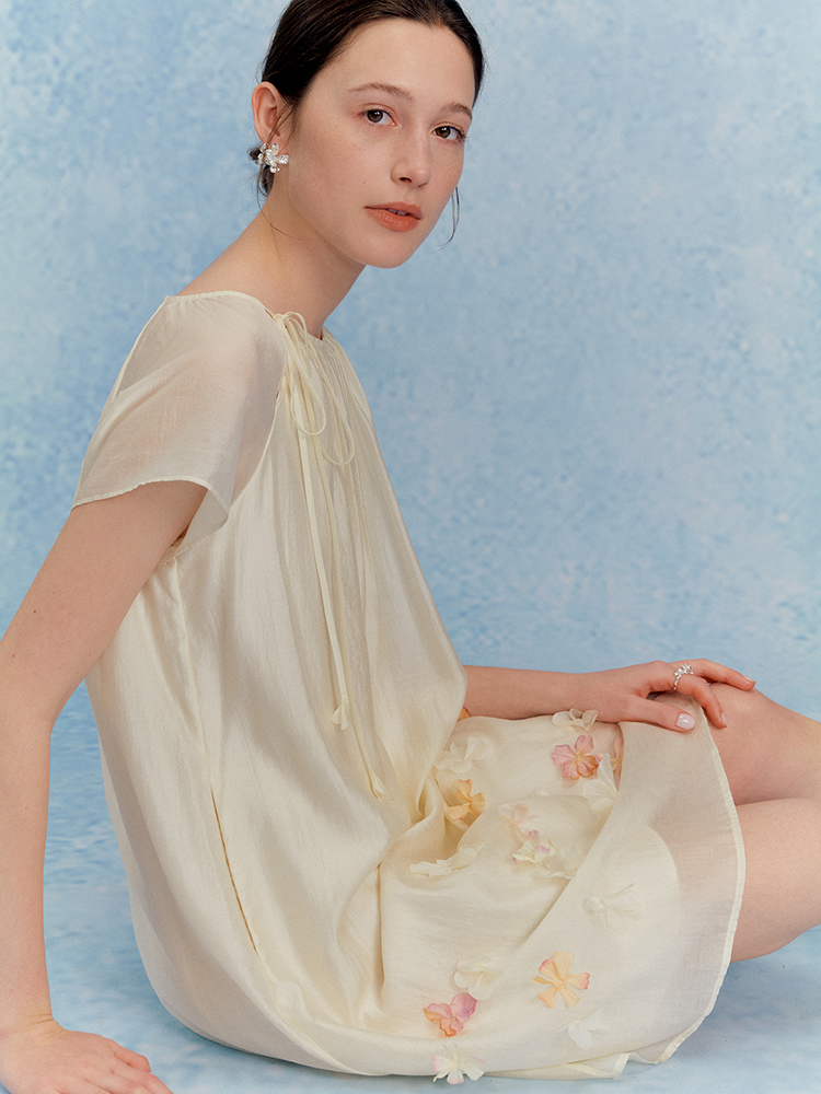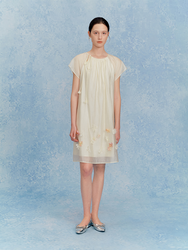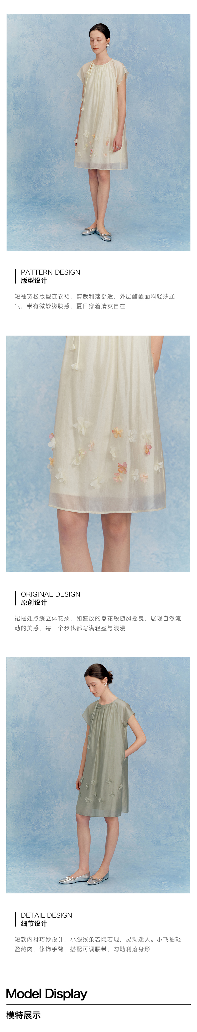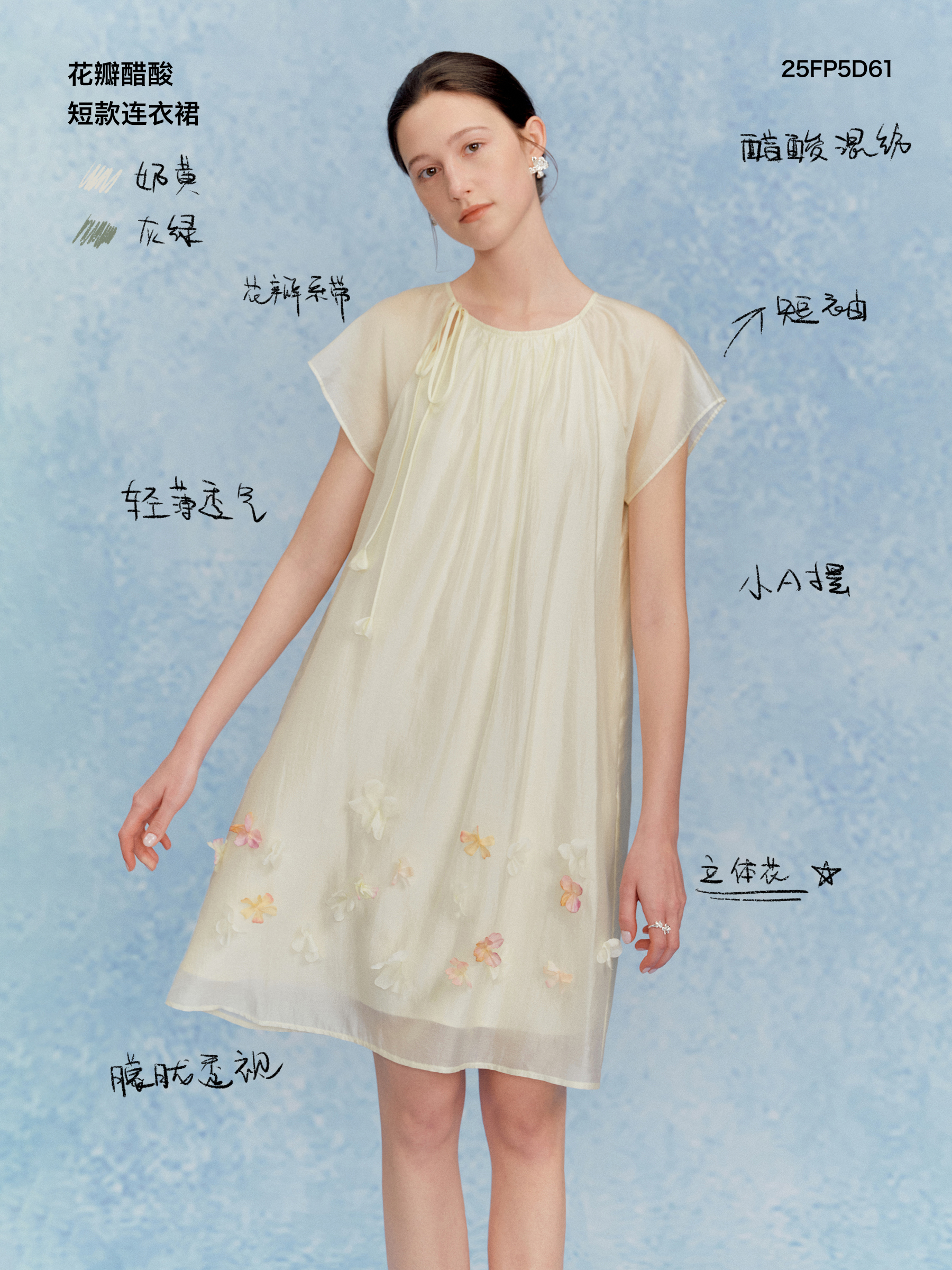 ForPoem 现货 25/SS原创设计花瓣醋酸双层立体花短款连衣裙