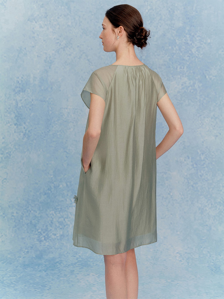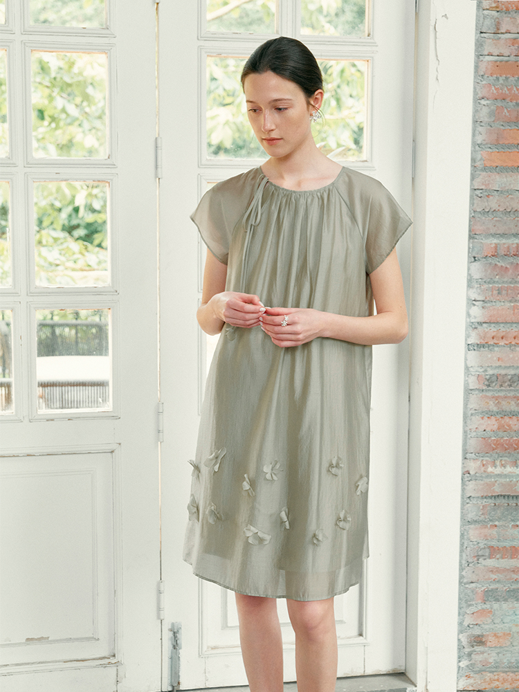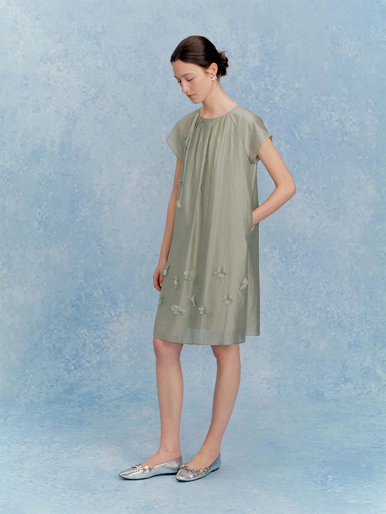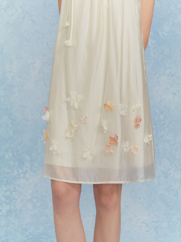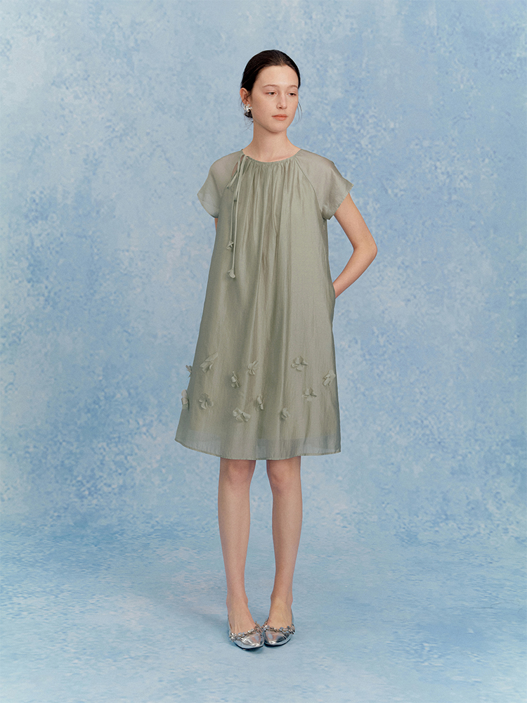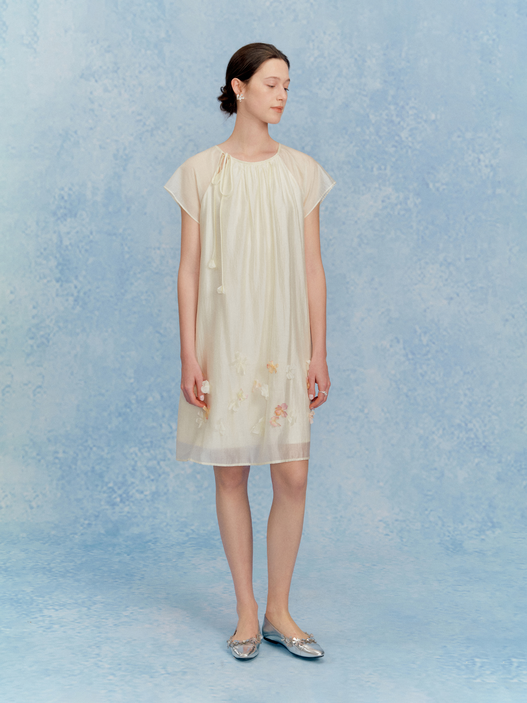 ForPoem 现货 25/SS原创设计花瓣醋酸双层立体花短款连衣裙