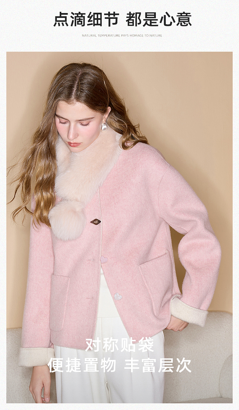 【100绵羊毛】三彩2025冬季新款双面呢大衣短款毛呢外套M