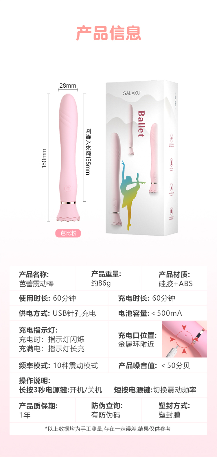 【女用器具】GALAKU 芭蕾(Ballet)震动棒加温版(粉色)