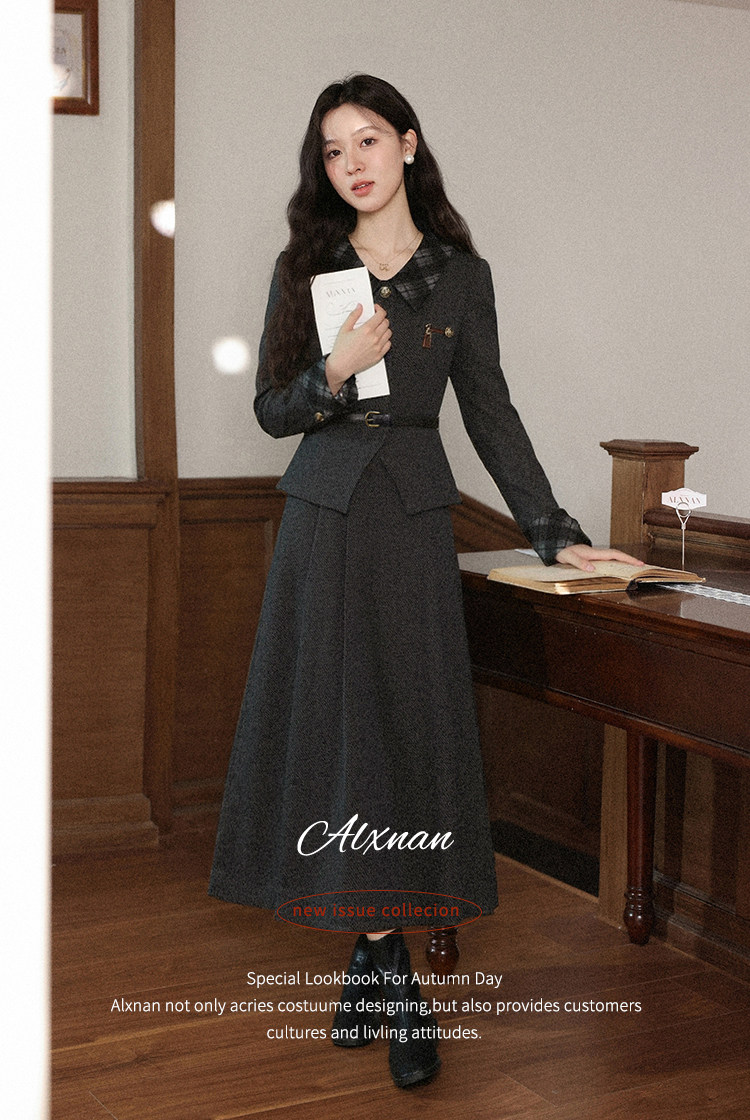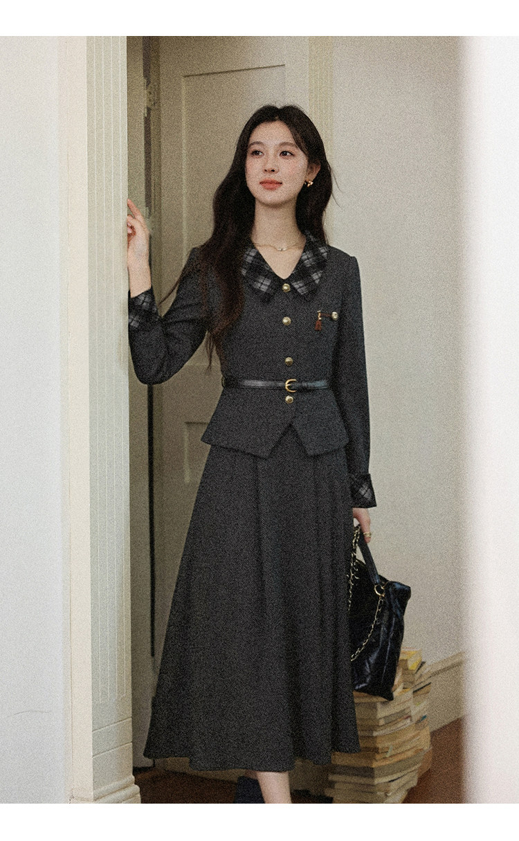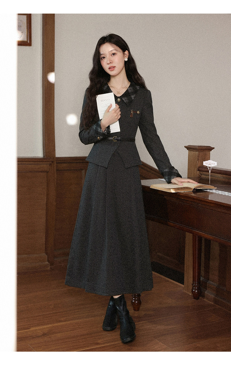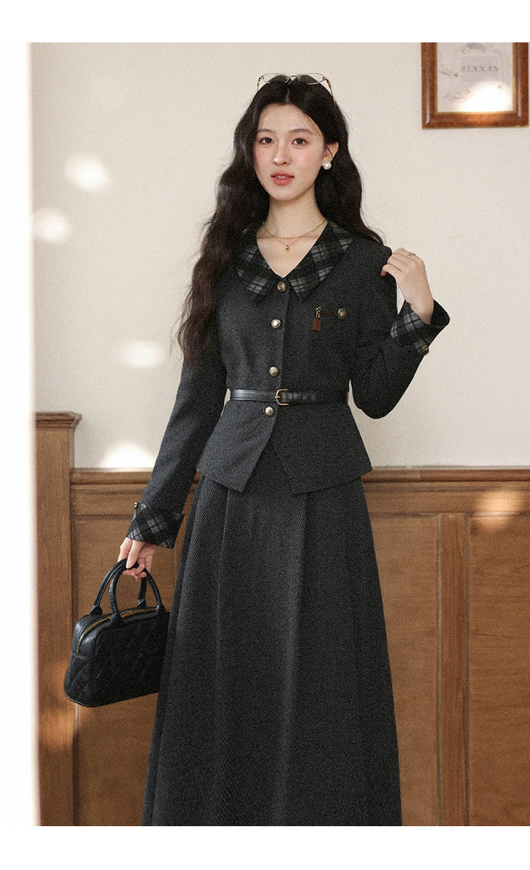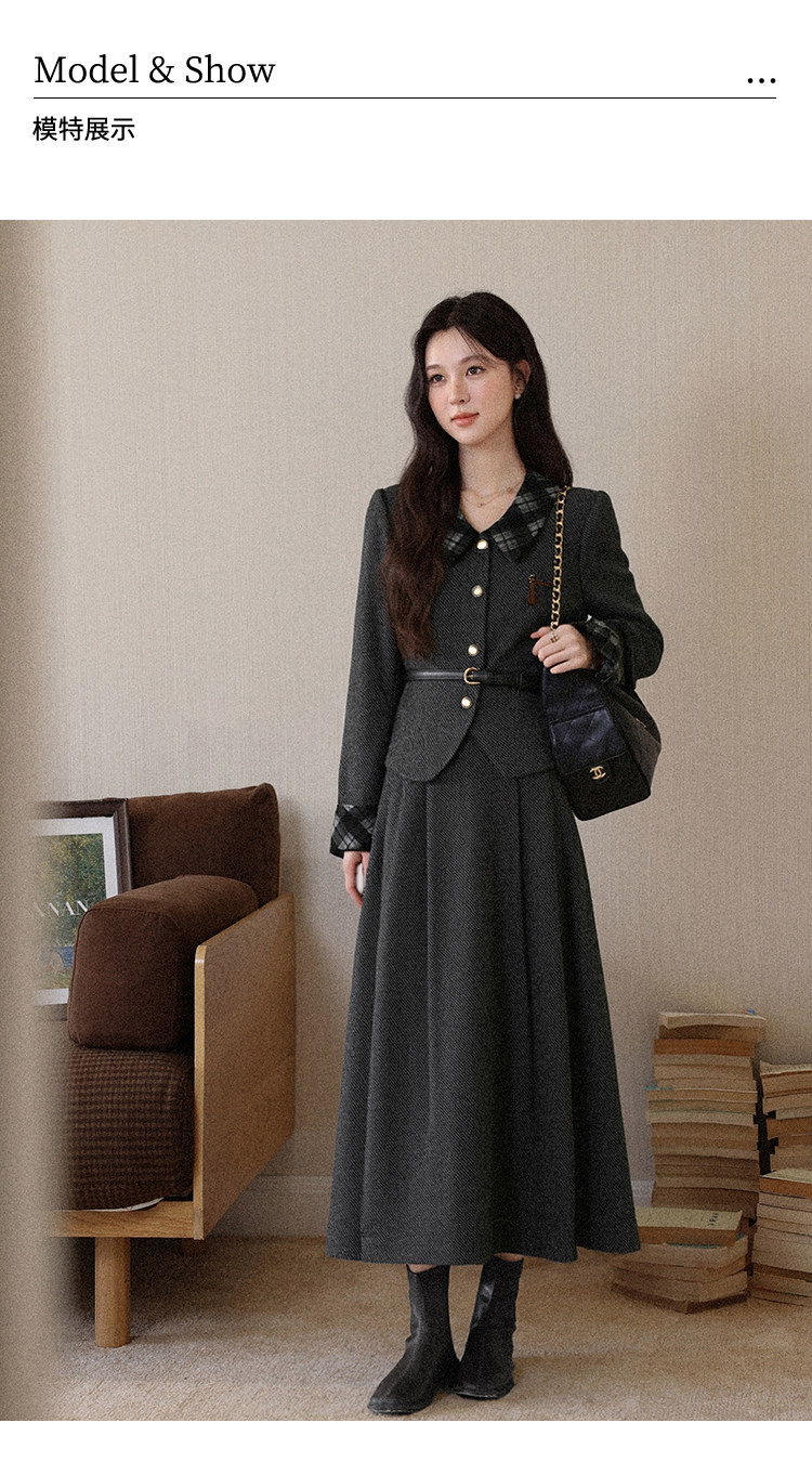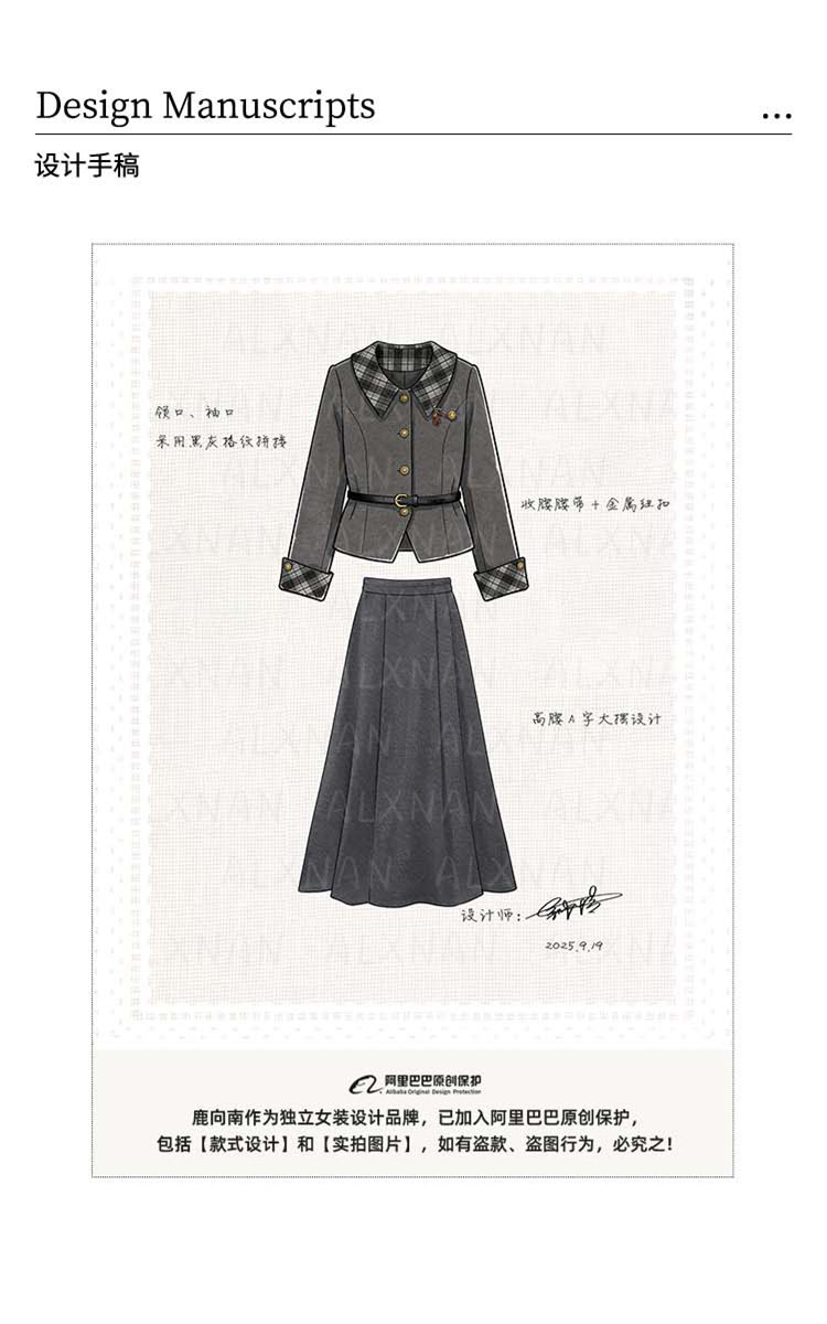 鹿向南【初雪刊本】秋冬季韩系气质高级外套半身裙时尚灰色套装女
