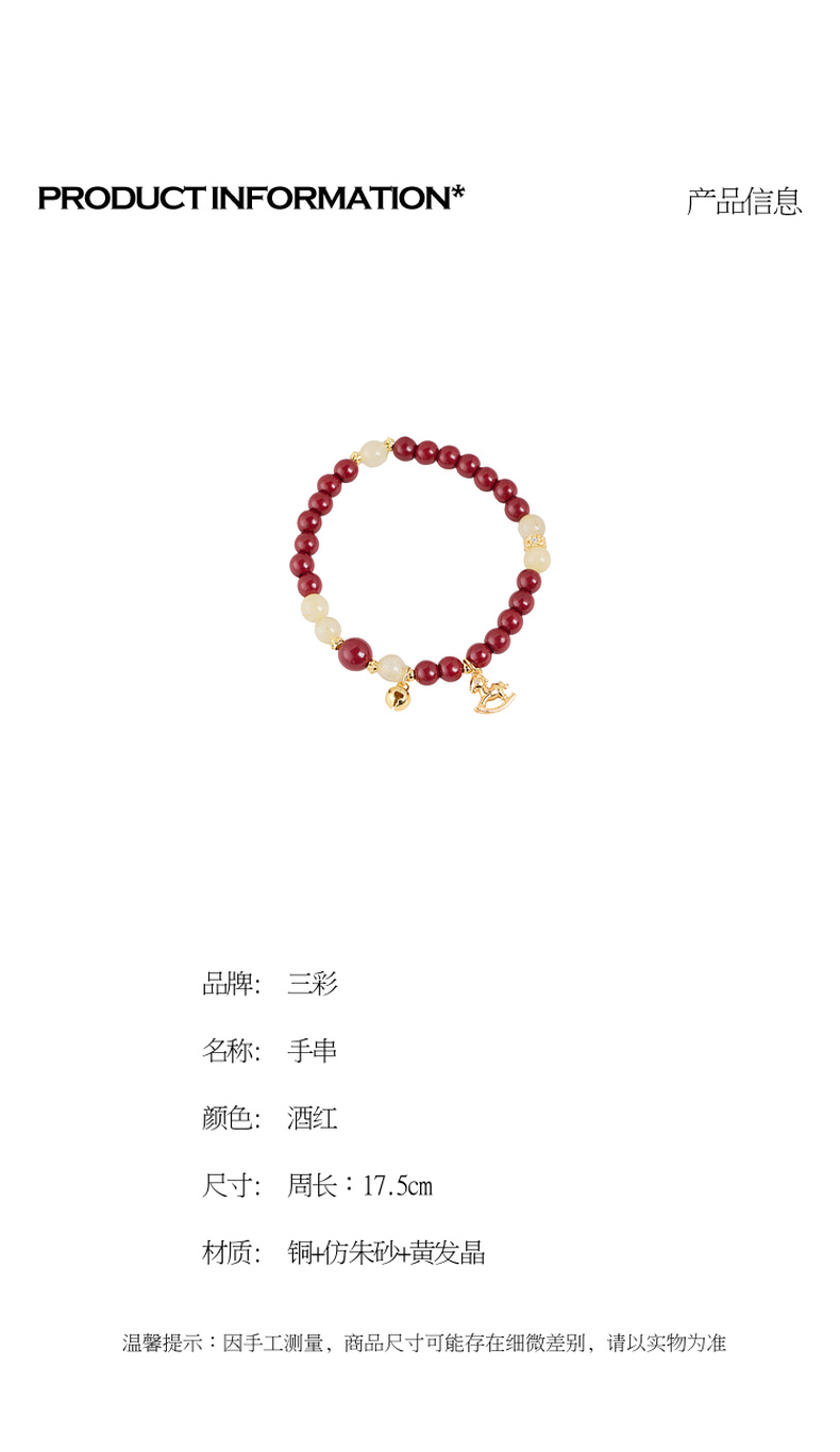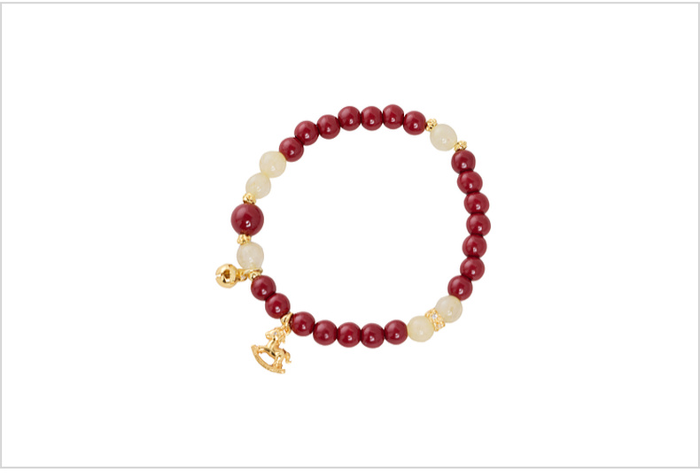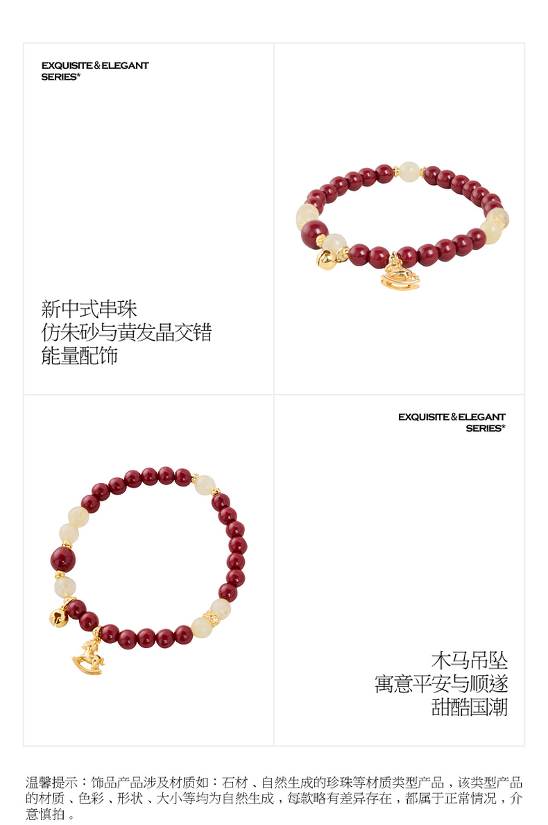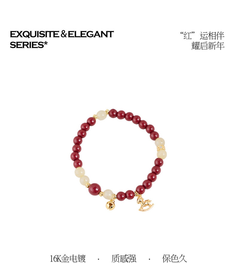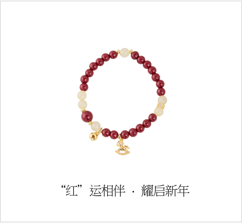 三彩2026新款木马吊坠手链黄发晶仿朱砂手串小众国潮甜酷氛围感
