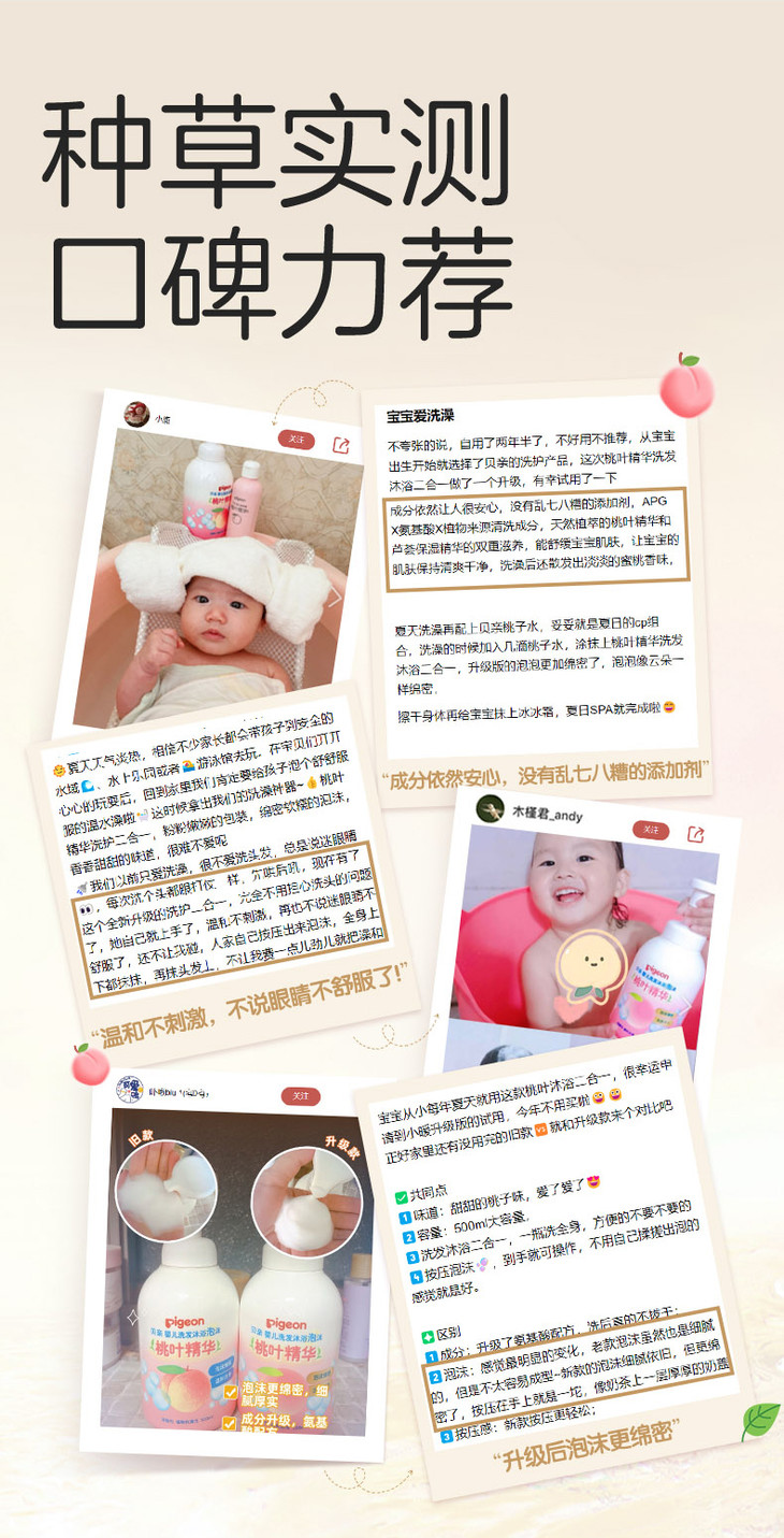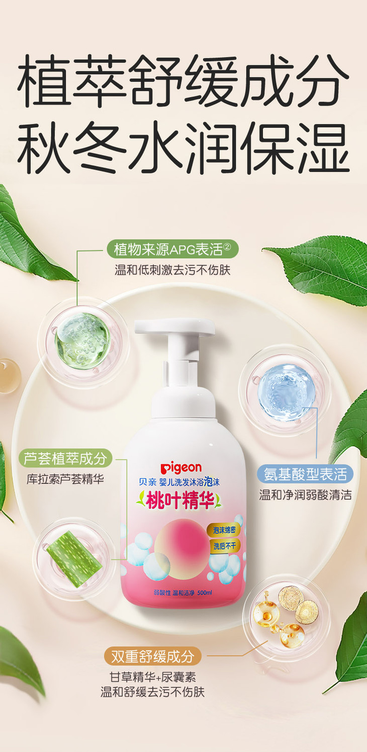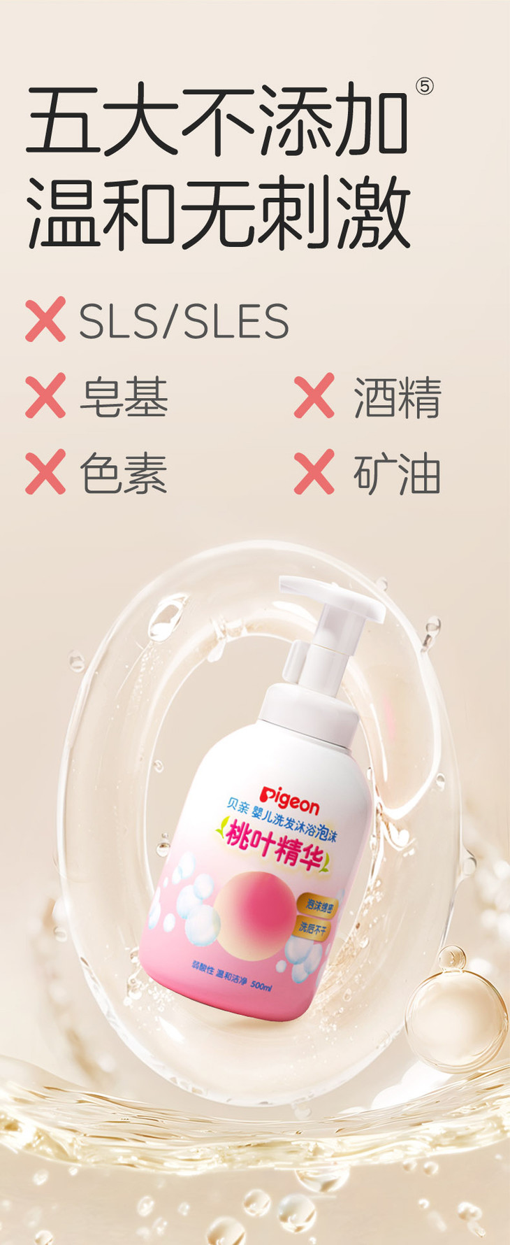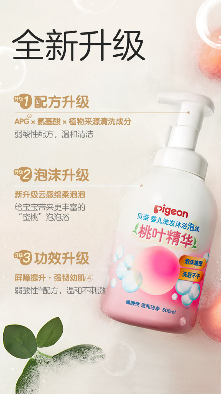 【官方自营】奚梦瑶推荐!PIGEON/贝亲婴儿沐浴露洗发水二合一泡沫桃叶精华洗沐