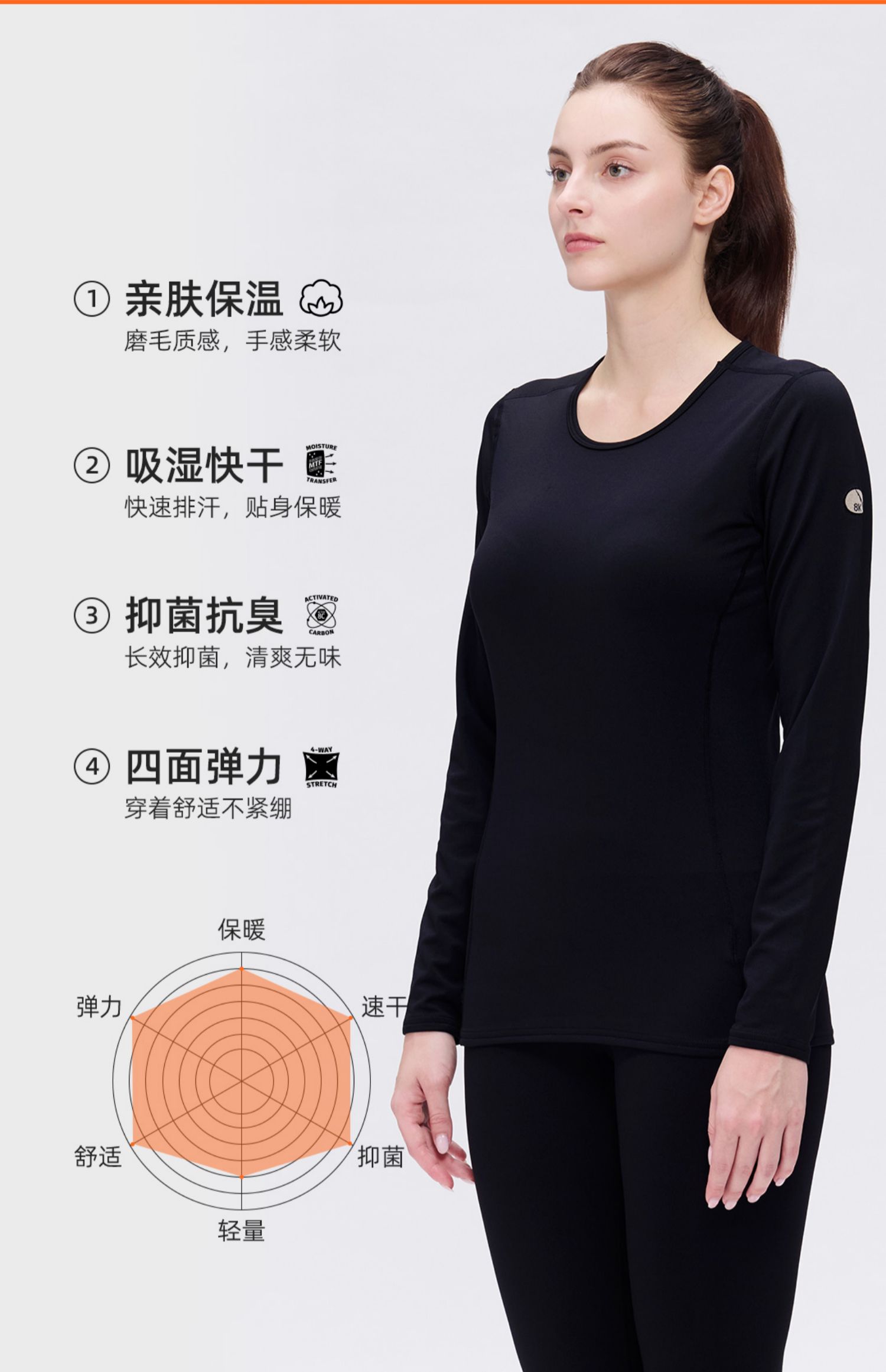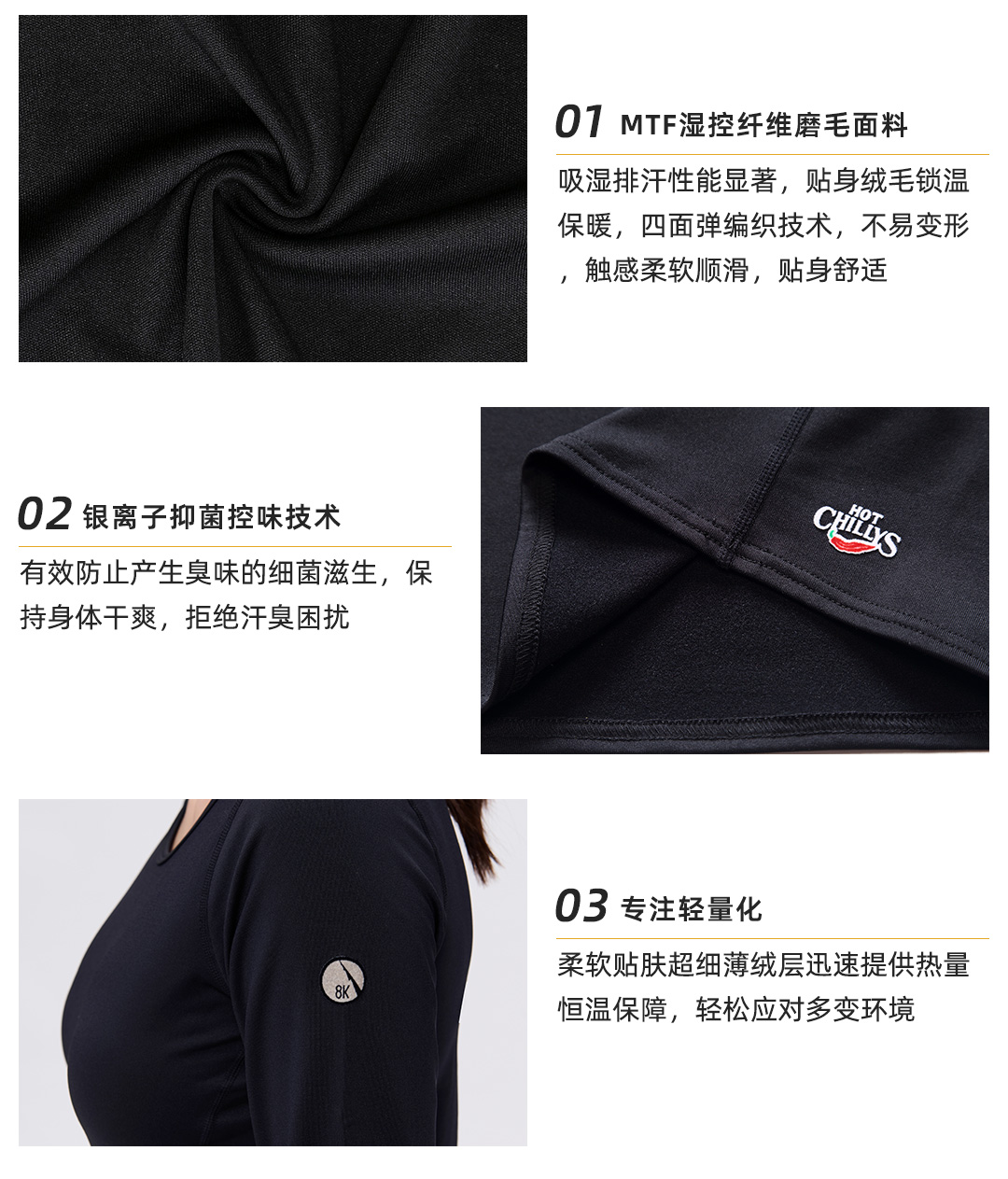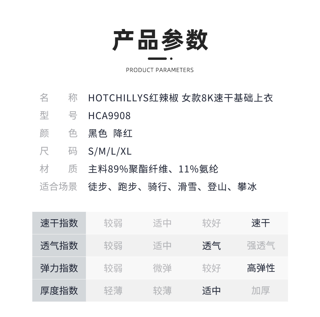 HOTCHILLYS热椒8K磨毛登山户外排汗运动保暖功能内衣女HCA9908