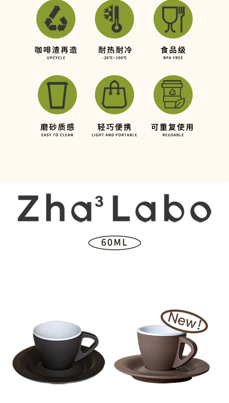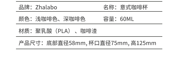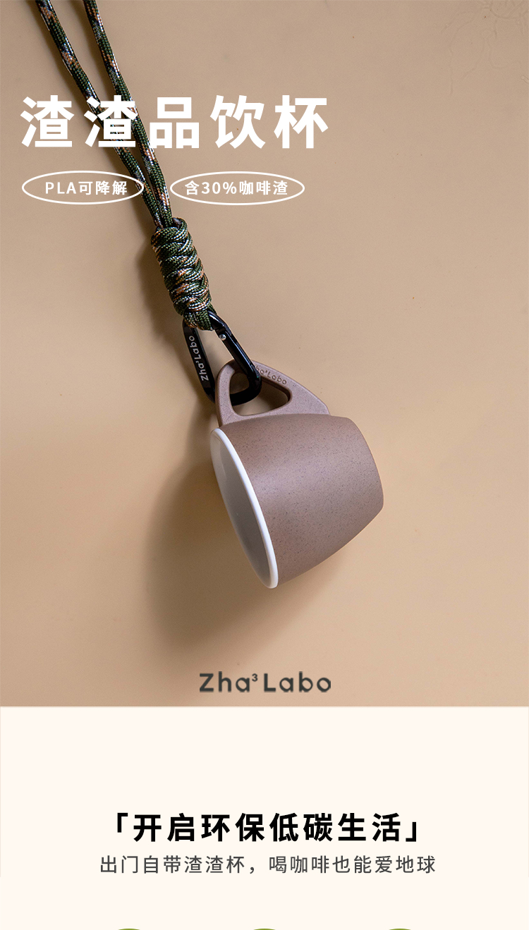 【定制产品不零售】Zhalabo原创设计咖啡渣杯挂绳杯意式杯可降解咖啡杯品饮杯露营杯
