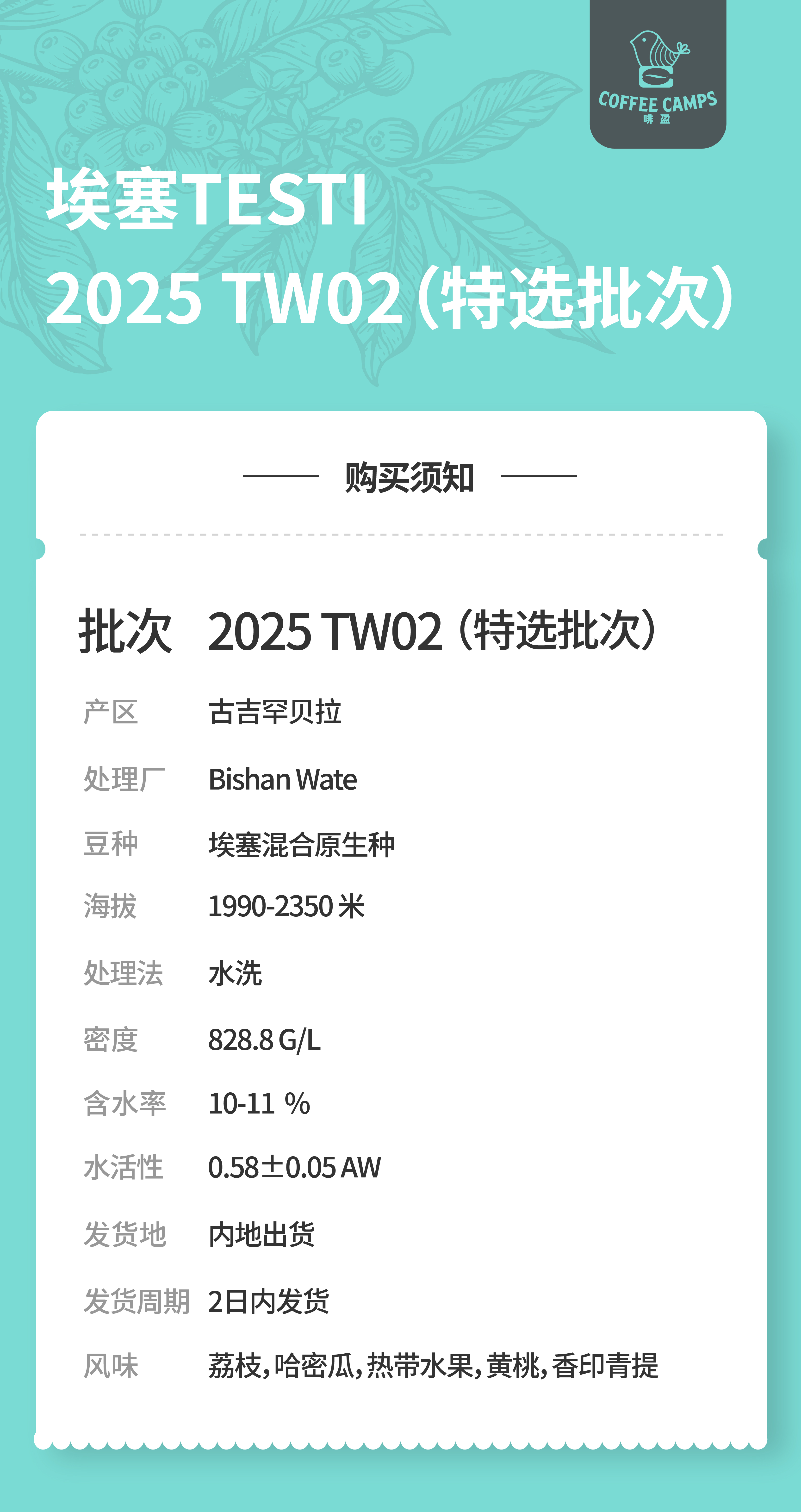25产季 Testi特选批次埃塞 特斯提 Testi TW02 水洗(生豆)空运批次