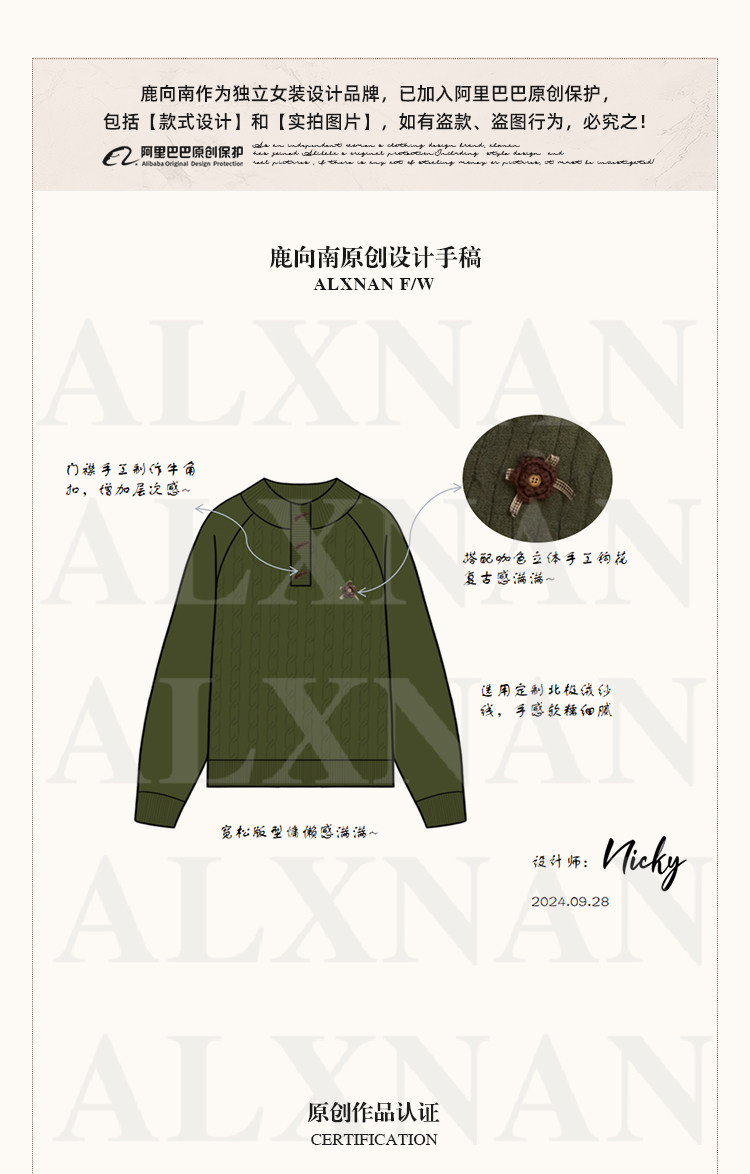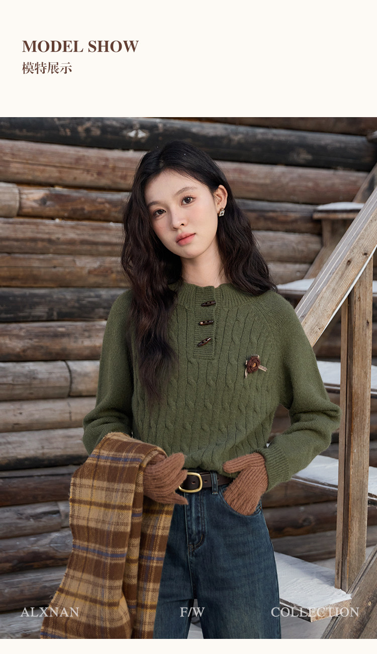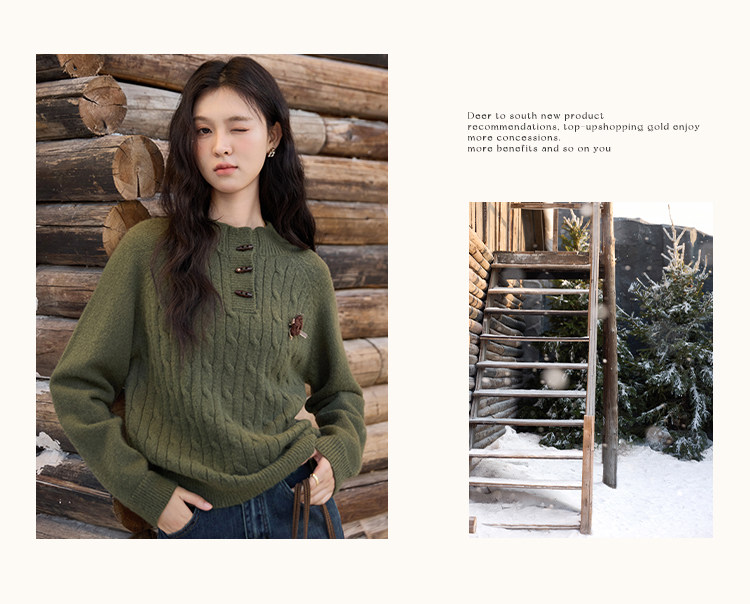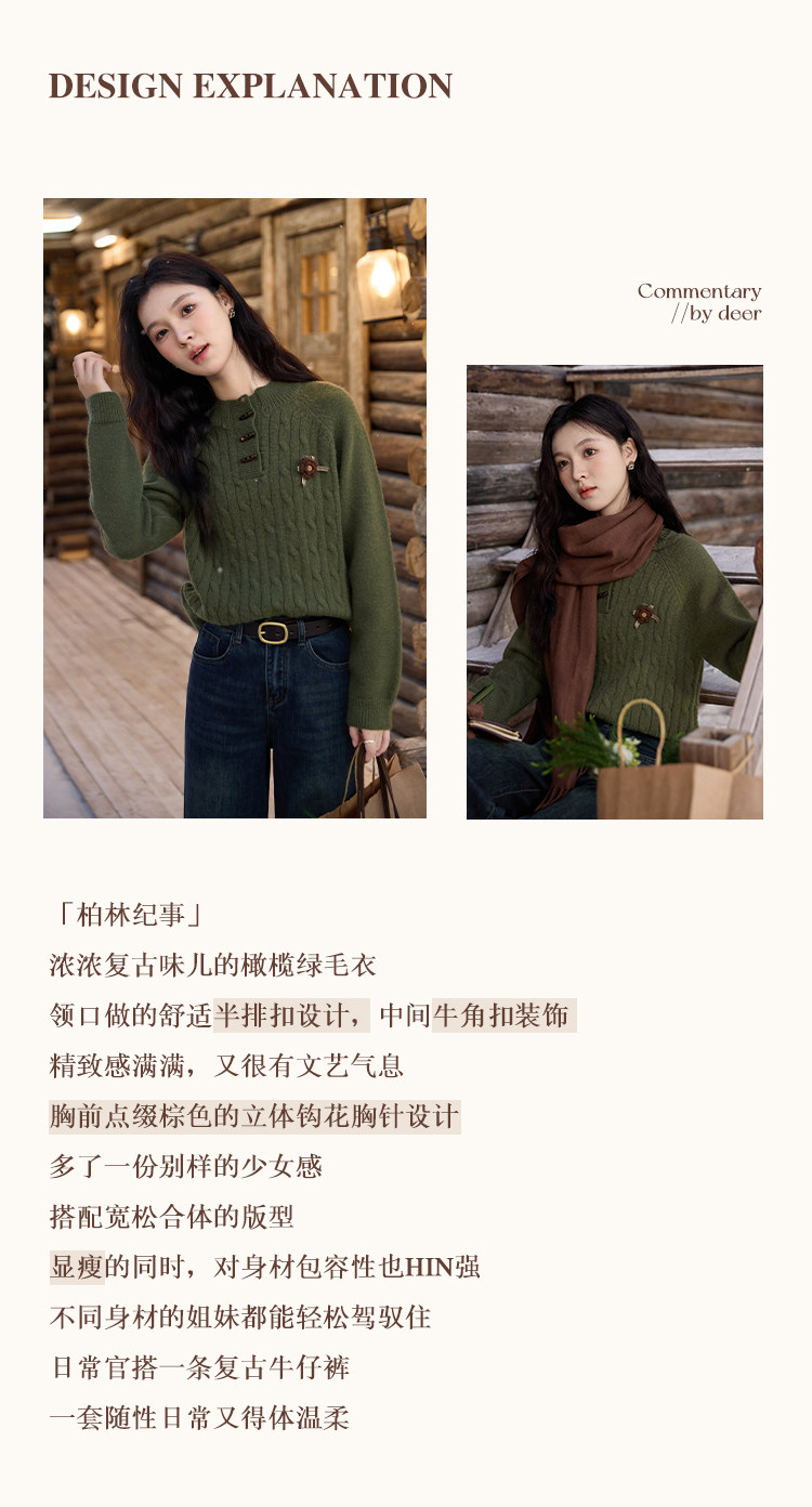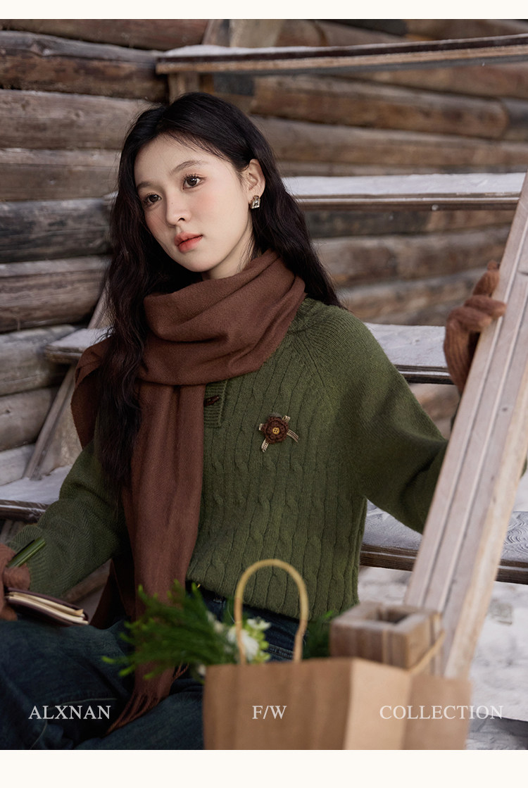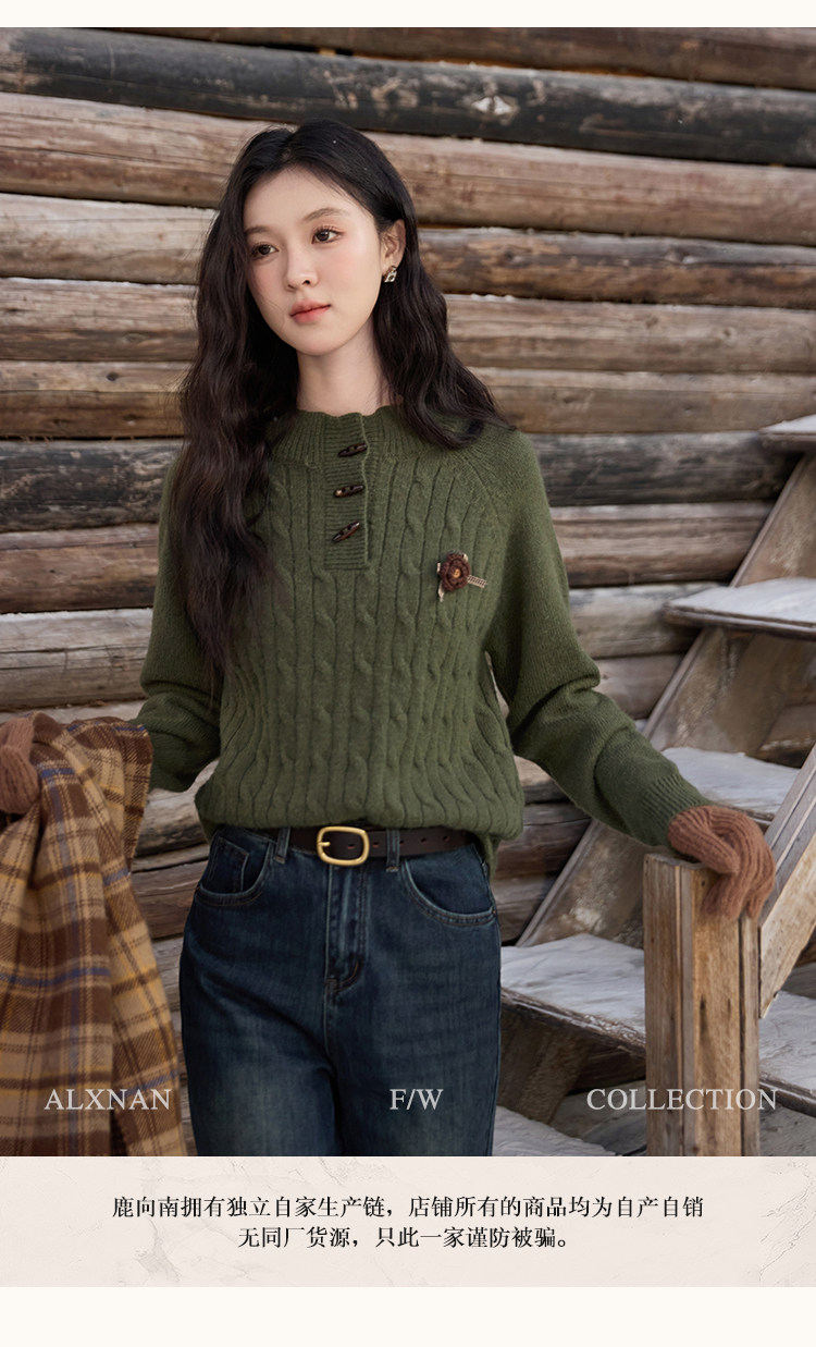 鹿向南「柏林纪事」绿色慵懒风毛衣2025秋冬季新款高级针织上衣女