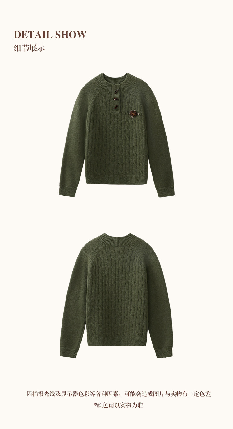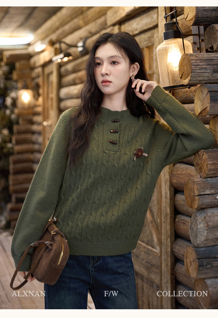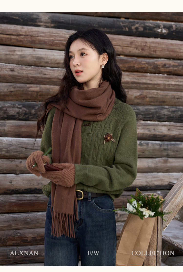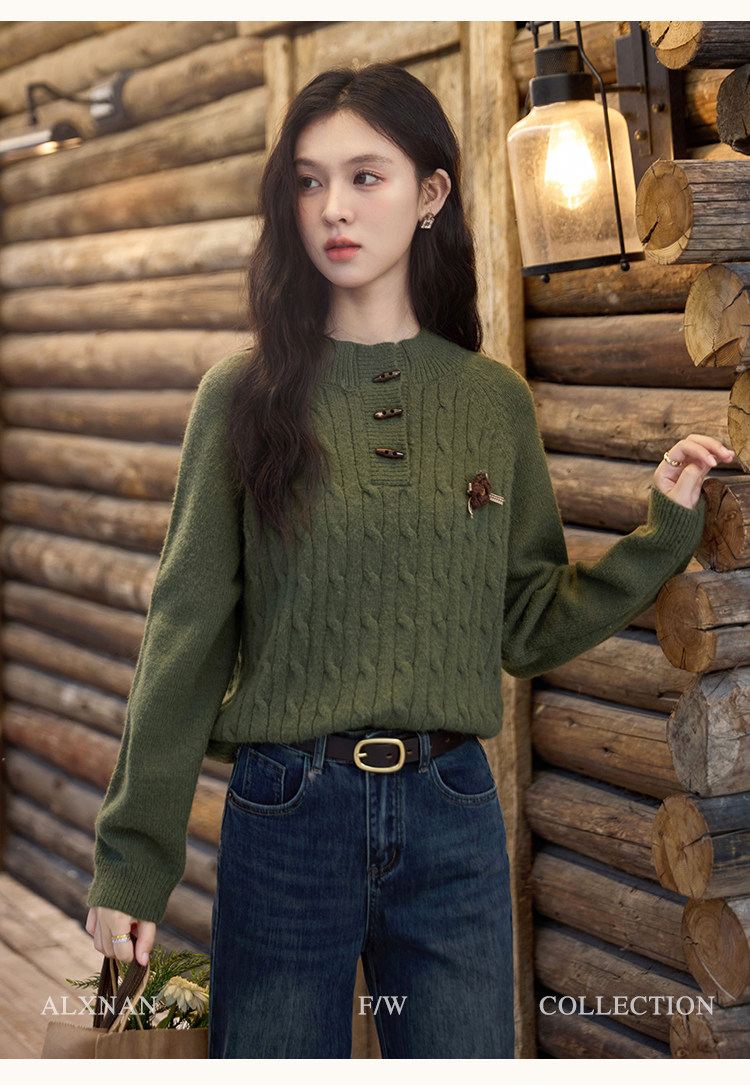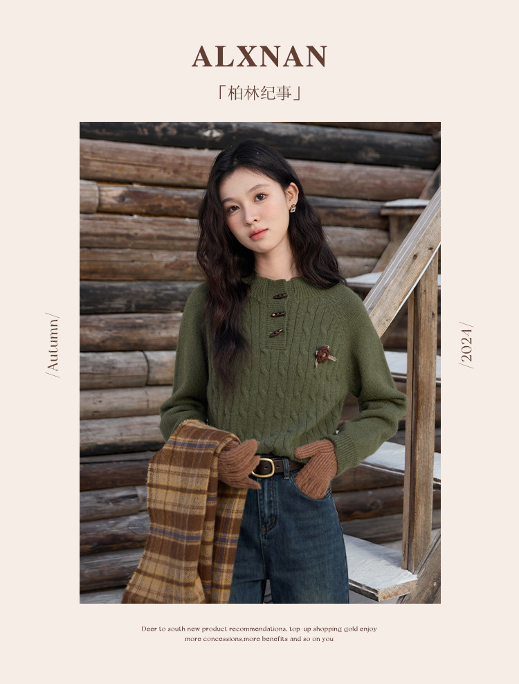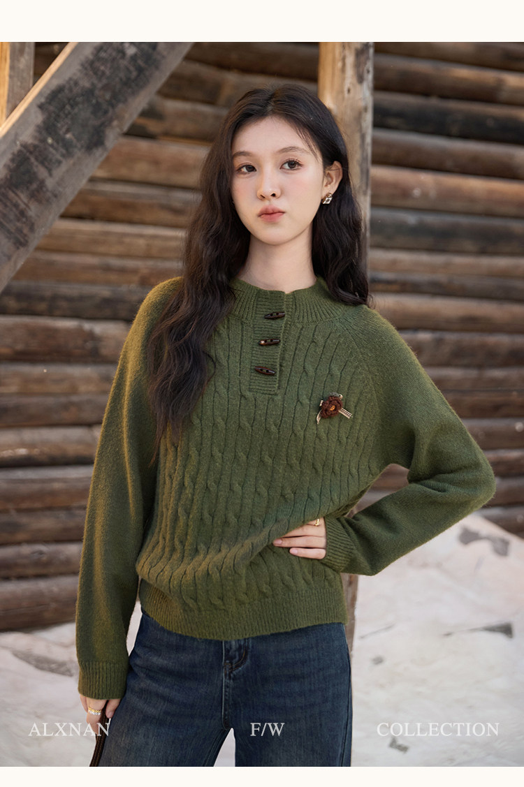 鹿向南「柏林纪事」绿色慵懒风毛衣2025秋冬季新款高级针织上衣女