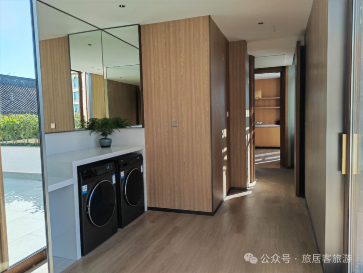 基地内有免费带烘干的公共洗衣房,还有挂烫机