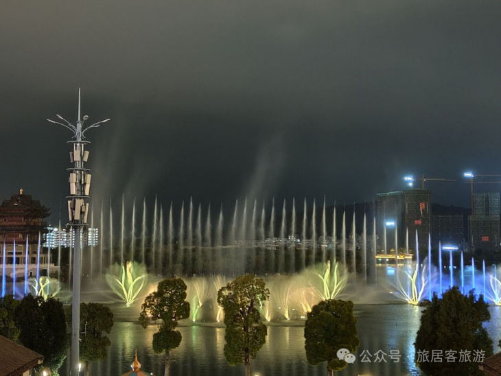 位于弥勒市的红河水乡公园灯光水舞秀广场