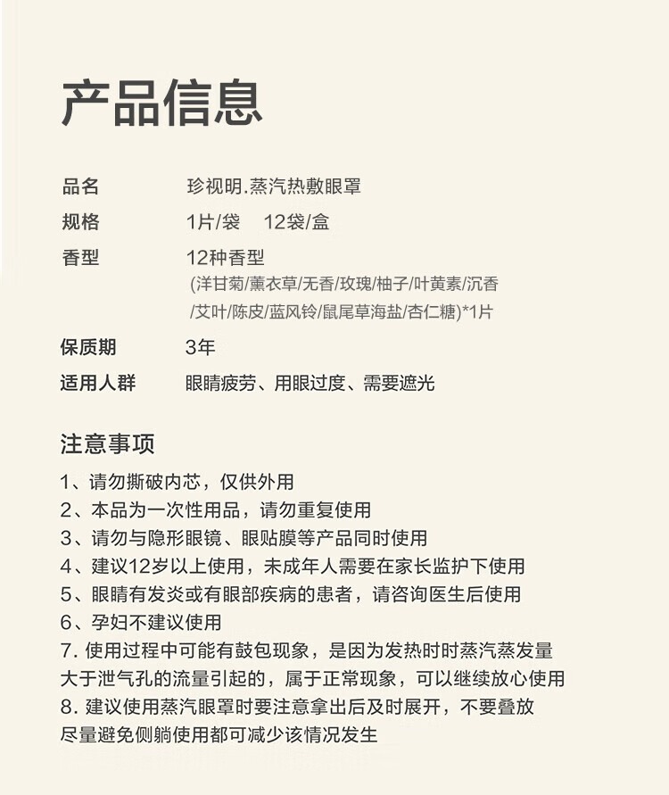 珍视明12蒸味蒸汽眼罩自发热遮光透气 12蒸味