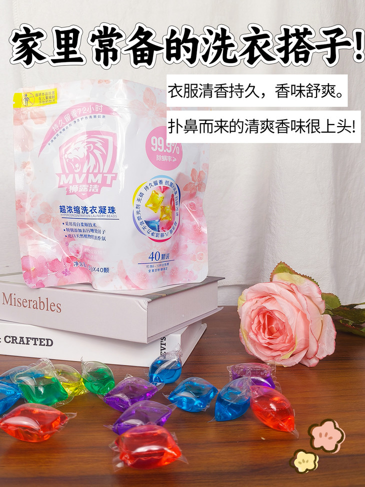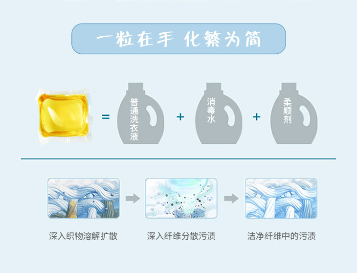 家家户户都需要的懒人洗衣凝珠 推荐爆香洗衣凝珠遇水即溶 比传统的洗衣粉洗衣液清洁能力高10000倍 一次一颗,轻松搞定全部衣物 去渍、护衣、柔顺、留香多效合一