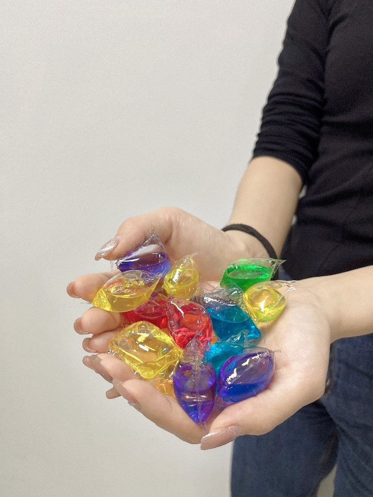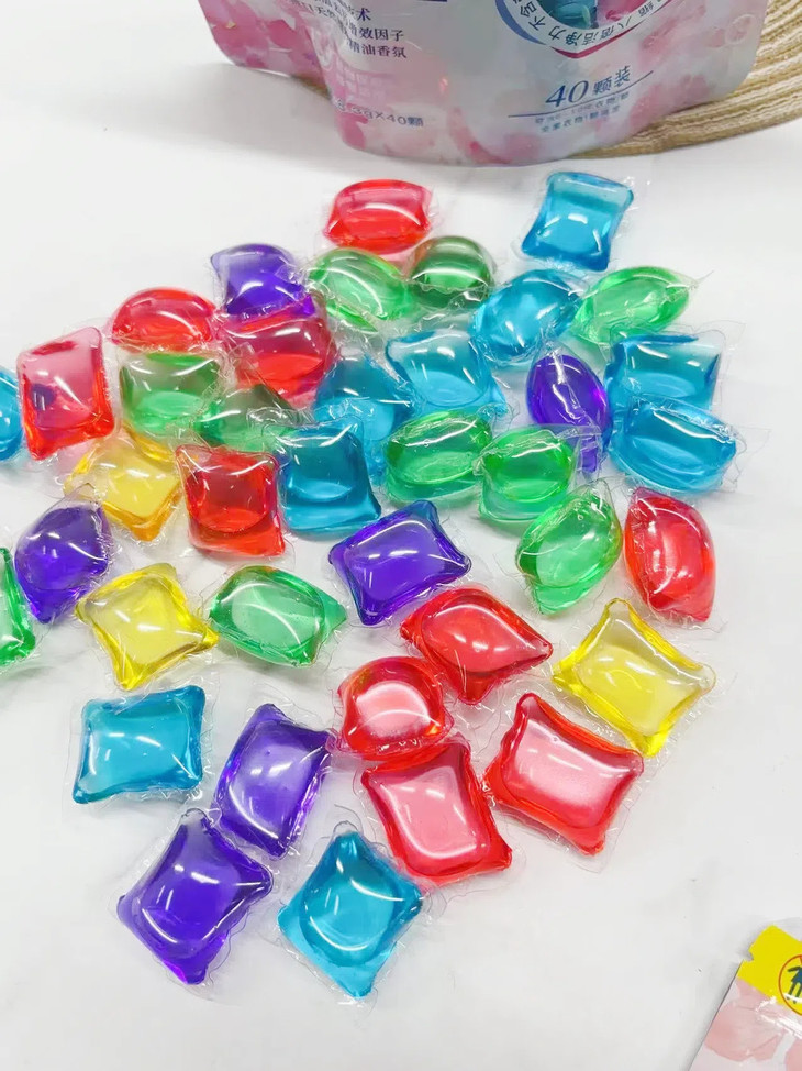 狮露洁袋装洗衣凝珠 袋装:40颗/袋(香味混合) 首选我们先来看看狮露洁家的洗衣凝珠~ 奶奶用8勺洗衣粉 妈妈用8盖洗衣液 我用1颗洗衣凝珠 开启洗衣“轻”时代