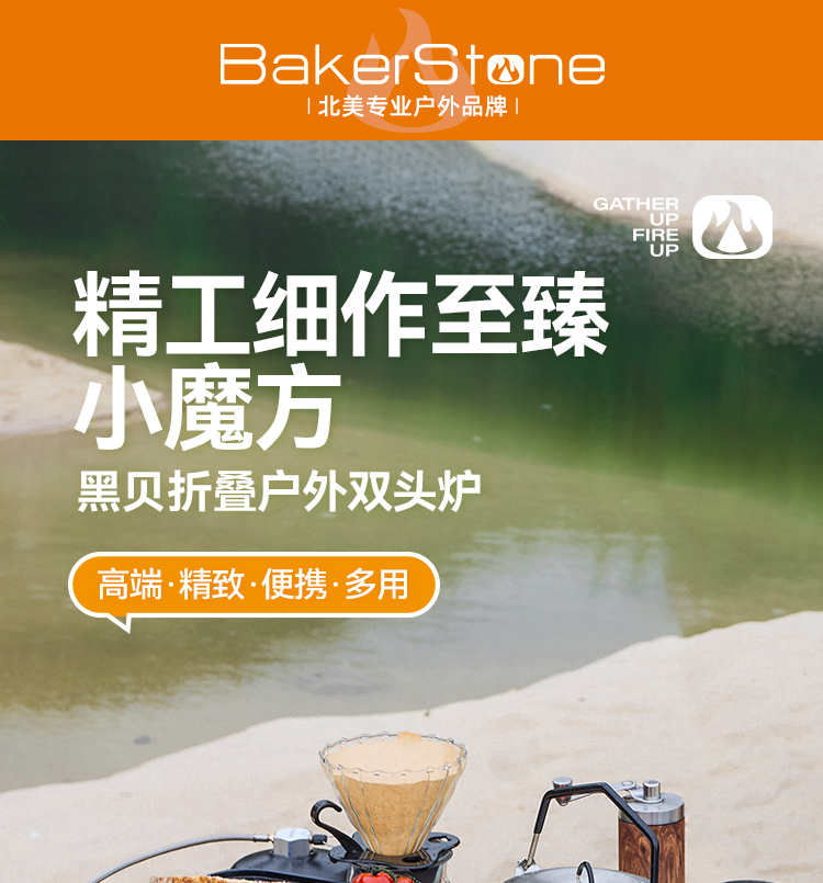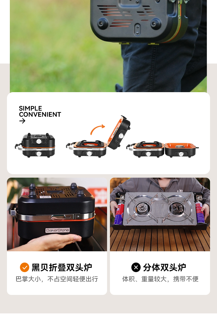 【BakerStone】折叠野餐炉万圣黑 便携式煤气灶卡式炉野餐炉户外瓦斯炉露营燃气炉烧烤炉