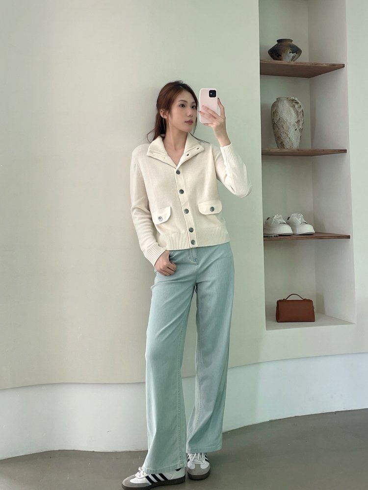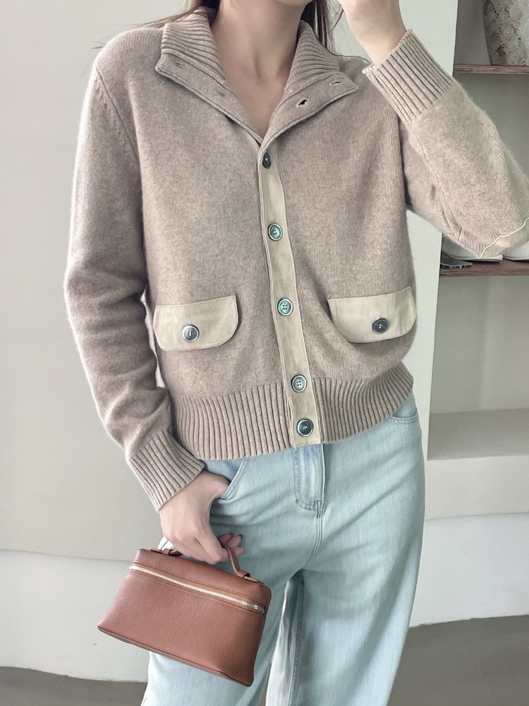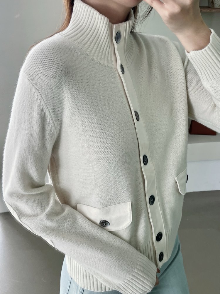 YS1791-羊毛高领纽扣针织长袖开衫【Hera&Song】