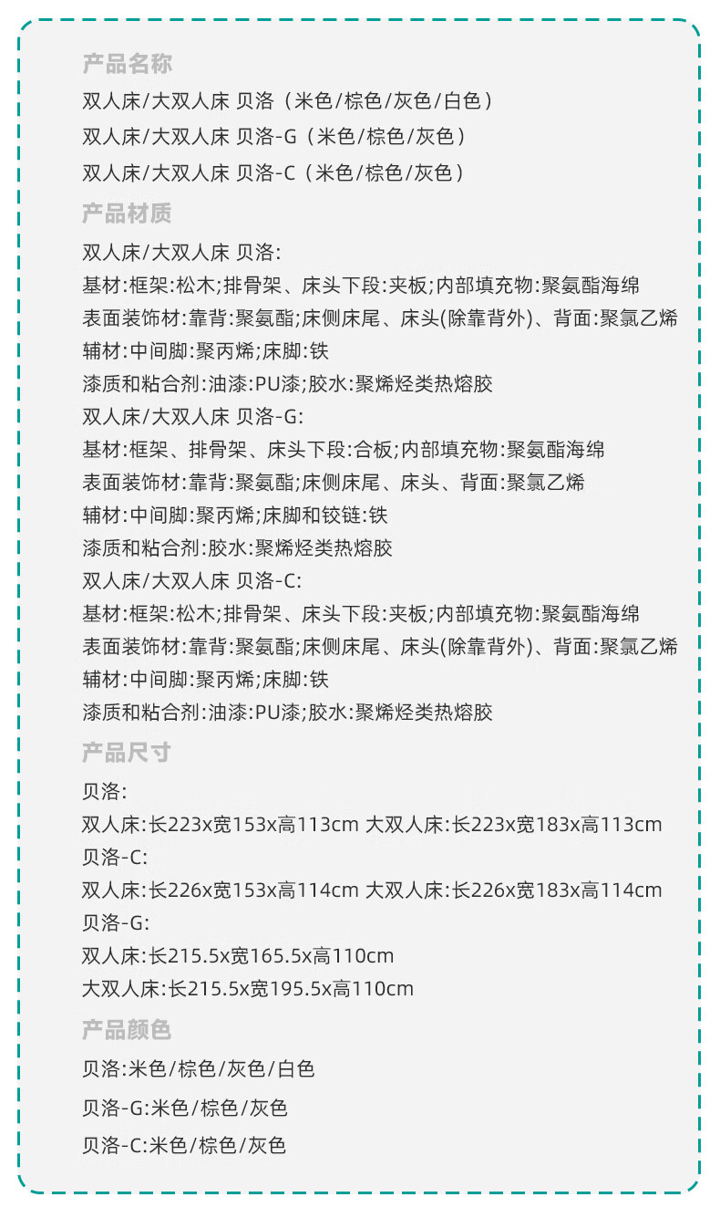 【家具】床 贝洛/G/C 白色/米色/棕色/灰色 双人床/大双人床
