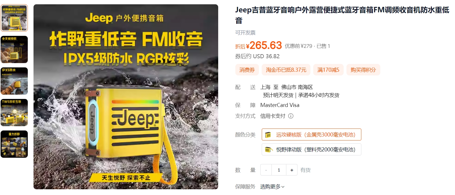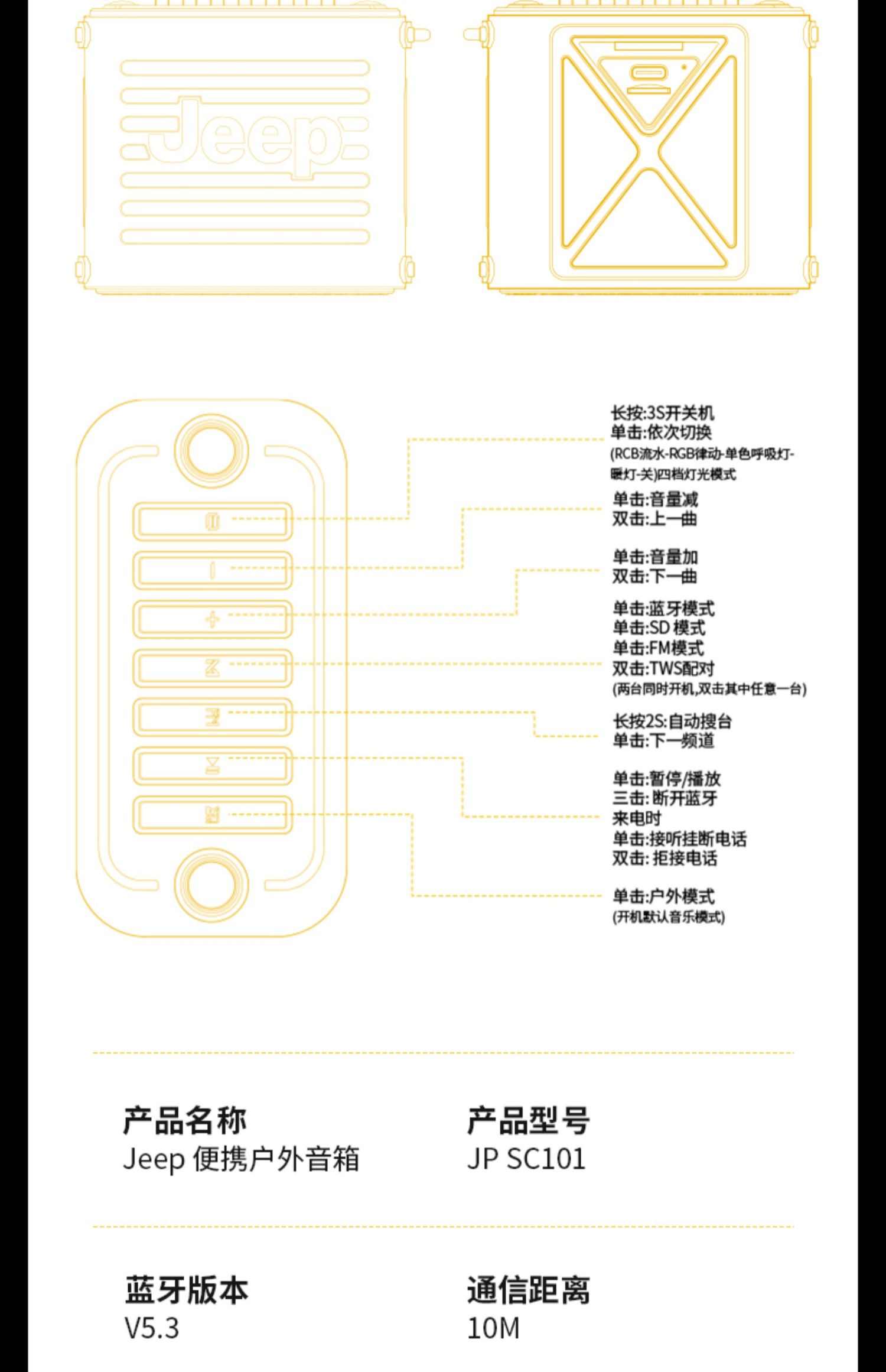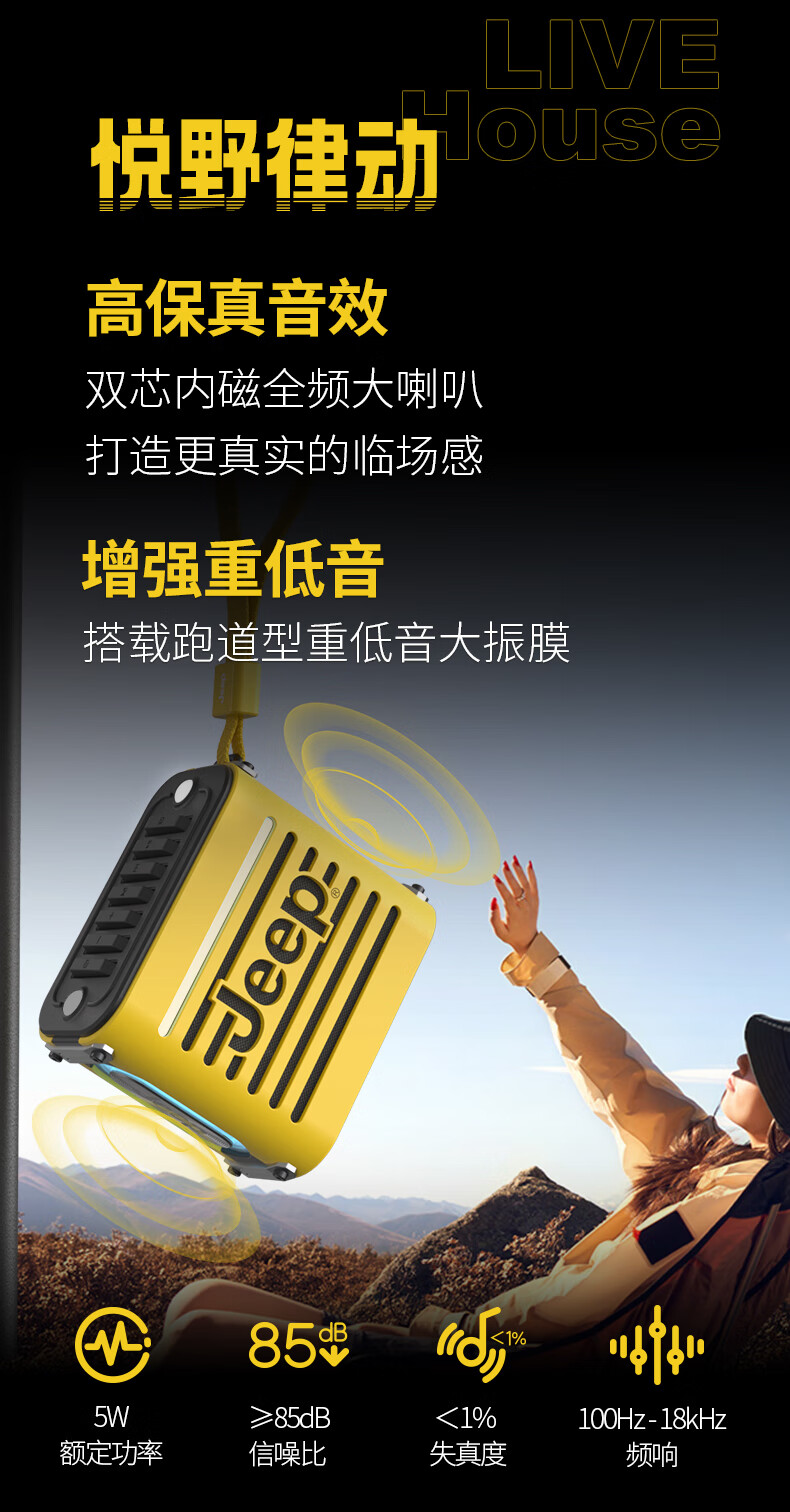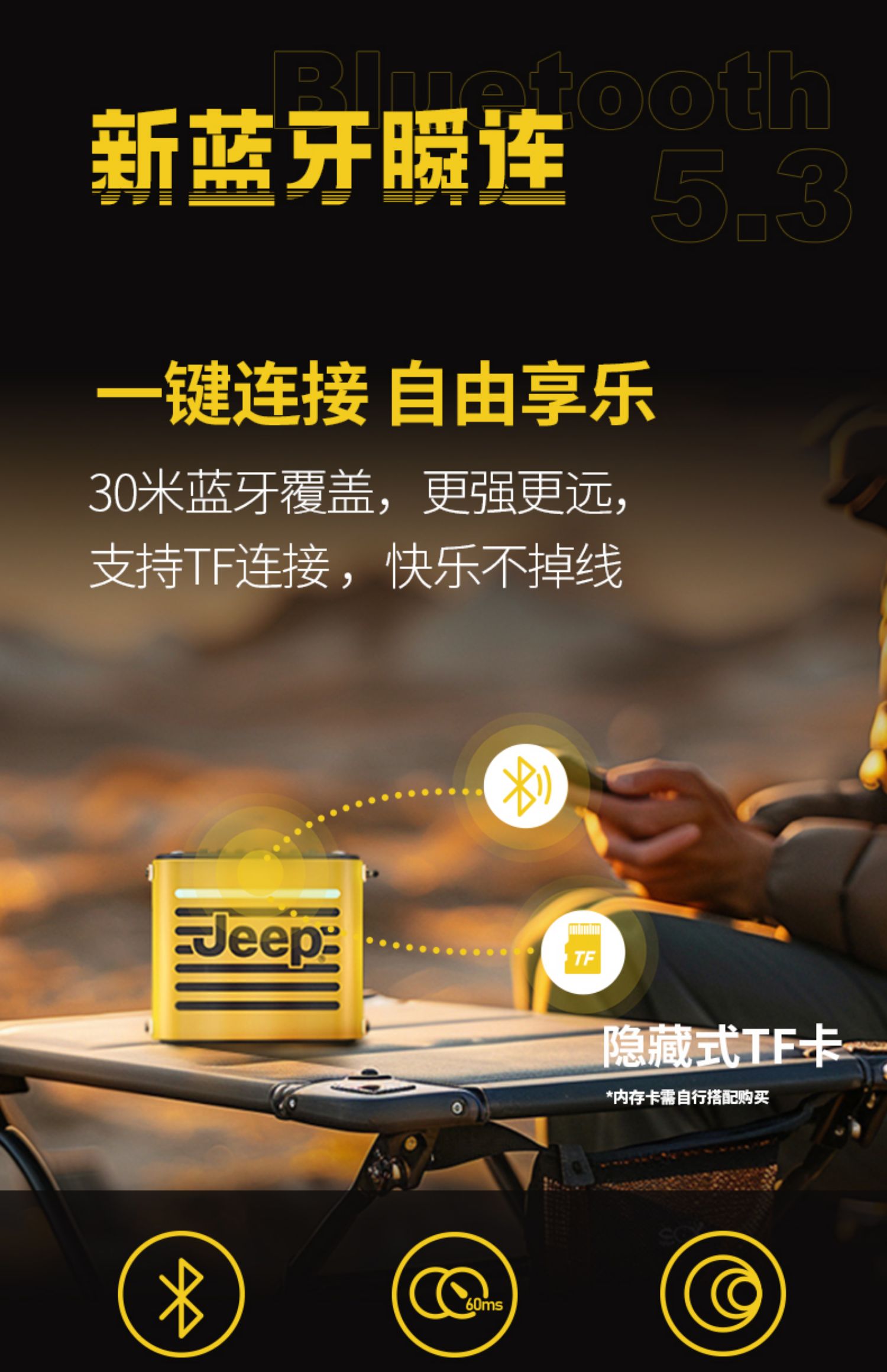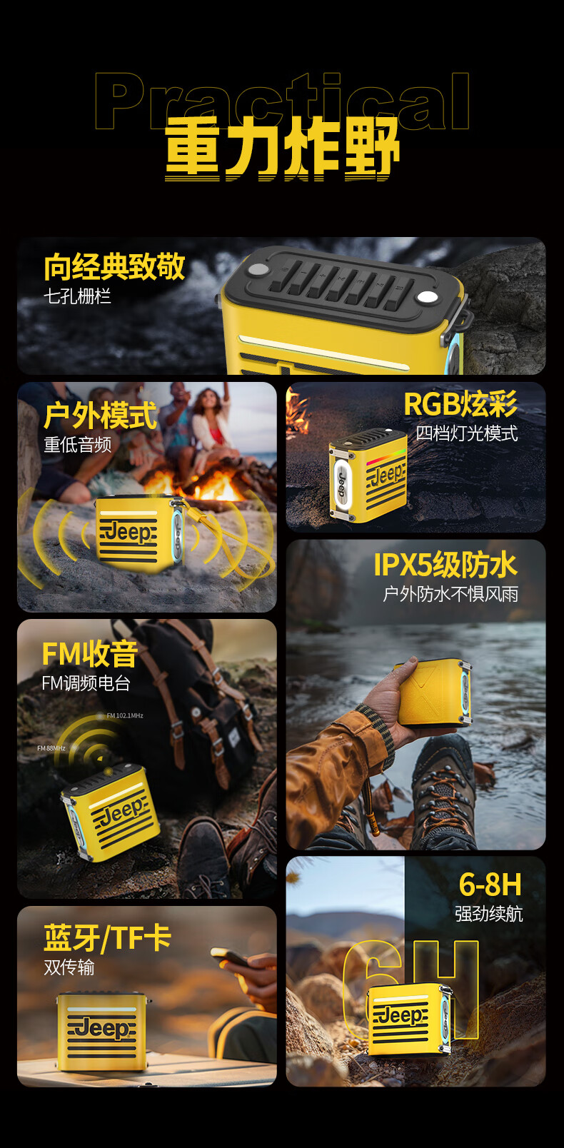 Jeep 吉普/蓝牙音响 户外便捷式FM调频收音机 防水重低音