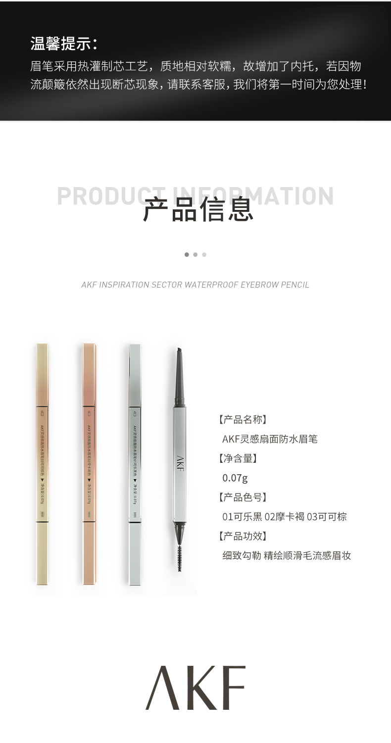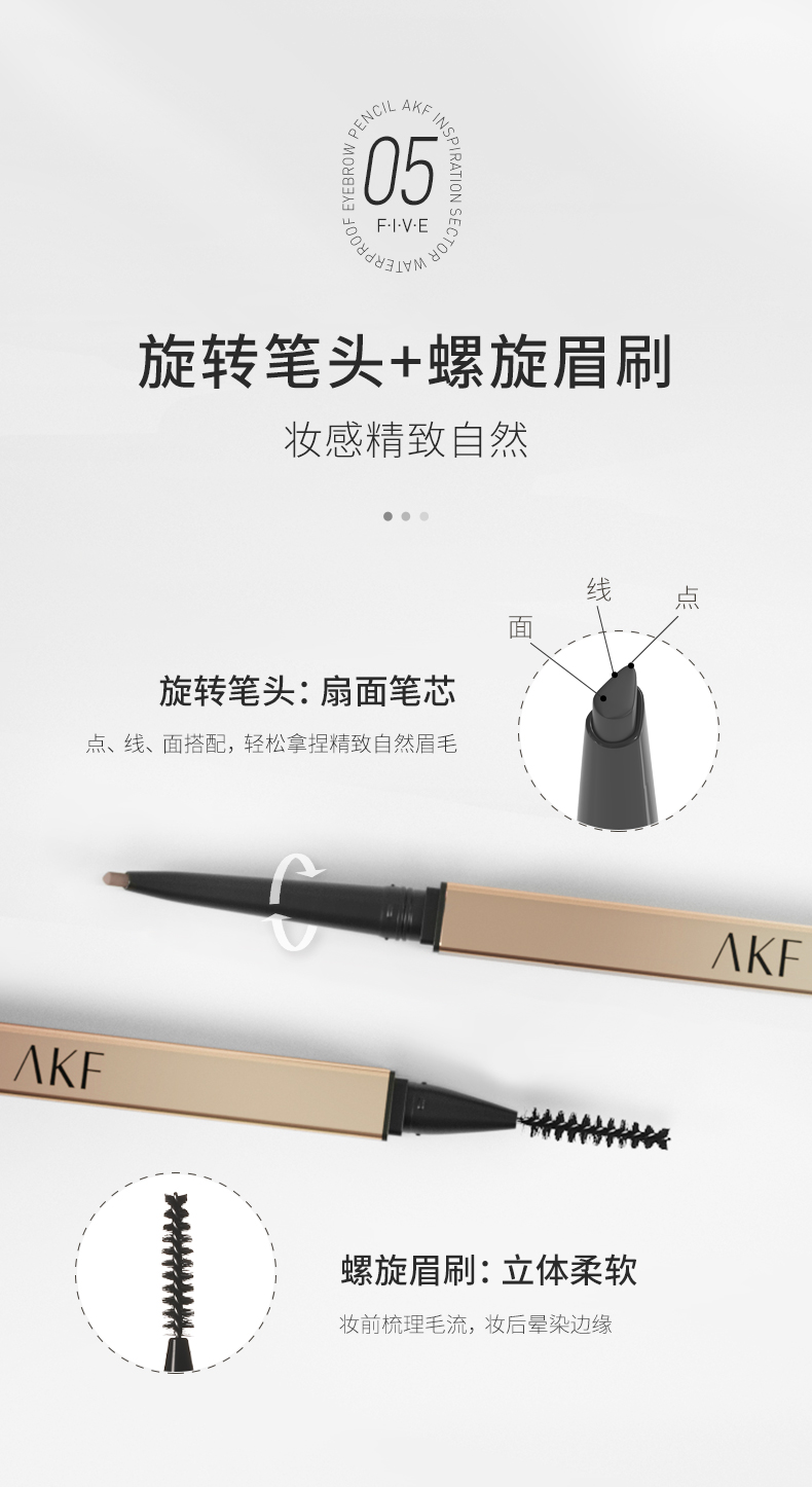 【AKF】扇形眉笔防水持久不易脱色根根分明野生眉学生党平价彩妆适合新手