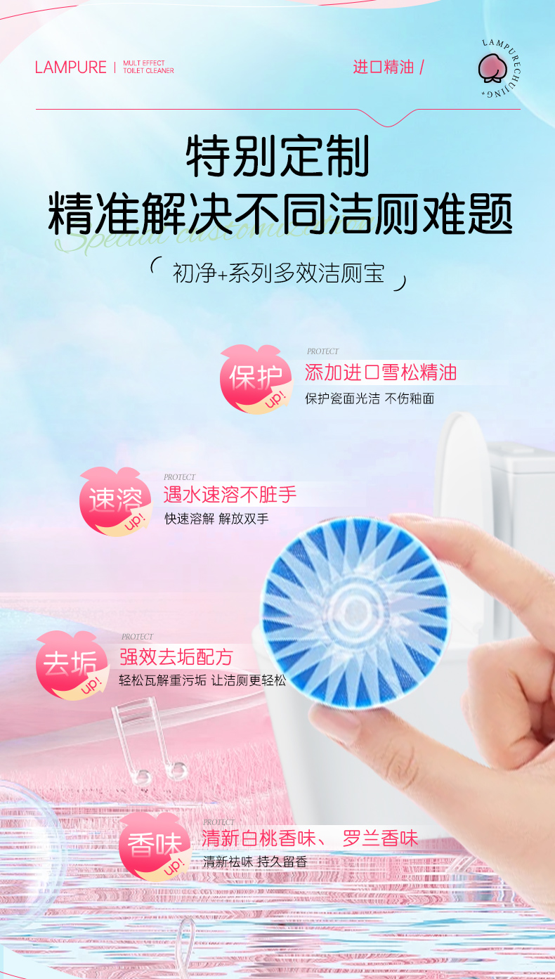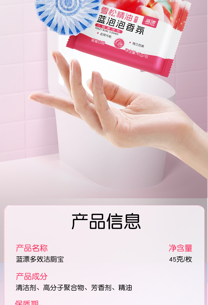 【蓝漂】香氛马桶洁厕宝45g*20颗 雪松精油蓝泡泡卫生间除臭块 马桶清洁剂洁厕灵