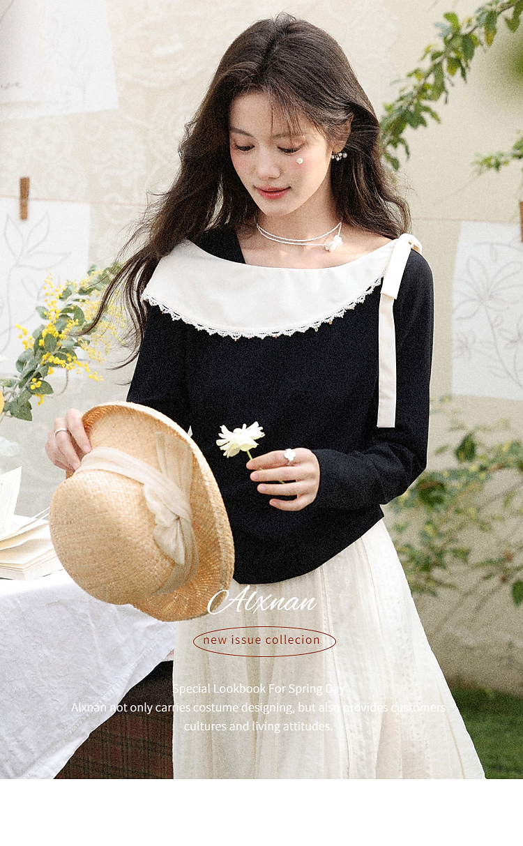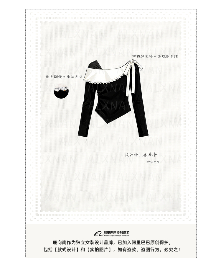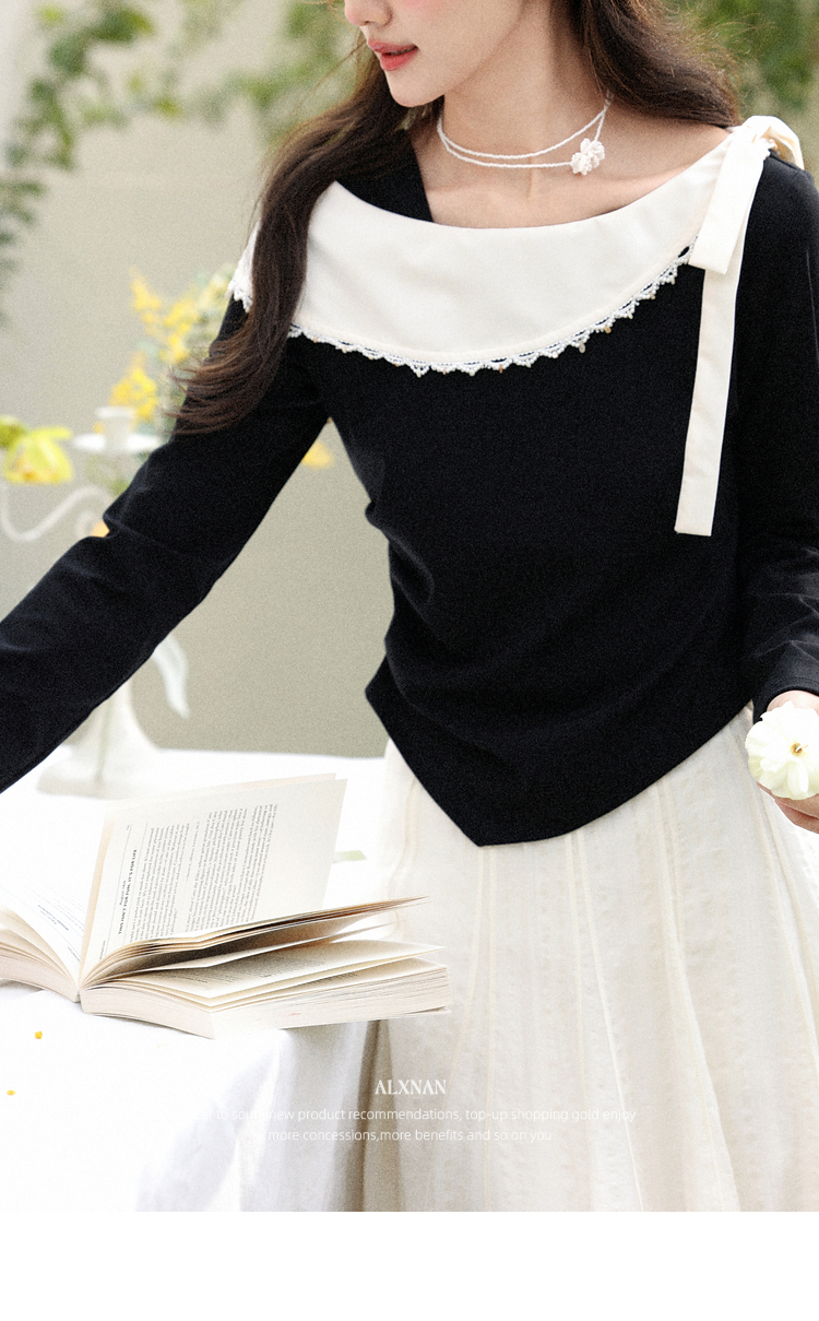 鹿向南「风传花信」法式黑杏色不规则T恤显瘦长袖女2026春季新款 商品图4