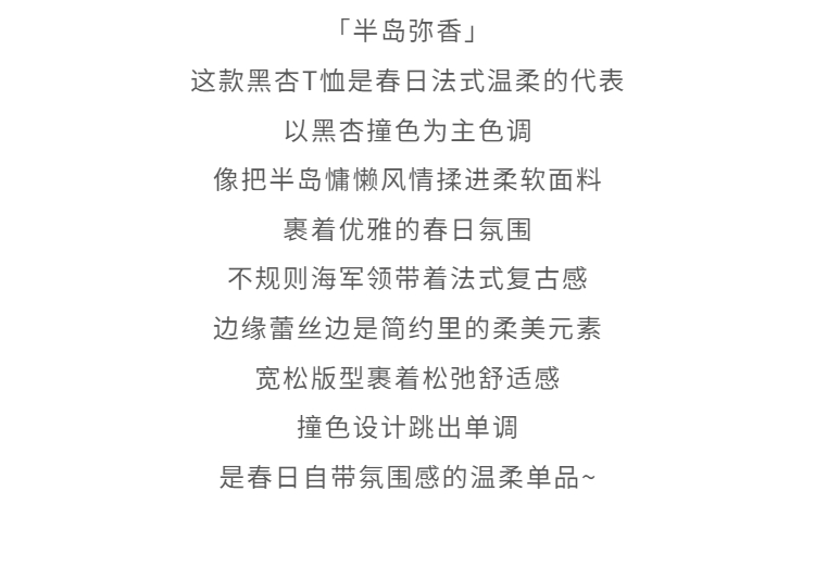 鹿向南「风传花信」法式黑杏色不规则T恤显瘦长袖女2026春季新款 商品图2