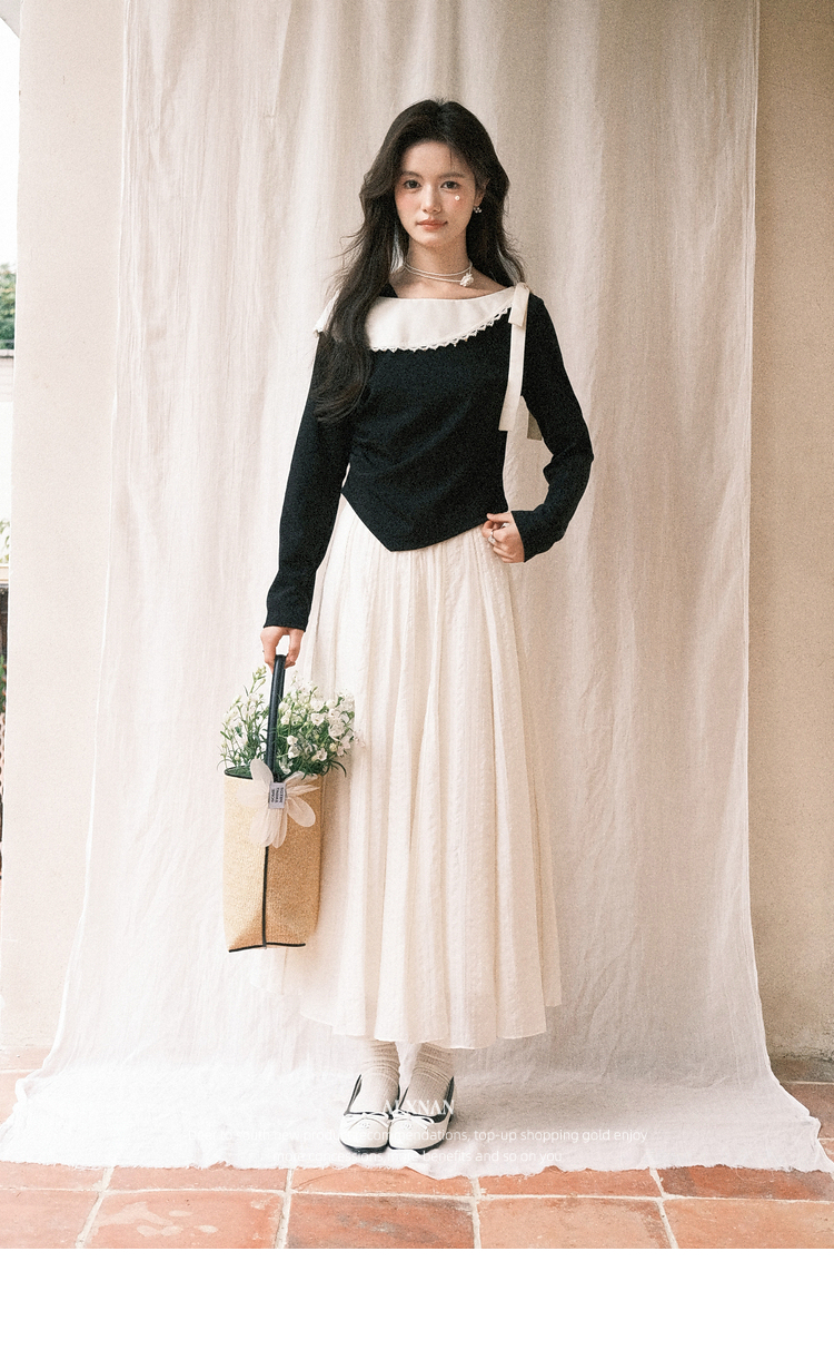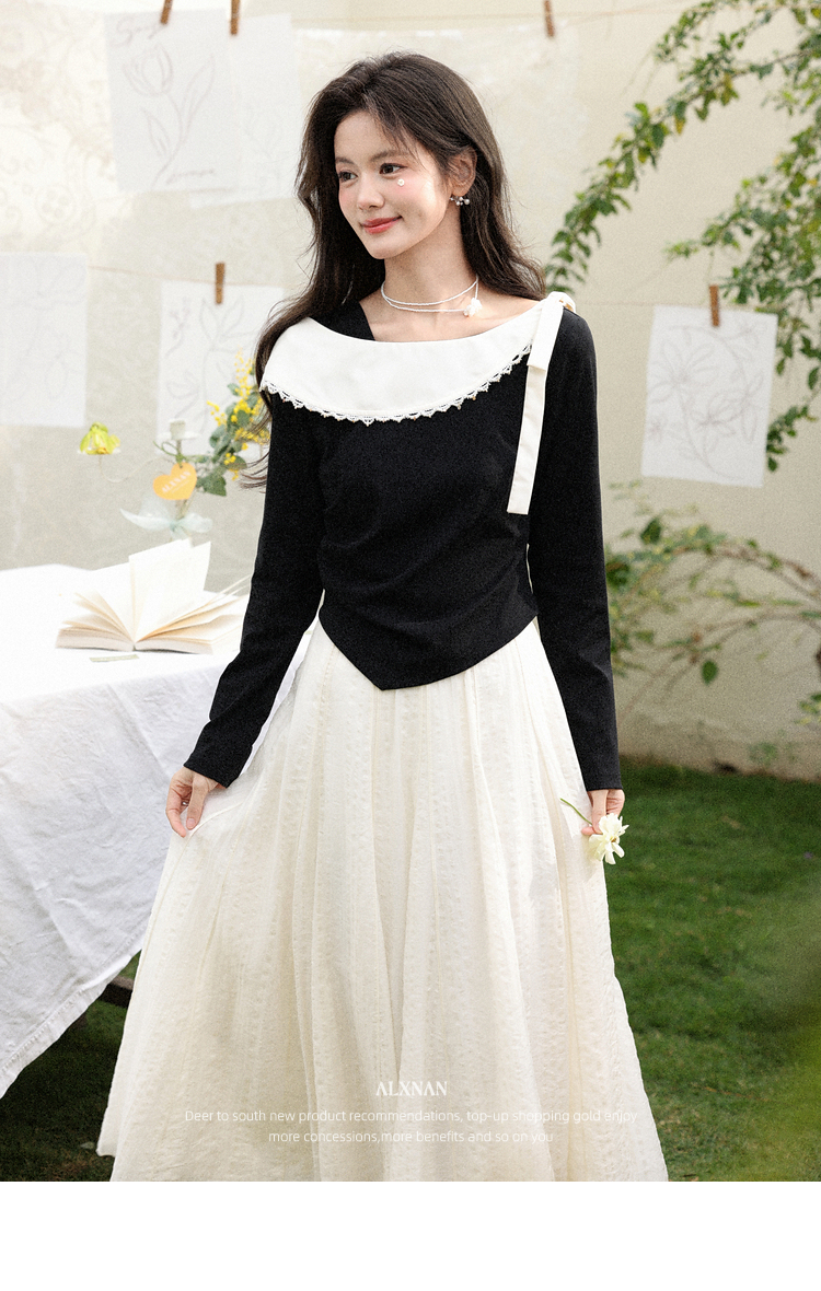 鹿向南「风传花信」法式黑杏色不规则T恤显瘦长袖女2026春季新款 商品图3