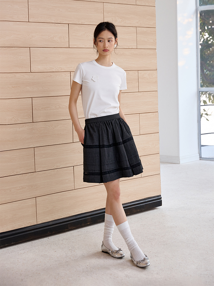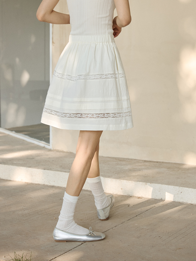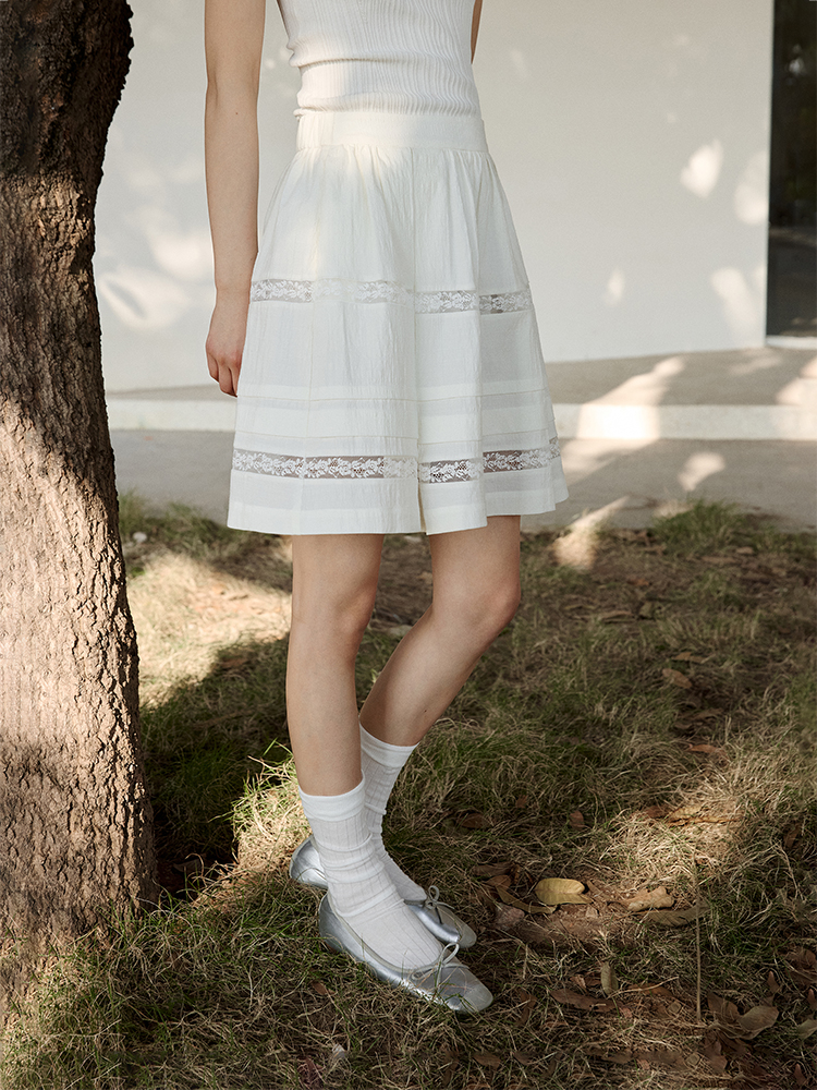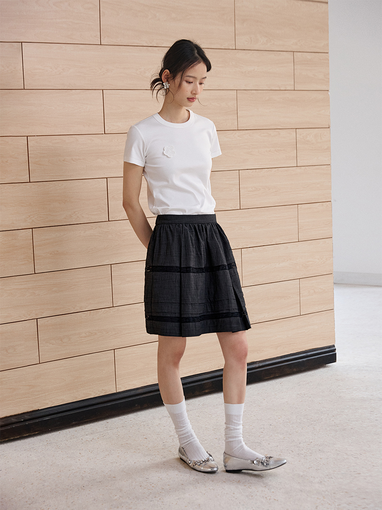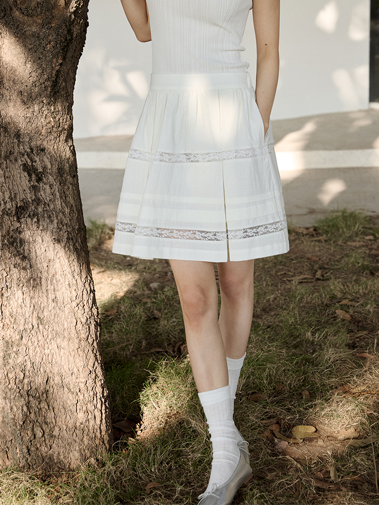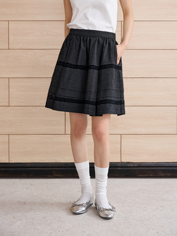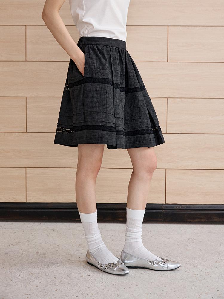 ForPoem 现货 25/SS原创设计防走光褶皱肌理花边拼接半身裙