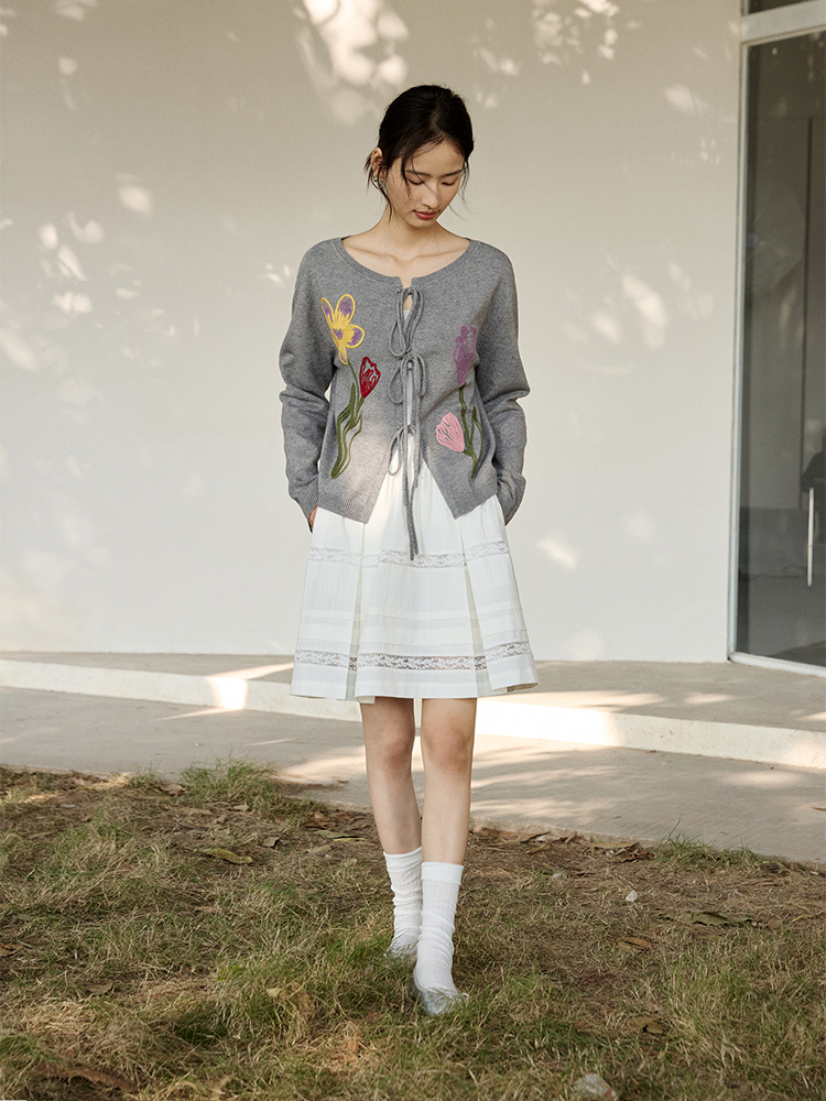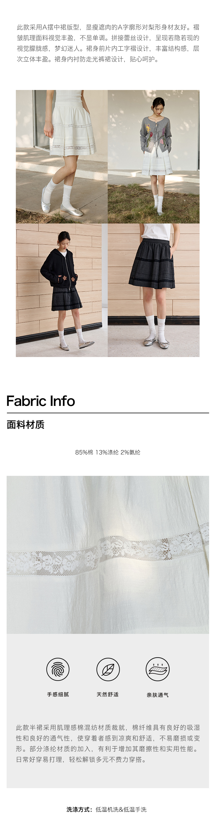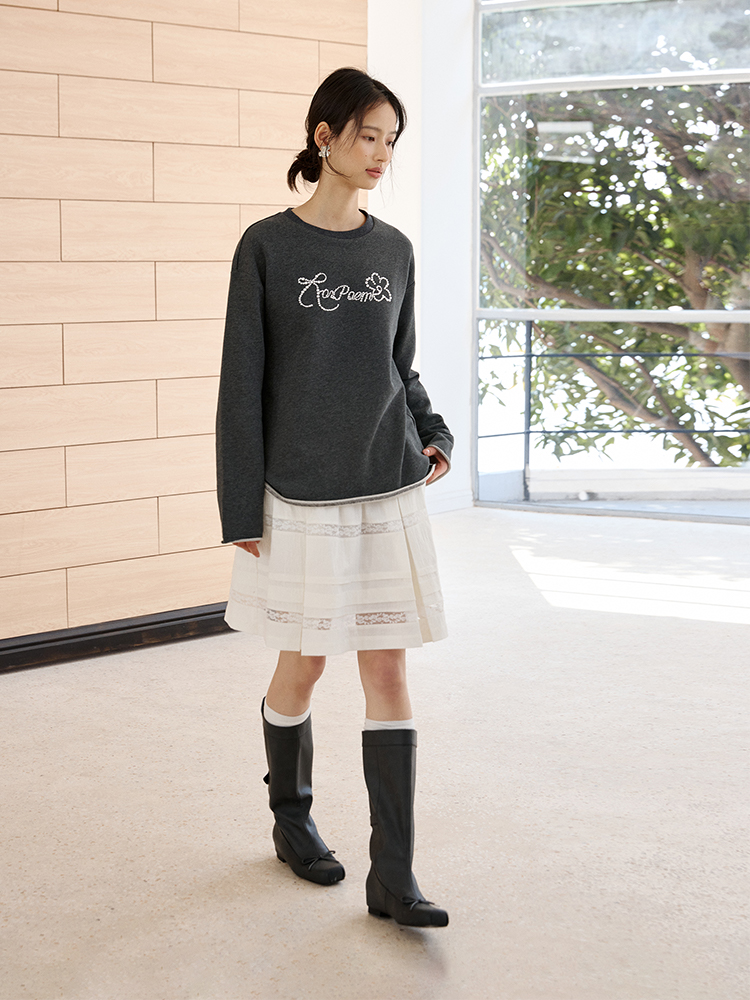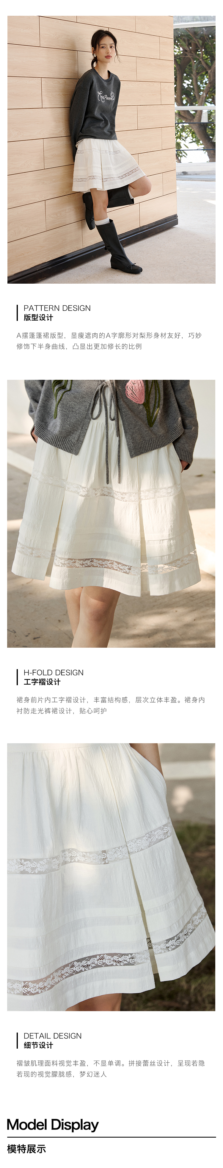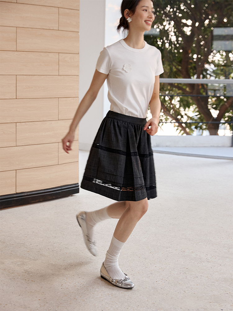 ForPoem 现货 25/SS原创设计防走光褶皱肌理花边拼接半身裙