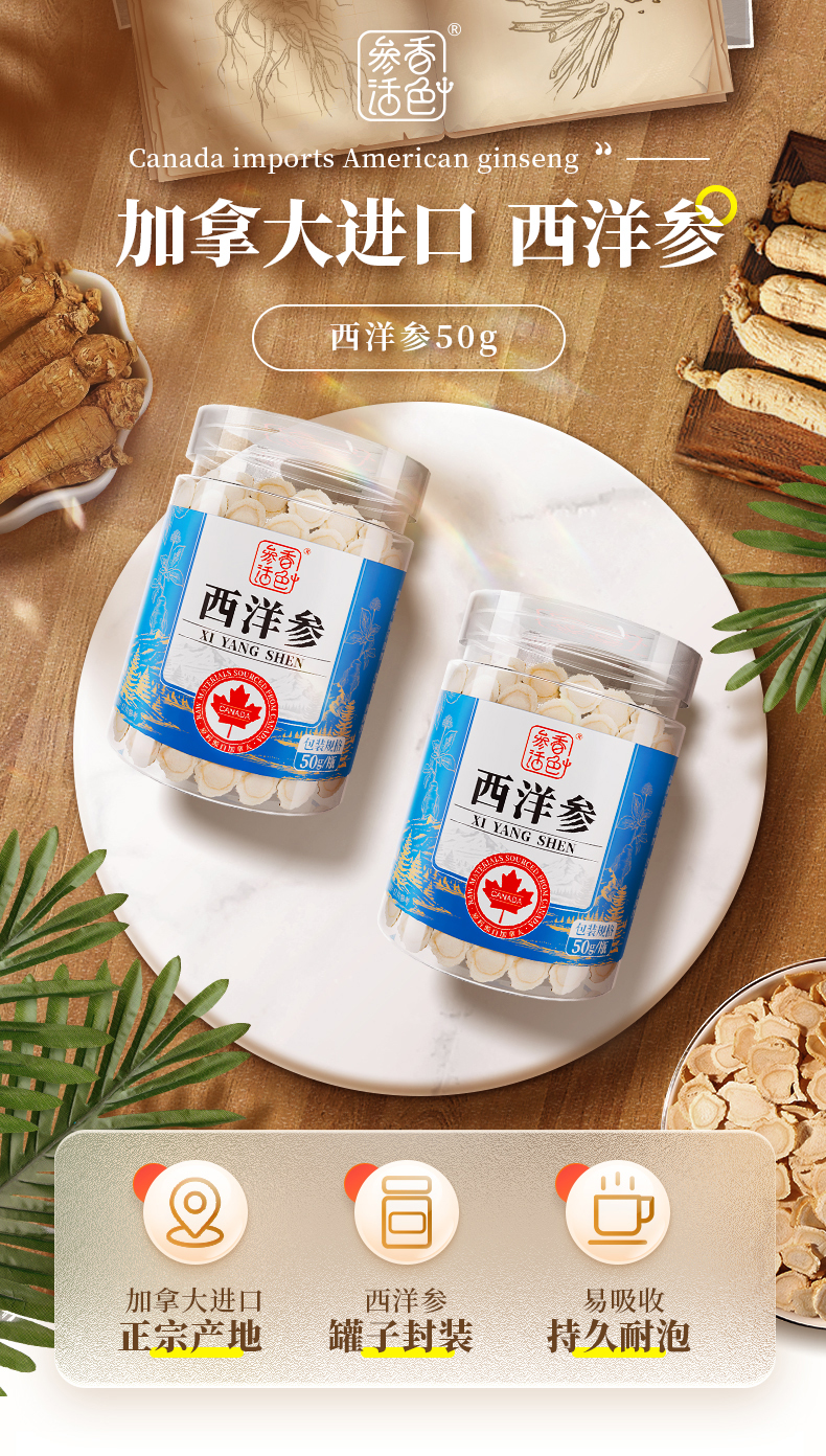 50g/罐 参香活色 加拿大进口西洋参片 多规格可选