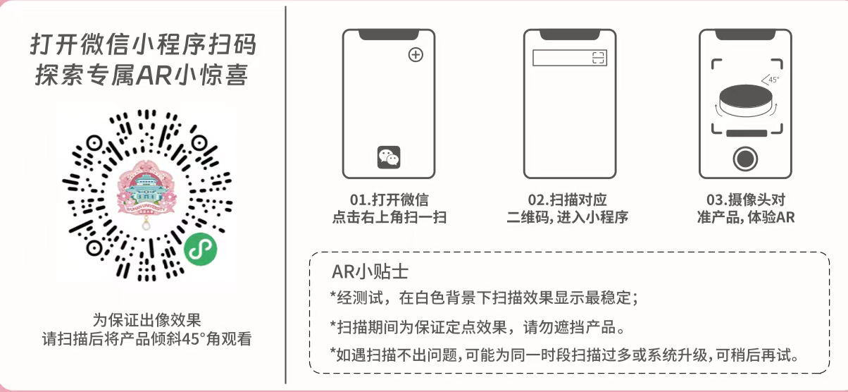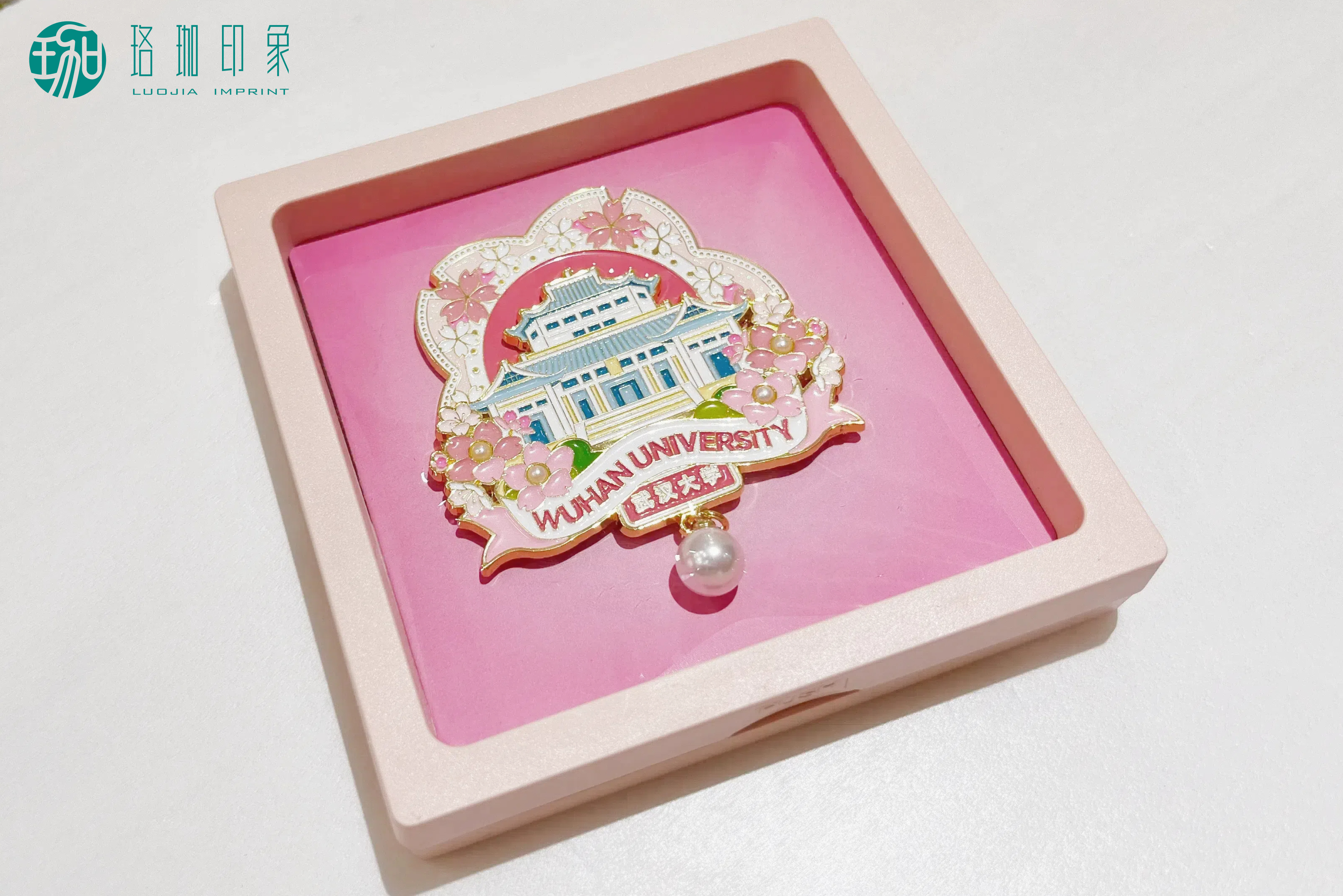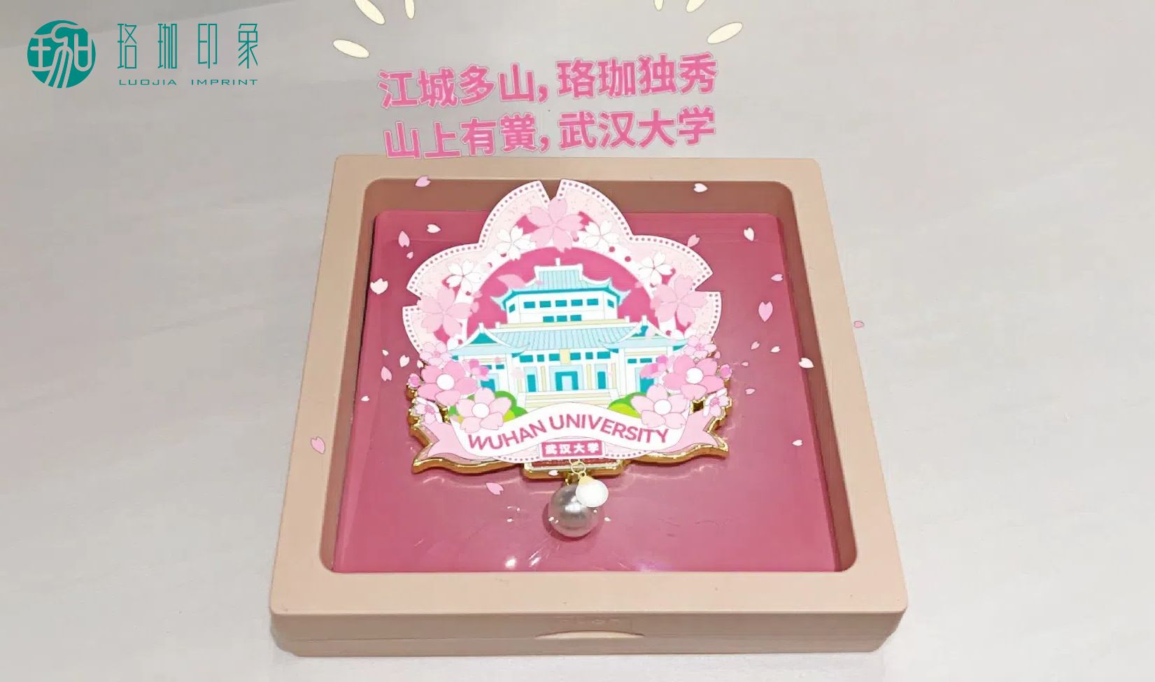 武汉大学AR旋转冰箱贴,扫码获取AR动画景象,设计融合趣味动画和悠扬武大校歌,将珞樱环绕的武汉大学老图书馆历史背景娓娓道来,是科技、珠宝、文创的多项赋能,是多元化、故事性、高品质的新文创,也属于武汉樱花季文旅产品。