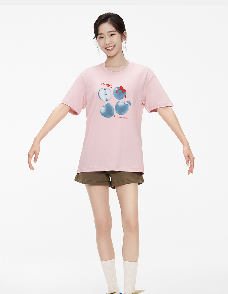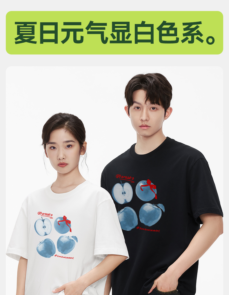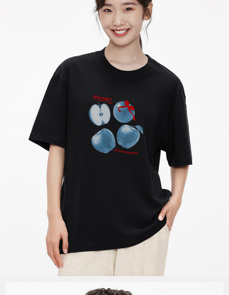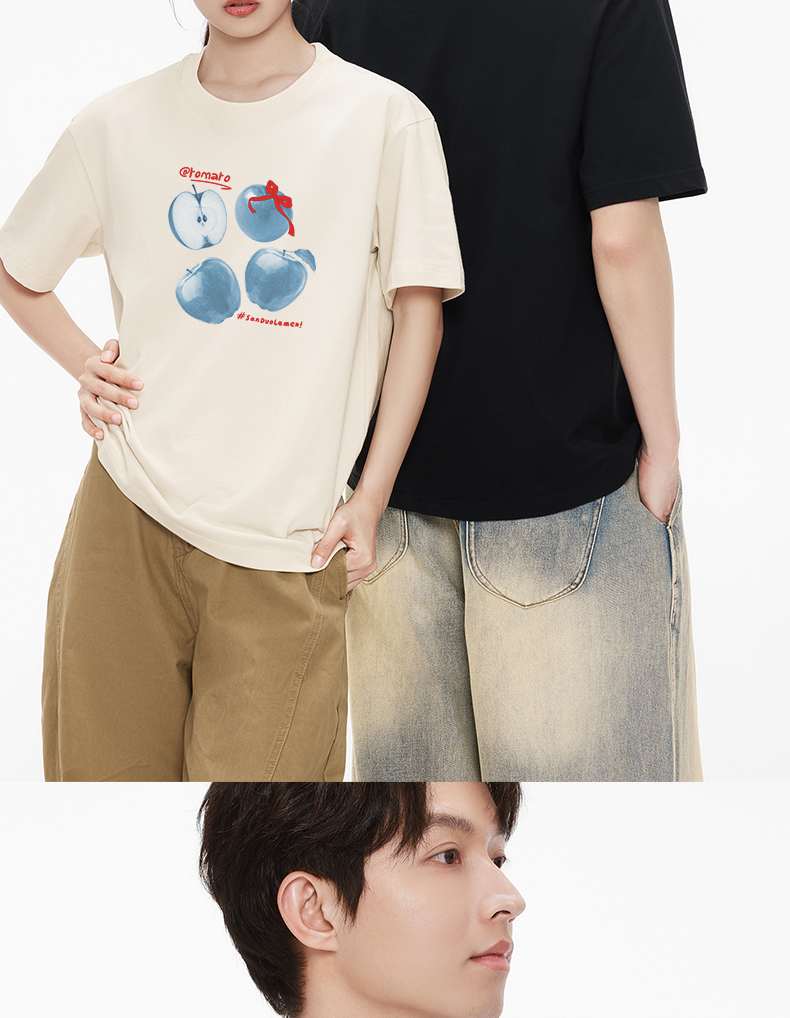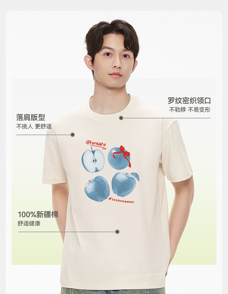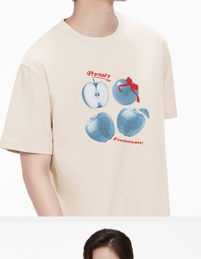 「棉的美学」设计感潮牌高街短袖T恤男纯棉重磅夏季苹果舒适衣服
