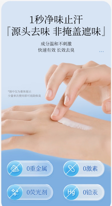● 浓缩质地更耐用,涂抹后,瞬间成膜不留痕不沾衣物。无香料配方,不反复不依赖,不以香盖味。