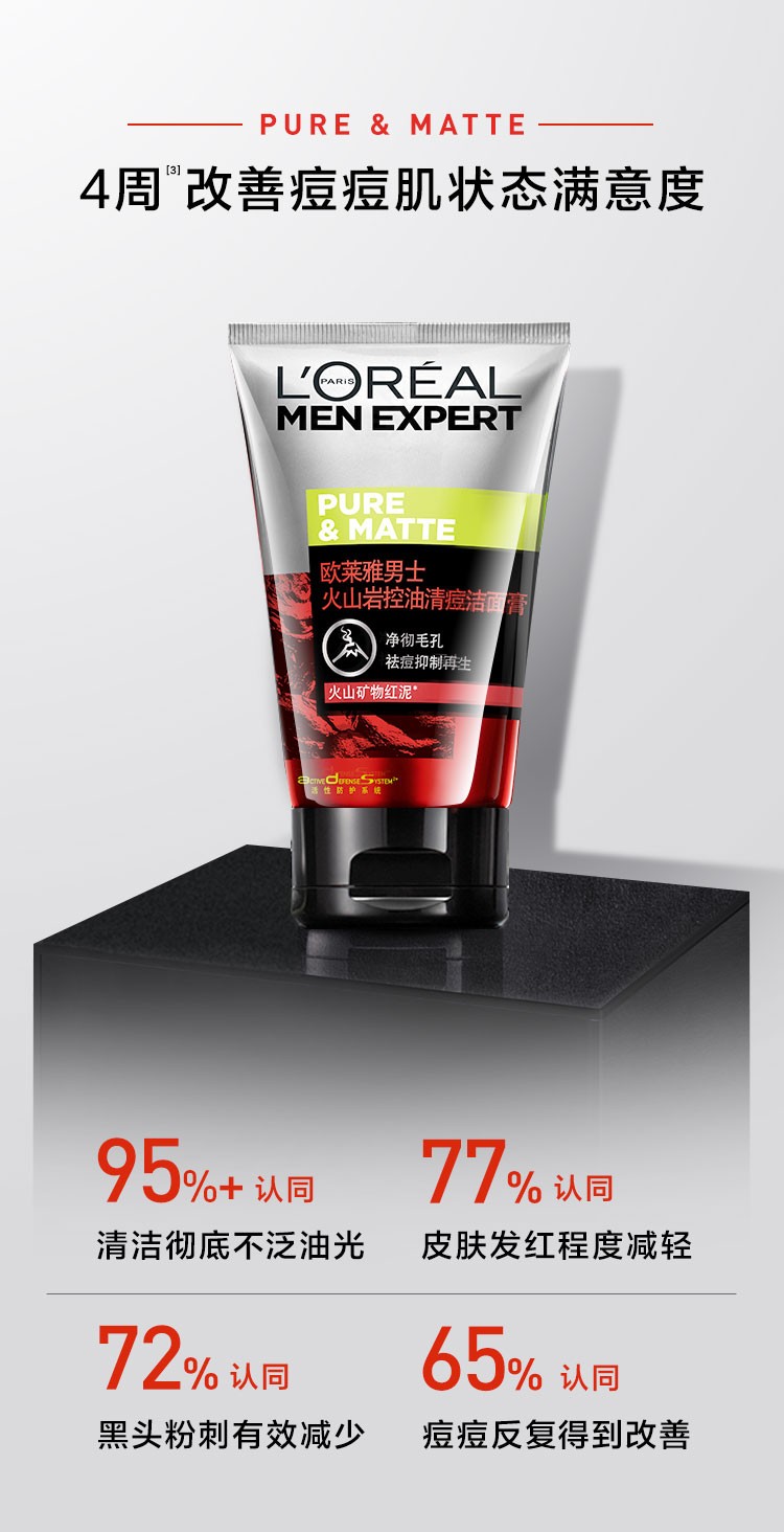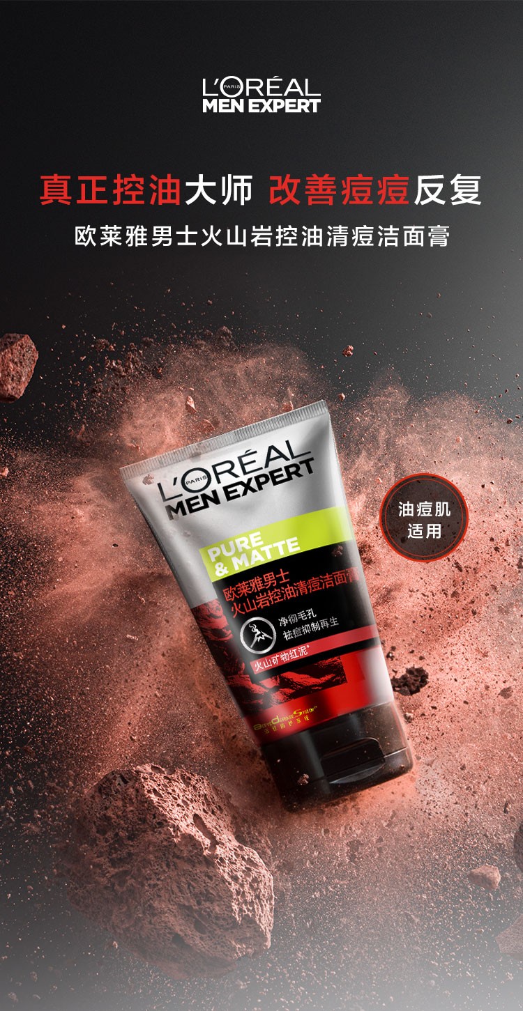 欧莱雅男士火山岩控油清痘洁面膏100ml