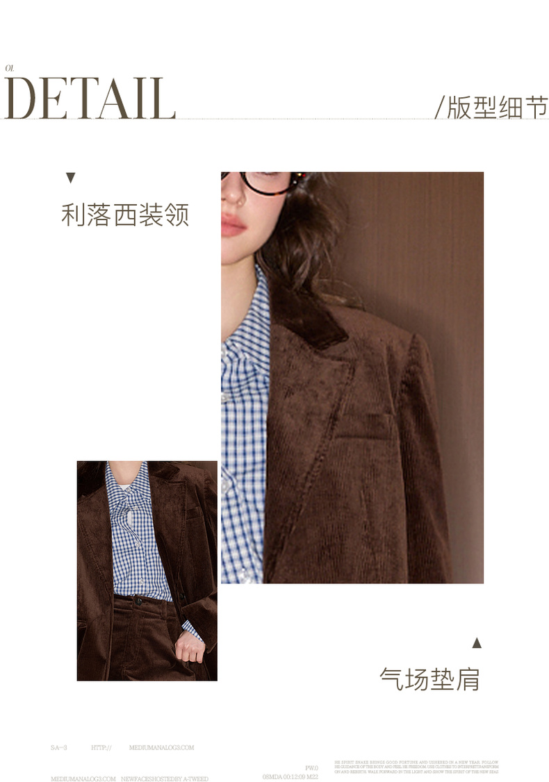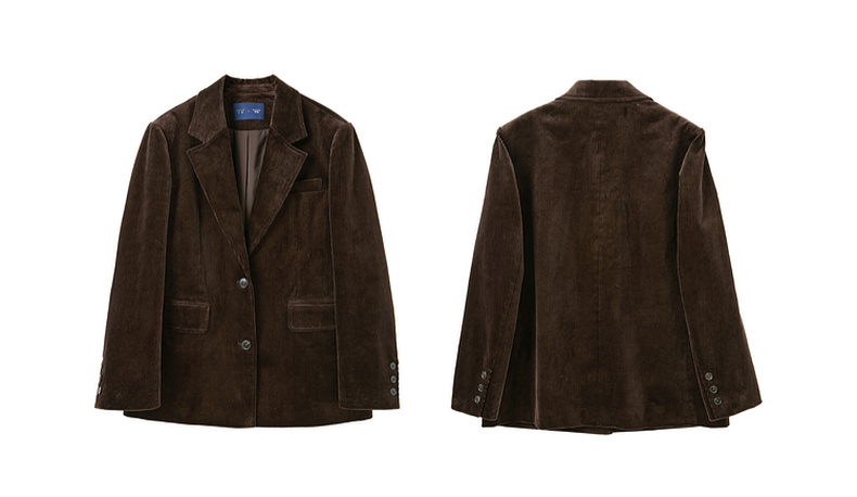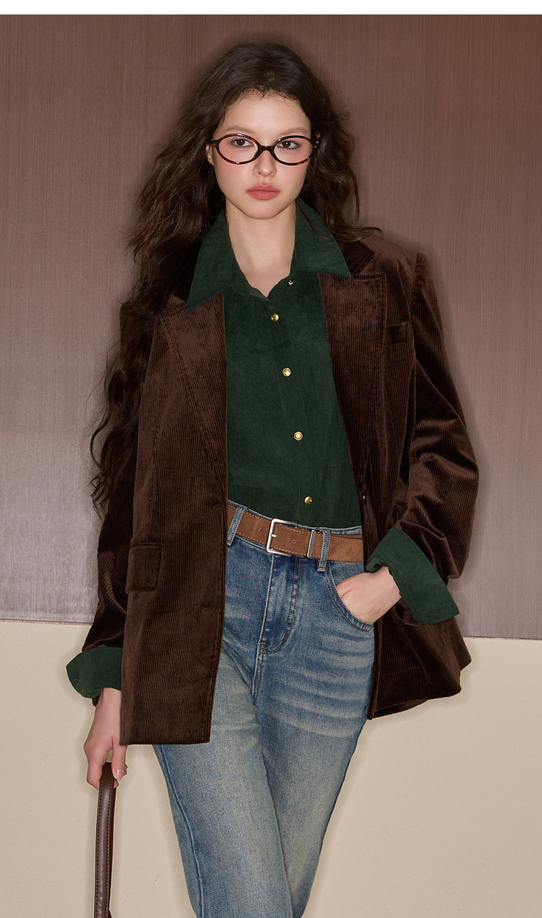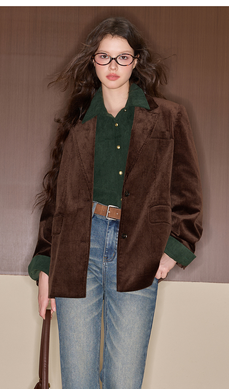 三彩独醒2025冬季新款灯芯绒西装外套正肩小西服复古通勤F