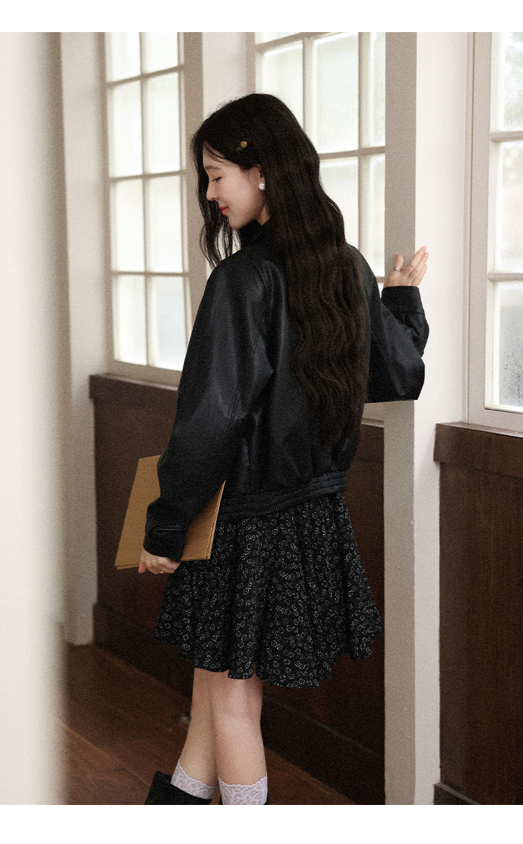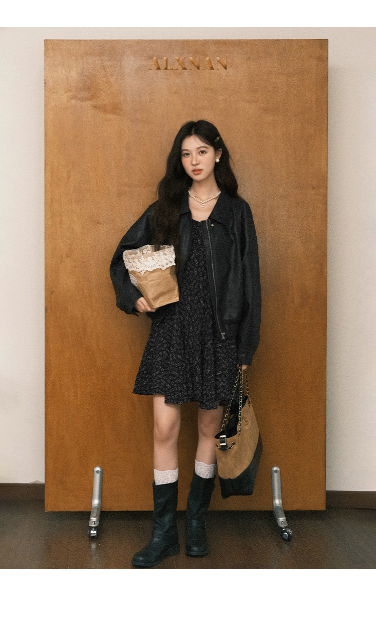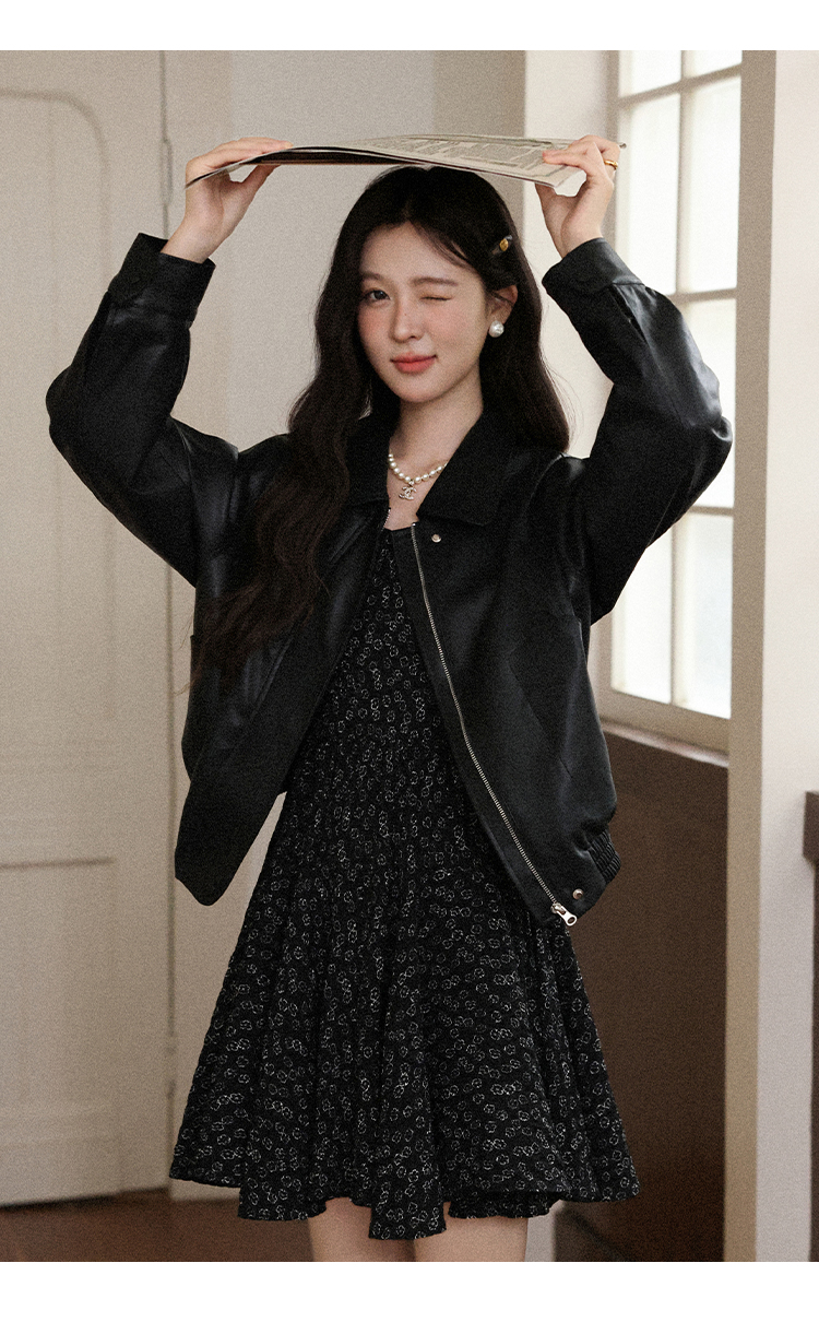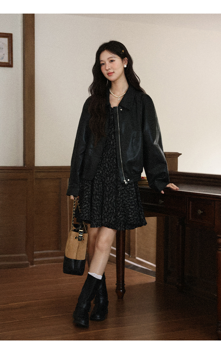 鹿向南「都市主角」高级感复古黑色皮衣外套女秋新款拉链翻领夹克