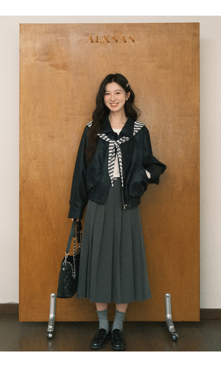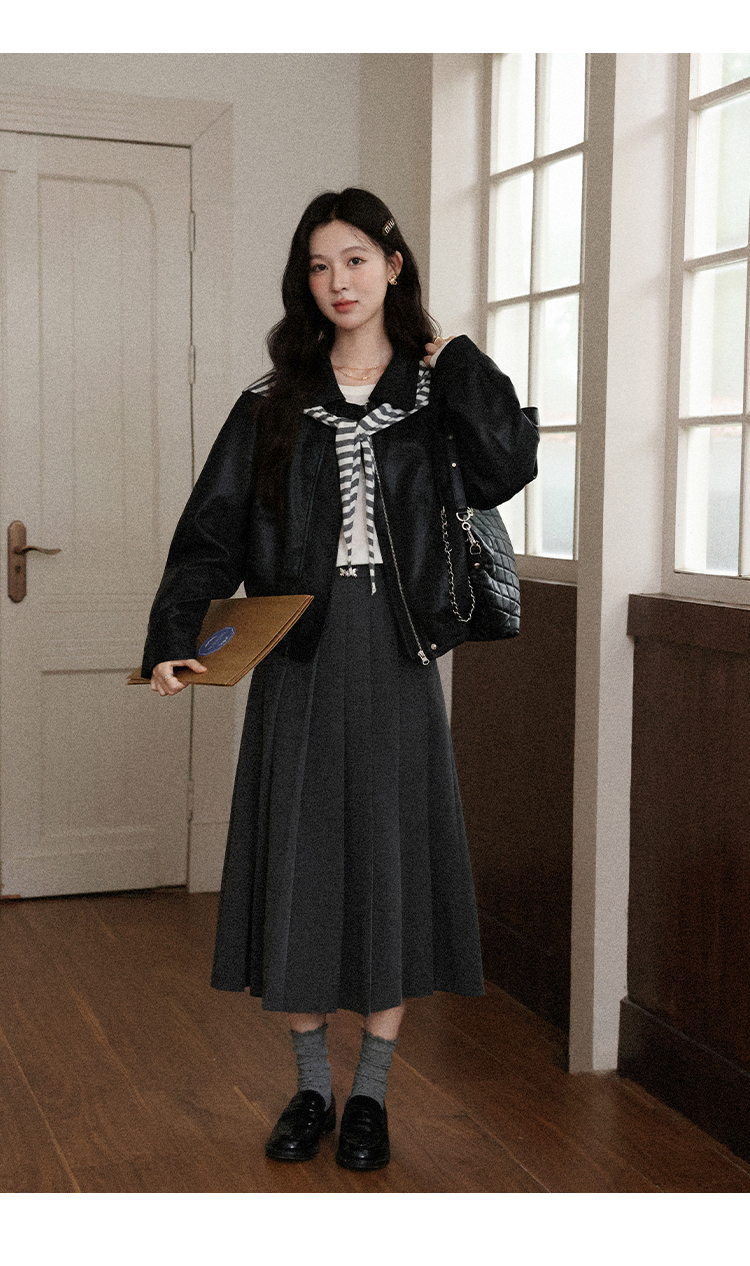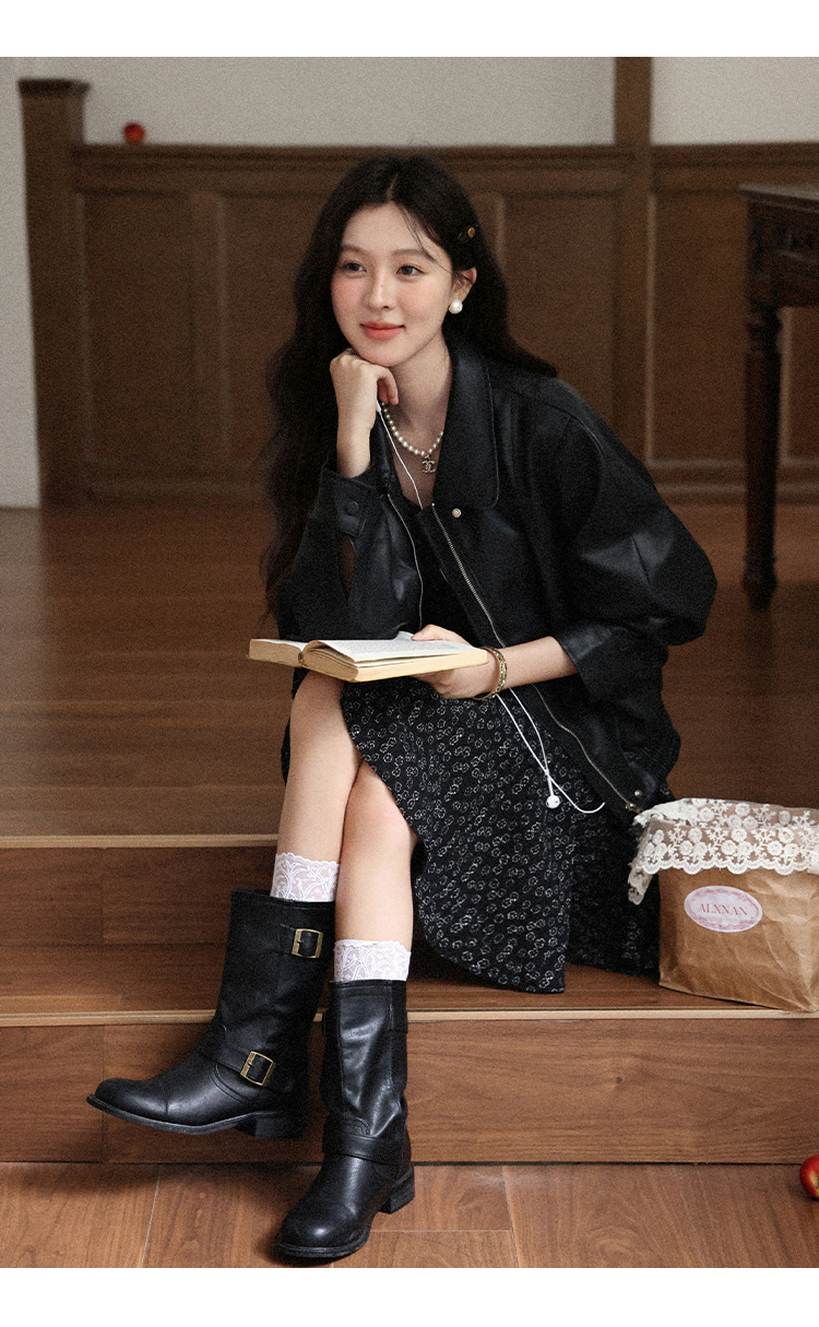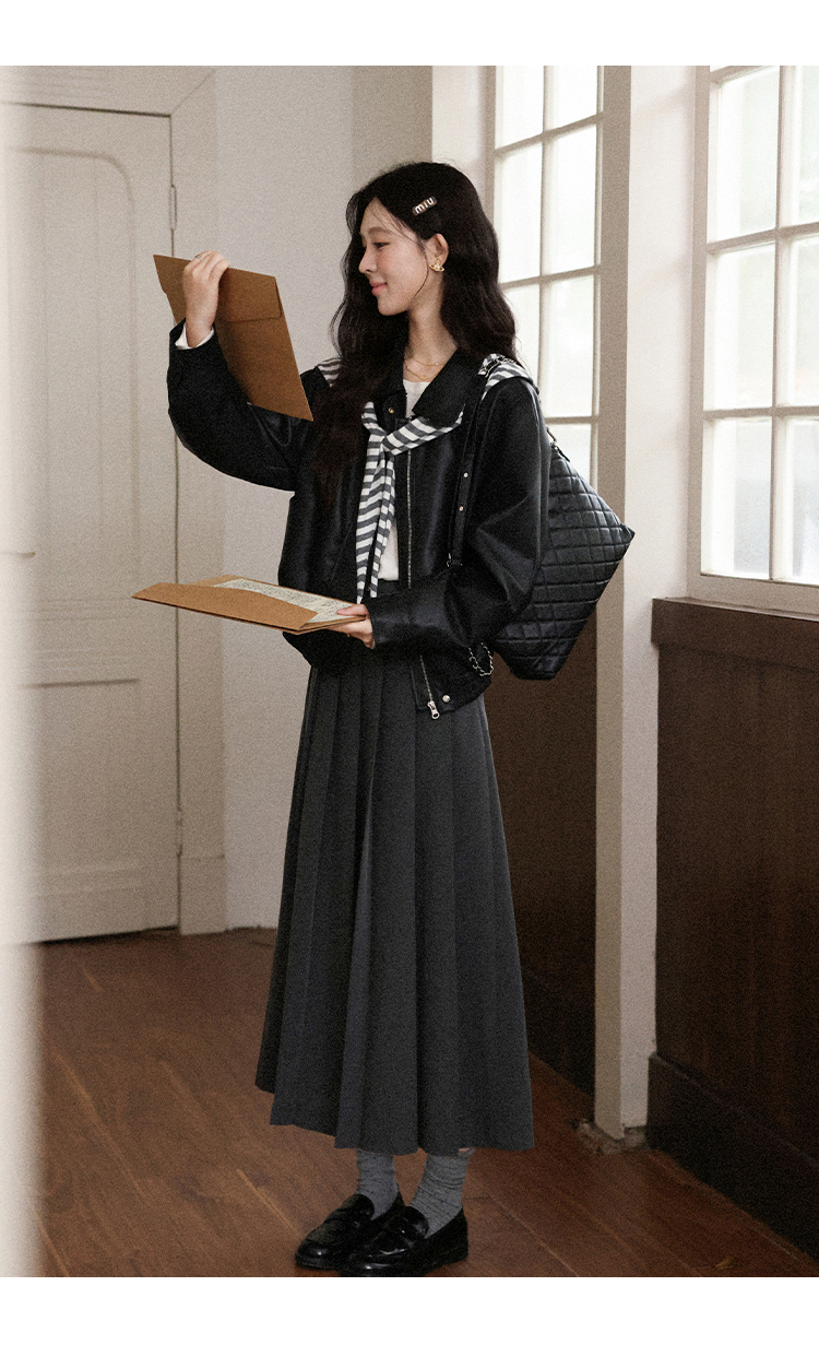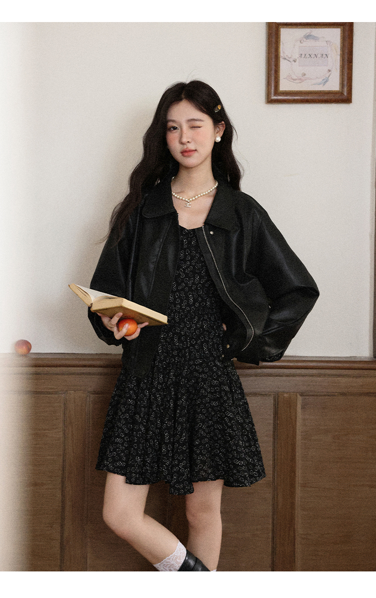 鹿向南「都市主角」高级感复古黑色皮衣外套女秋新款拉链翻领夹克