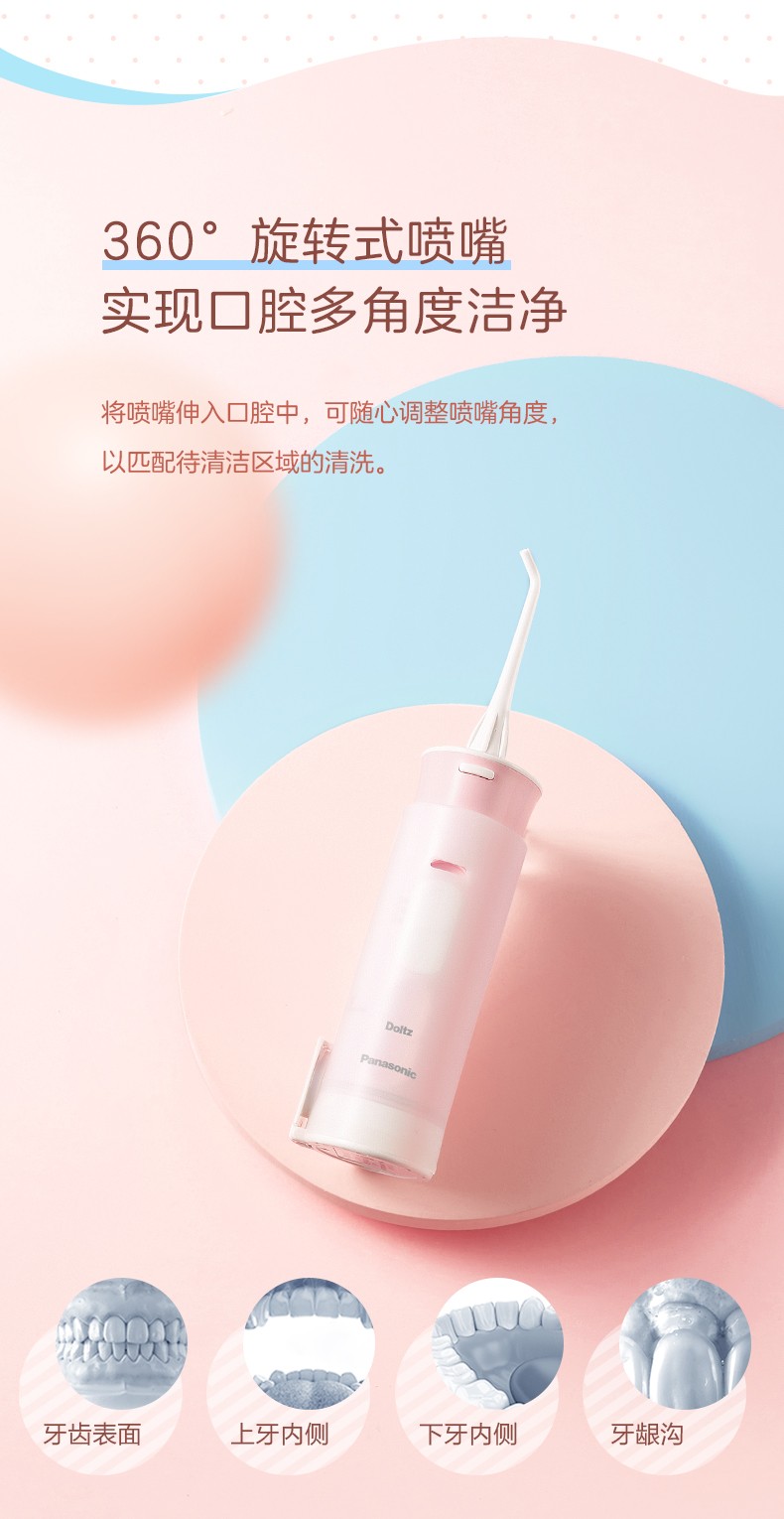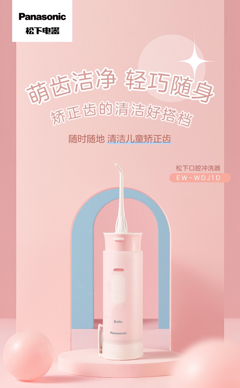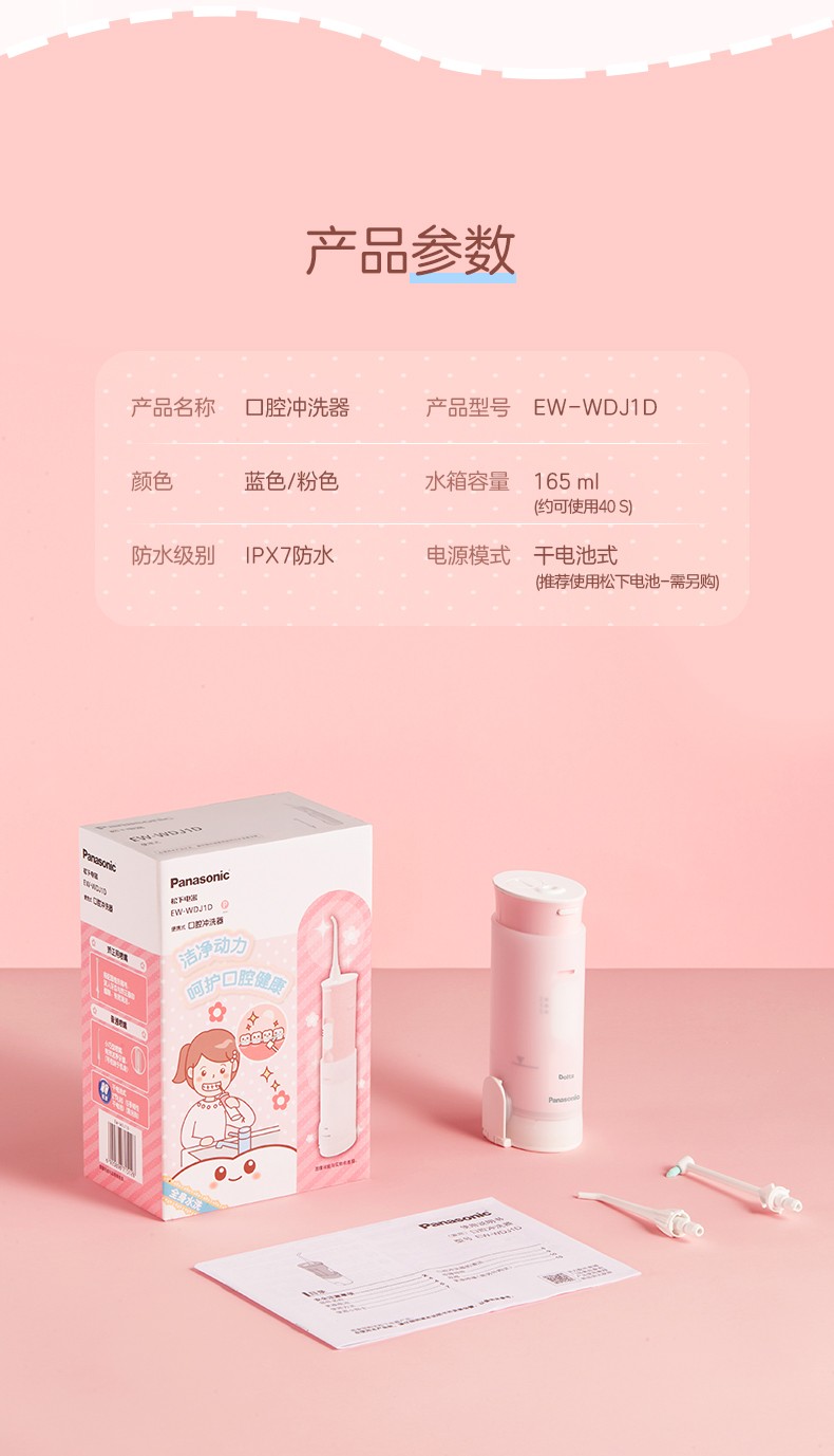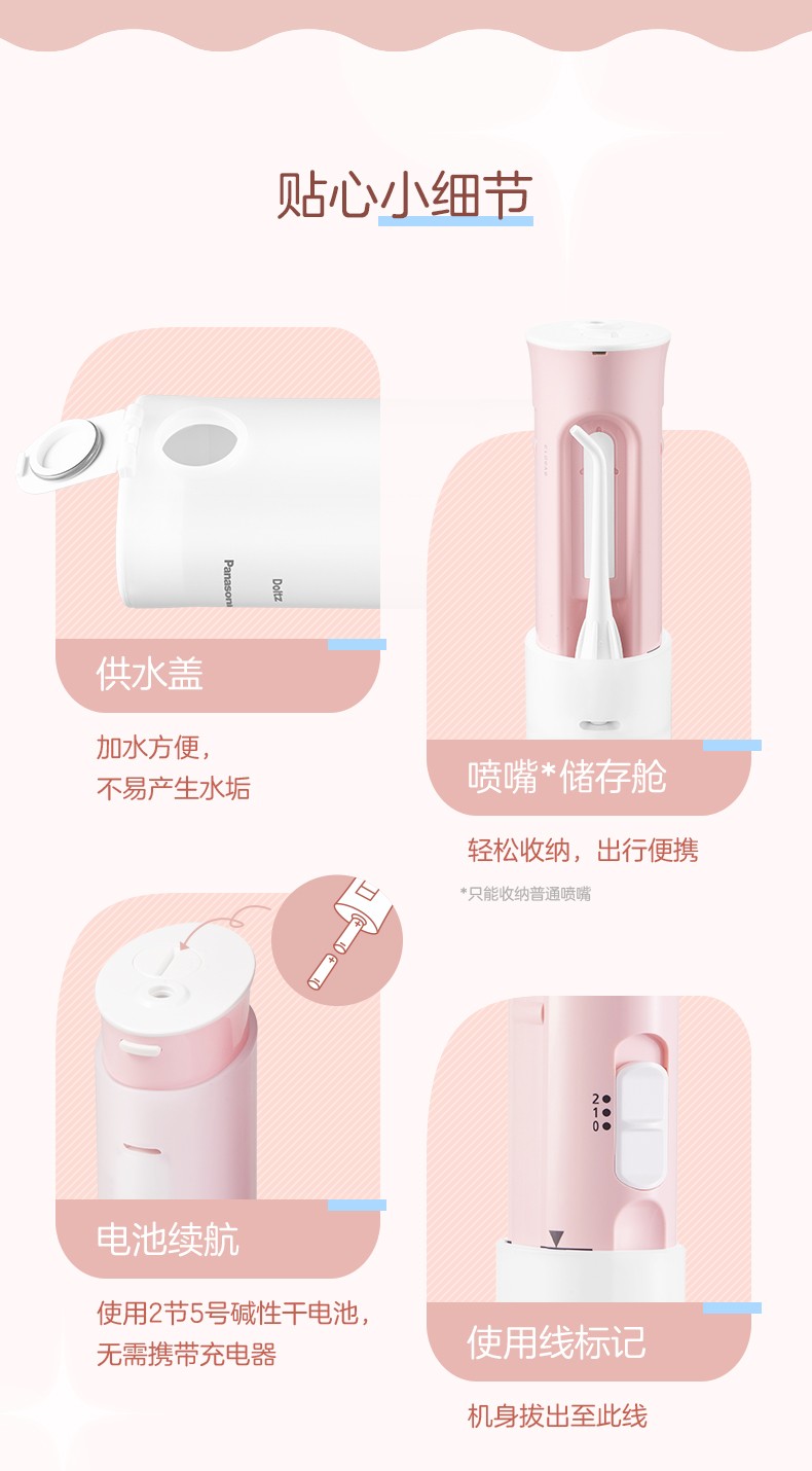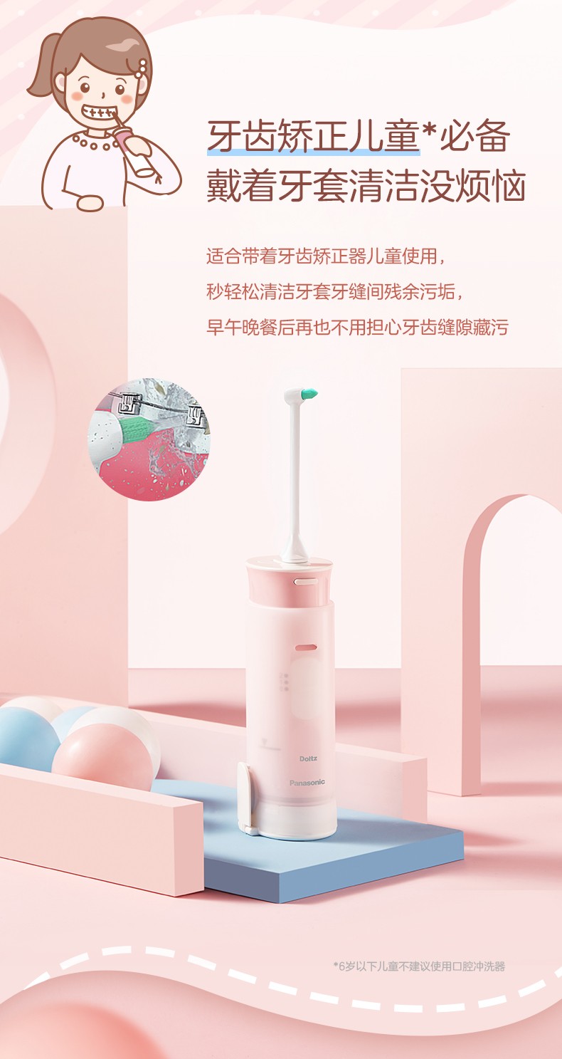 松下(Panasonic) 儿童冲牙器EW-WDJ1D 便携式牙缝水牙线口腔清洁喷牙洗牙器