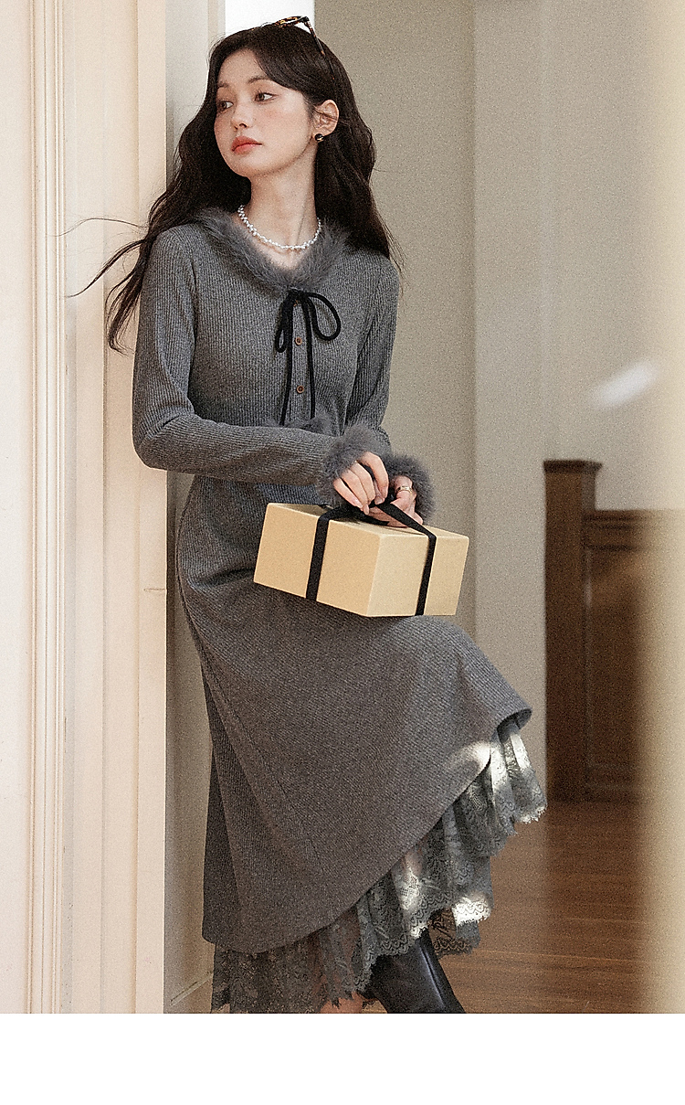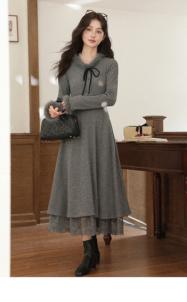 鹿向南【1227/20:00新品】黑灰色连衣裙