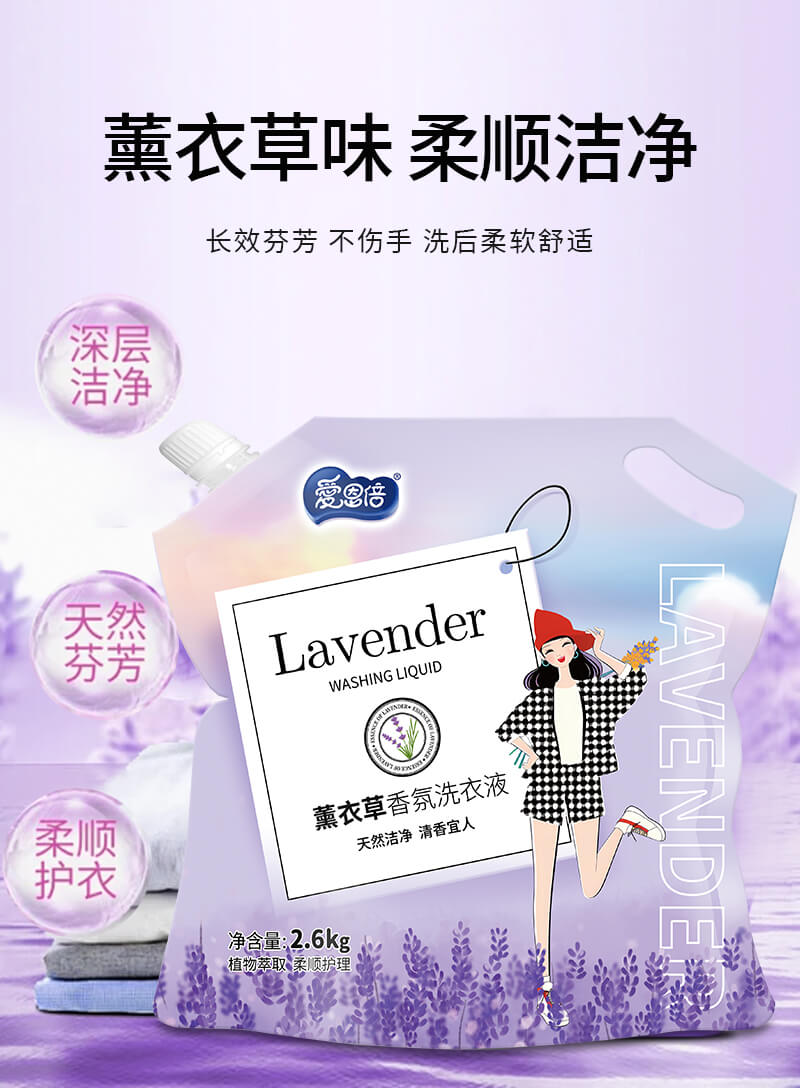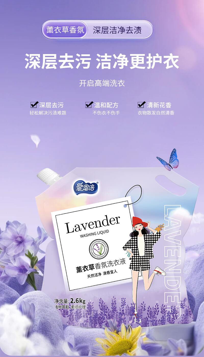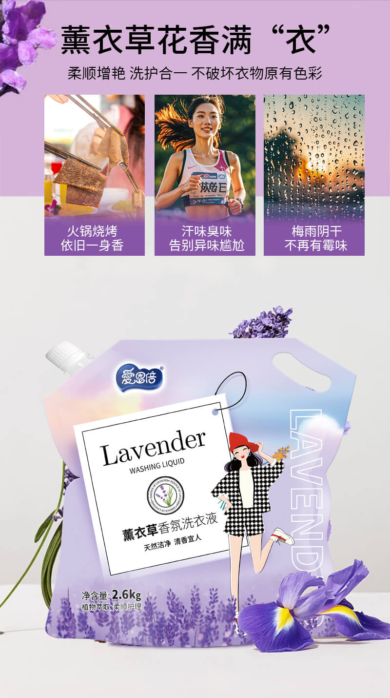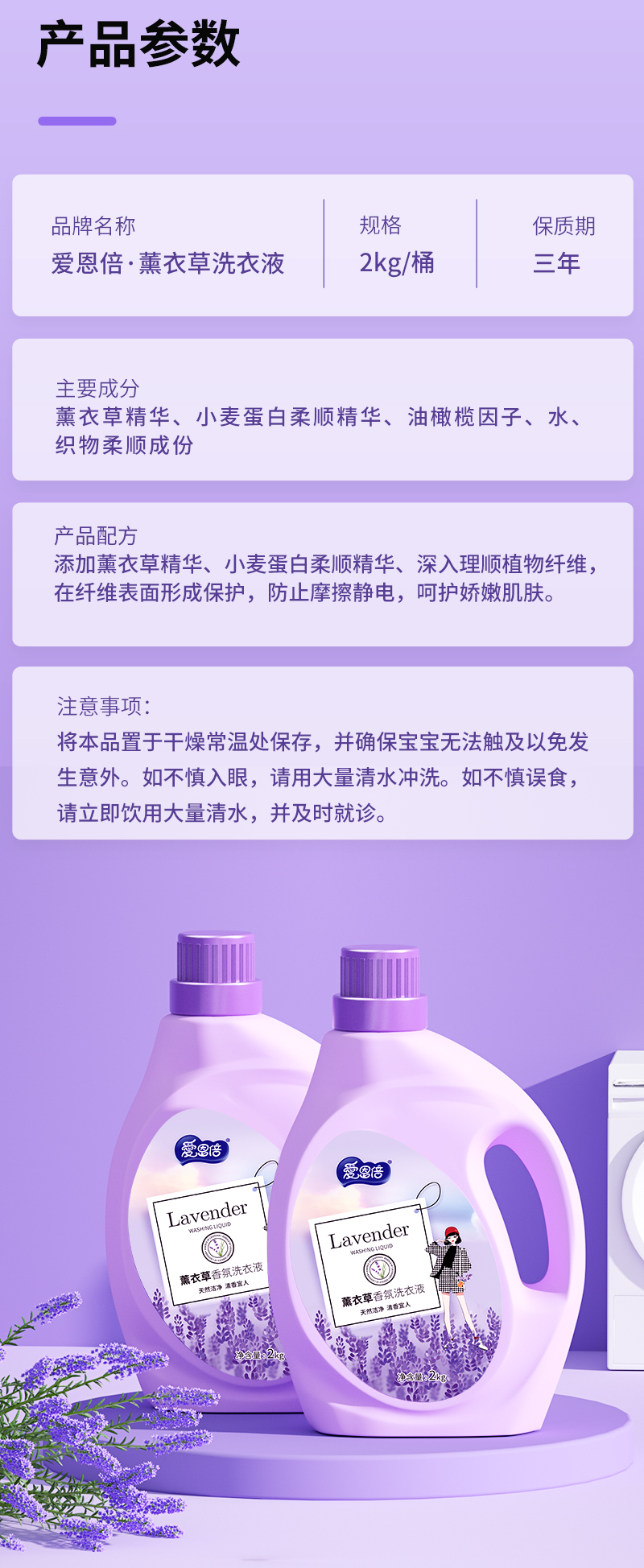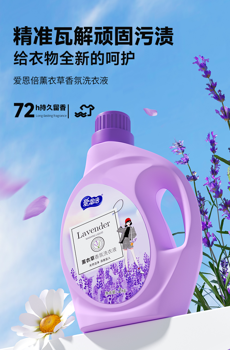 【清洁去污】爱恩倍 薰衣草香氛洗衣液 (2kg*1桶/2.6kg*1袋) 植物萃取净衣不伤手