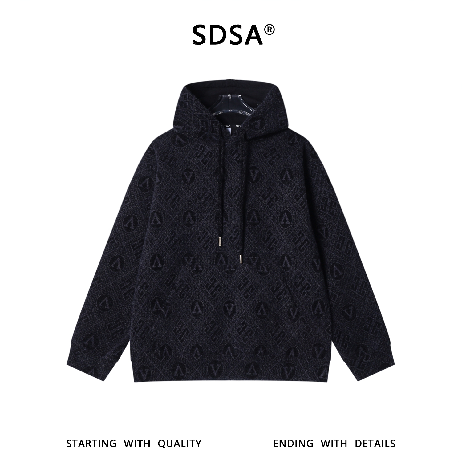 55139秋冬新款复古重工水洗几何图案潮流宽松连帽情侣休闲长袖