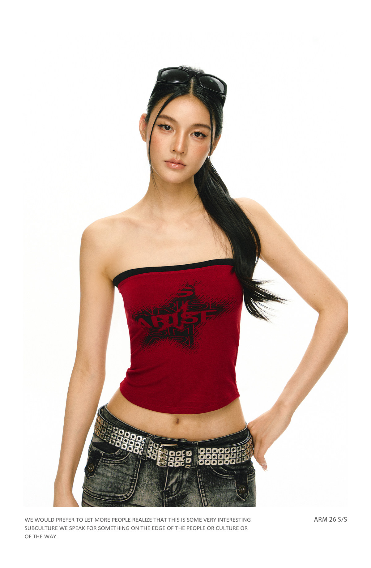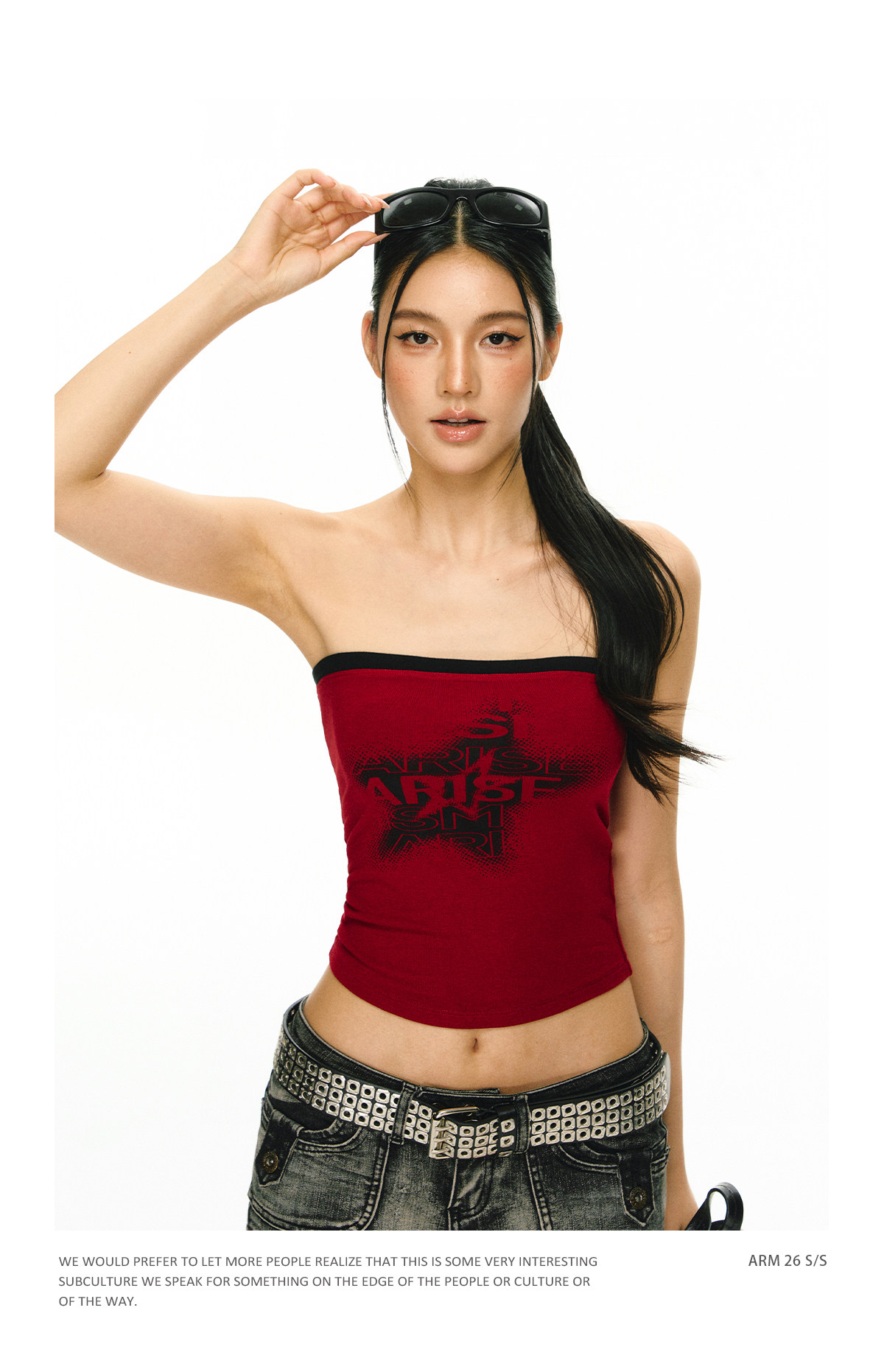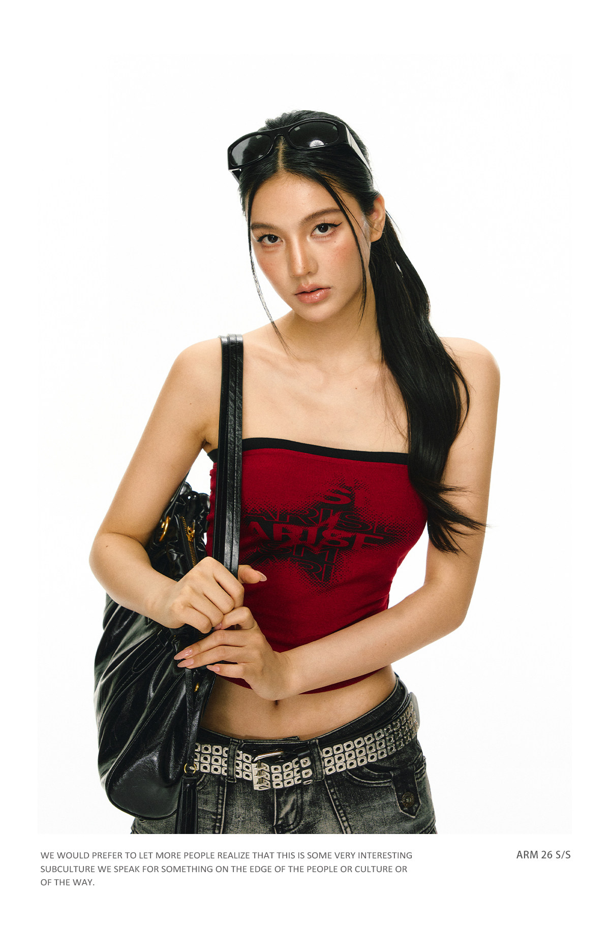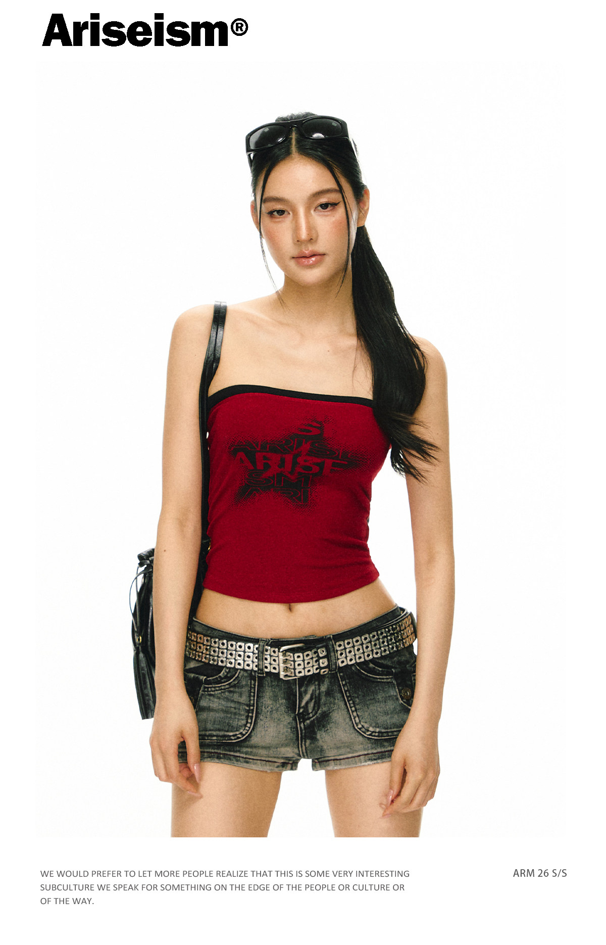 Ariseism 美式复古黑色五角星印花抹胸女夏季新款外穿上衣