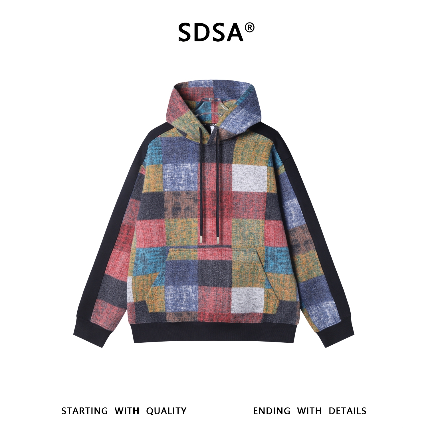 WY1551SDSA男士秋冬新款痞帅男装潮牌不规则色块撞色拼接连帽卫衣百搭