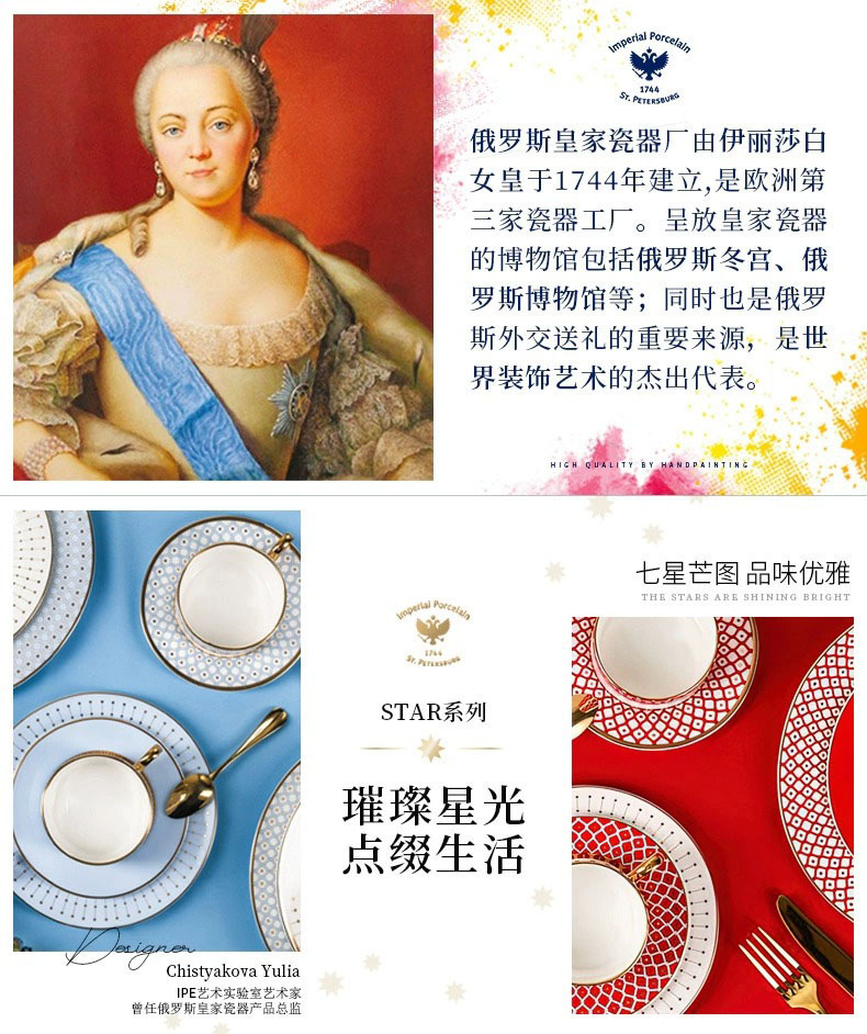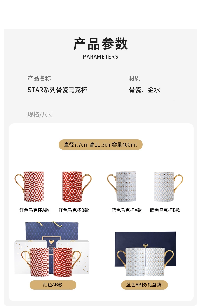 LOMONOSOV 俄皇 STAR系列家用水杯高颜值办公室骨瓷马克杯喝水杯子