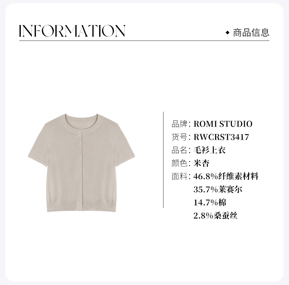 ROMI STUDIO“自然舒适”进口和纸纱轻薄短袖针织开衫 RWCRST3417