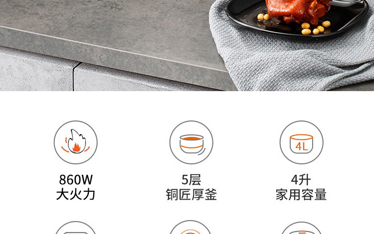 九阳(Joyoung) 电饭煲智能预约电饭煲铜匠厚釜升860W大火力4升容量不粘内胆 F40FZ-F336