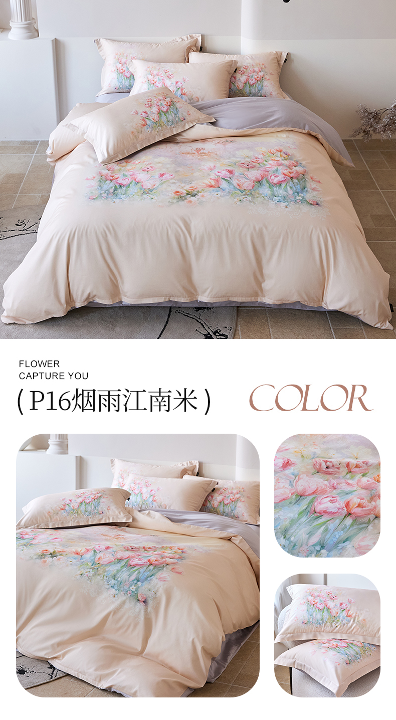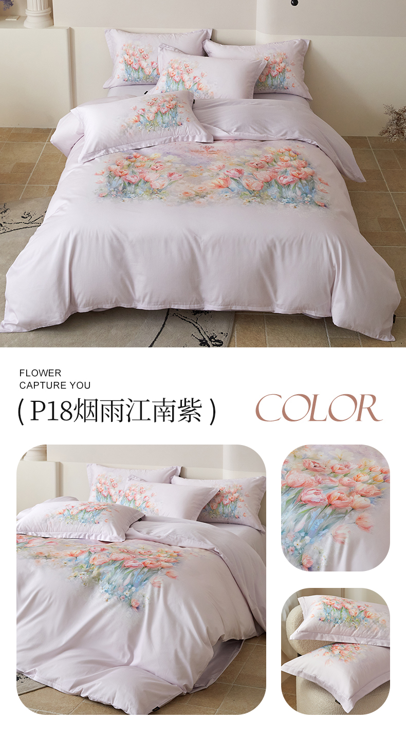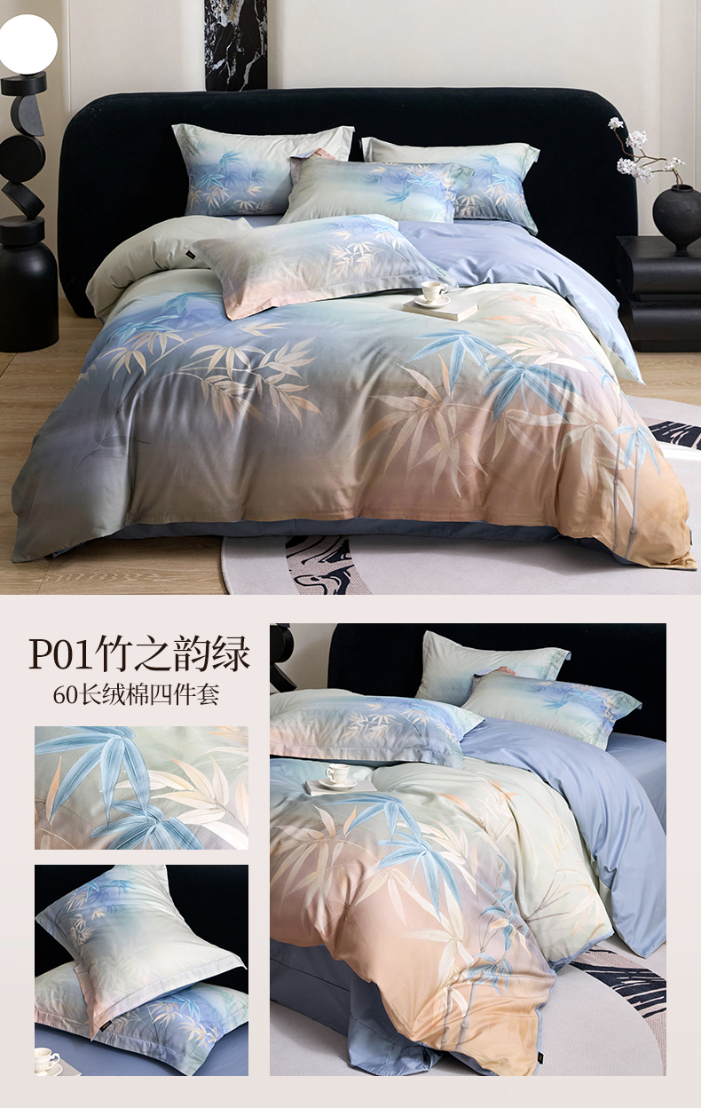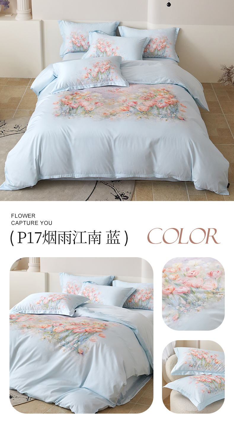 【品牌直发】加倍生活 60支长绒棉纯棉平网大版印花四件套-烟雨江南系列 20色可选 床单款床笠款可选
