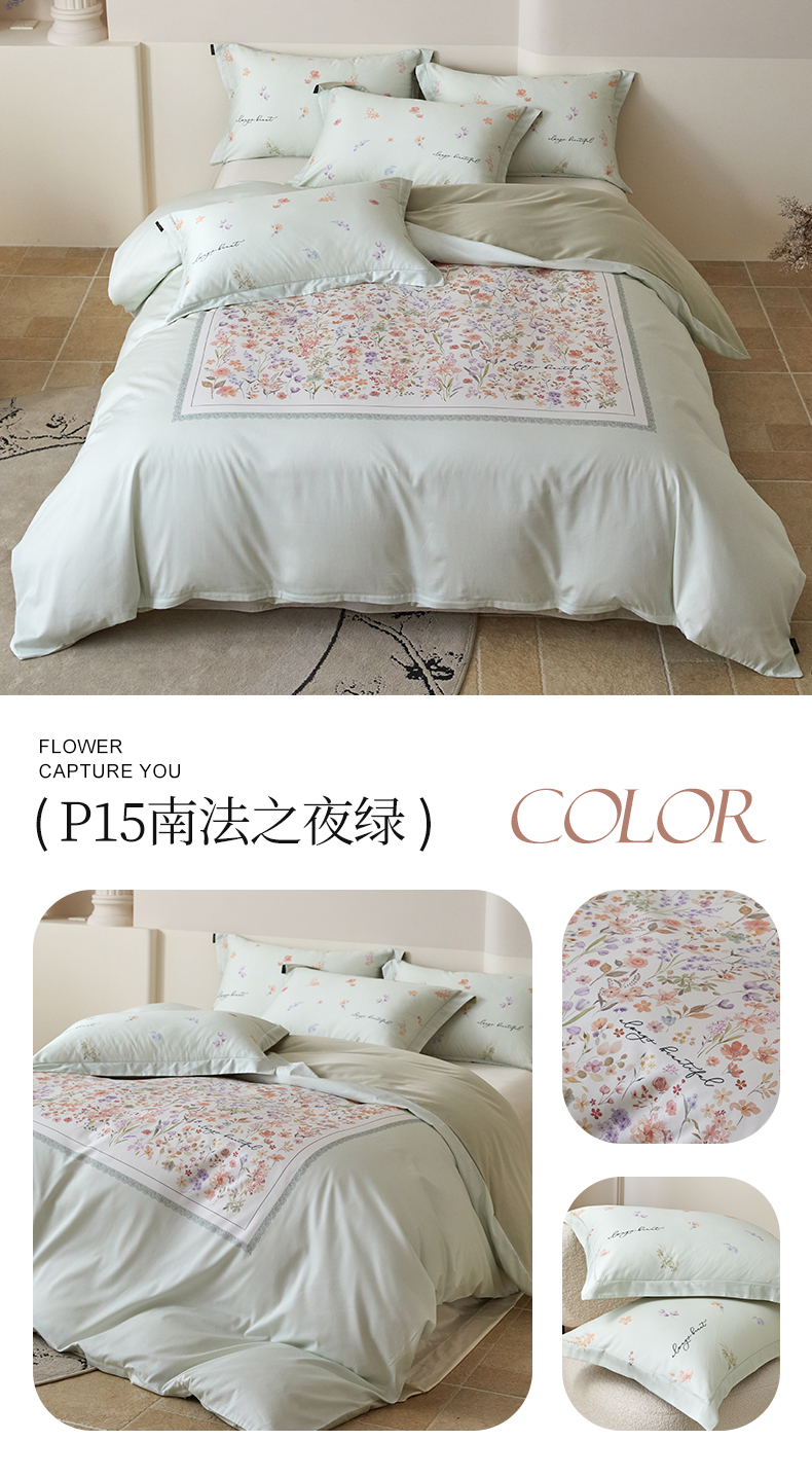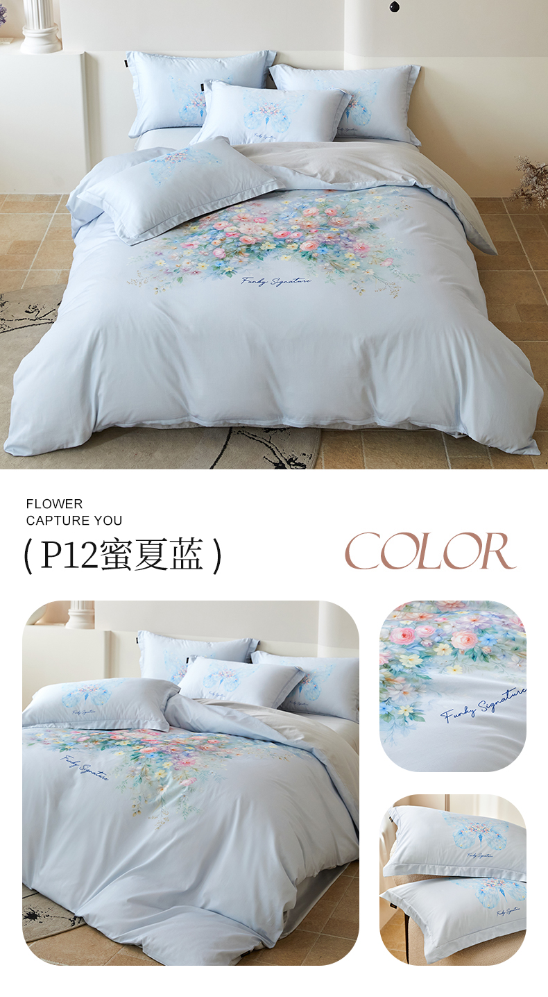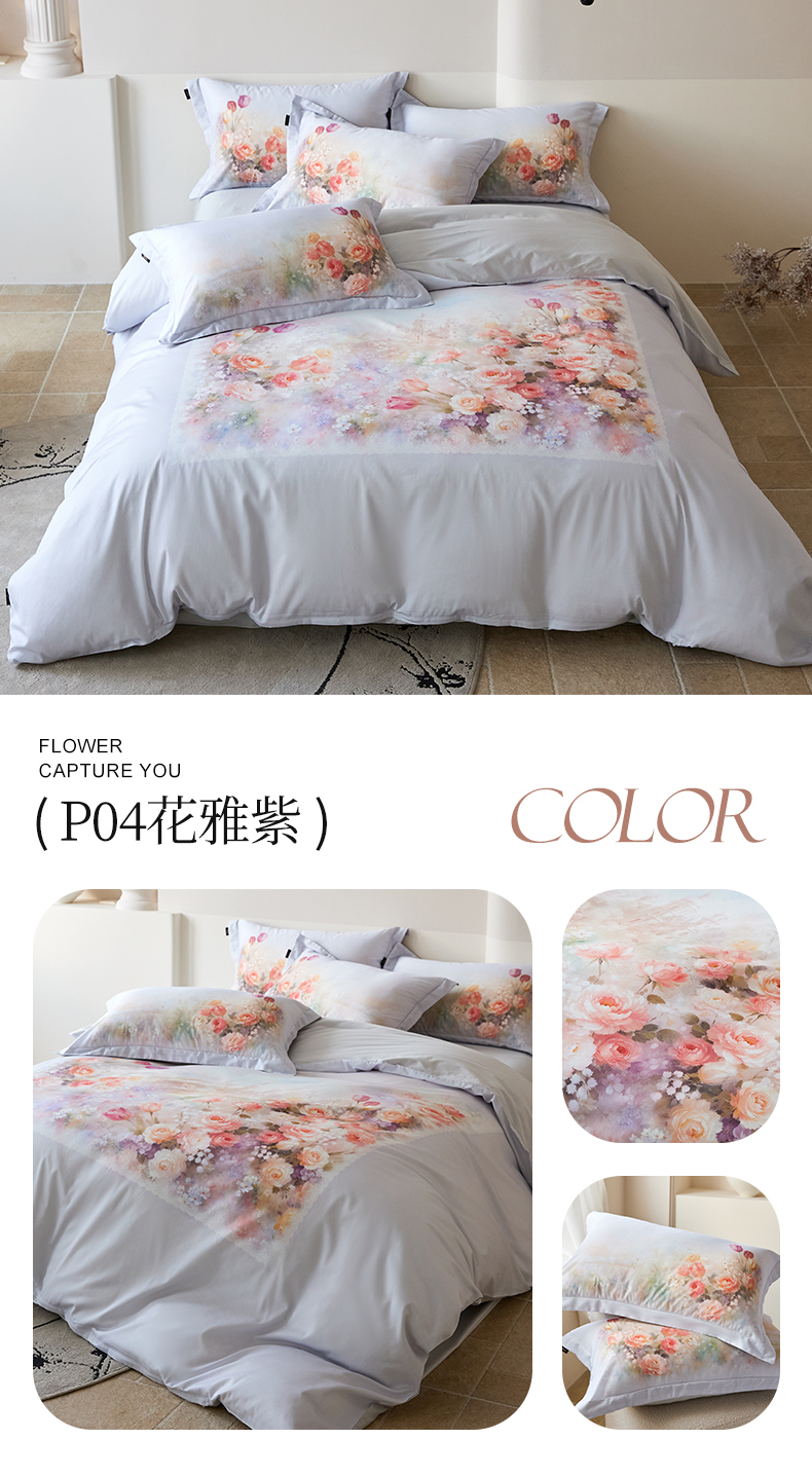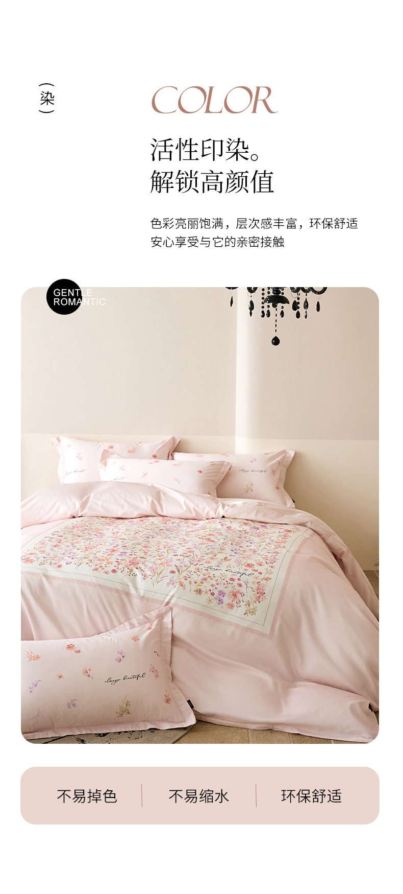 【品牌直发】加倍生活 60支长绒棉纯棉平网大版印花四件套-烟雨江南系列 20色可选 床单款床笠款可选