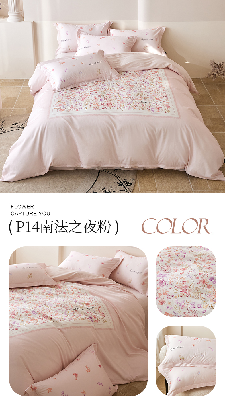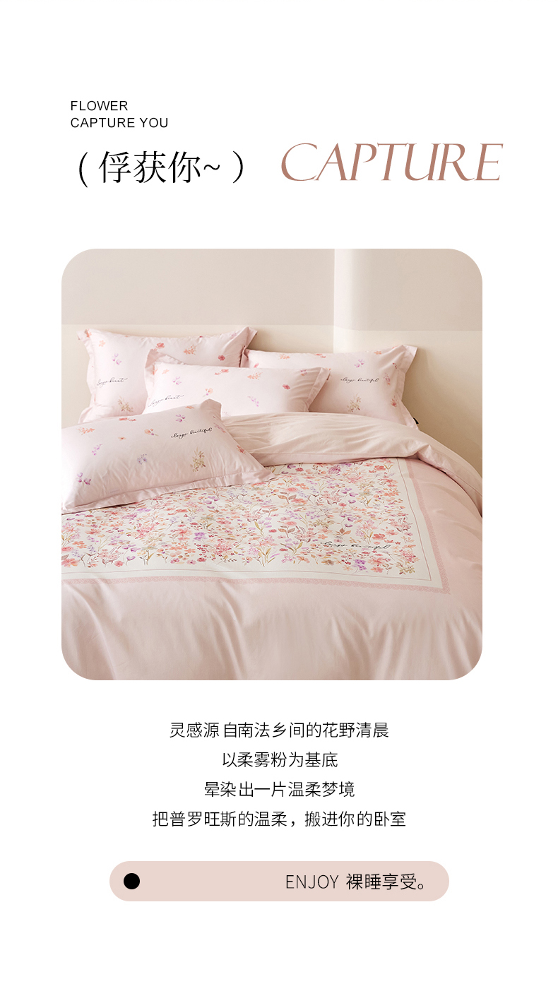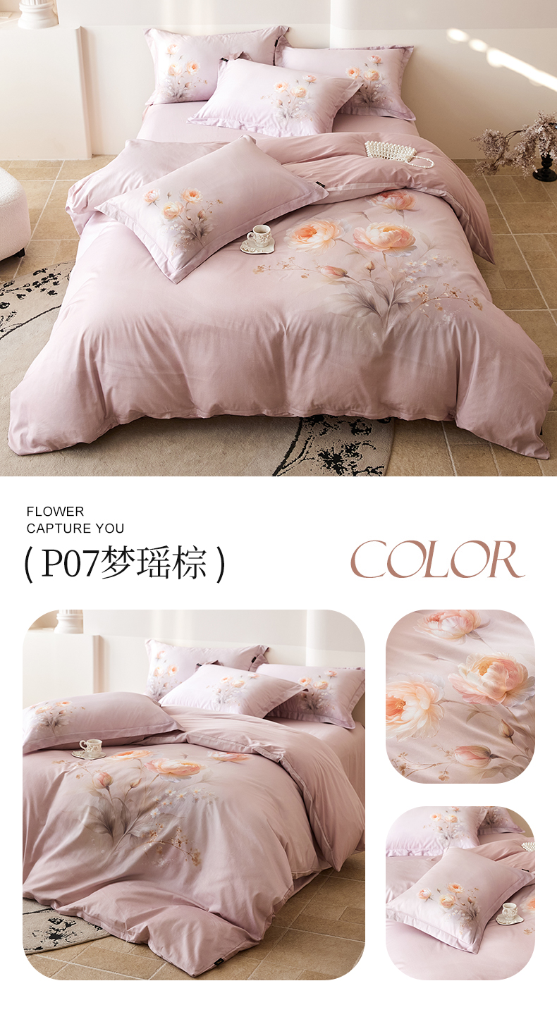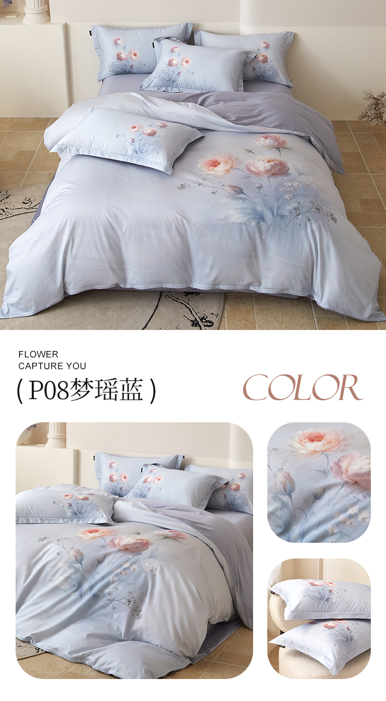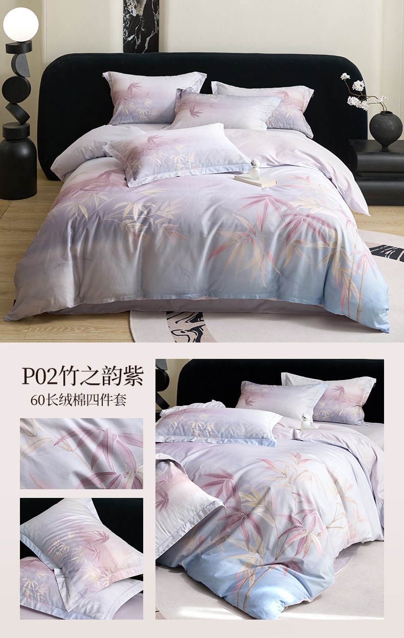 【品牌直发】加倍生活 60支长绒棉纯棉平网大版印花四件套-烟雨江南系列 20色可选 床单款床笠款可选